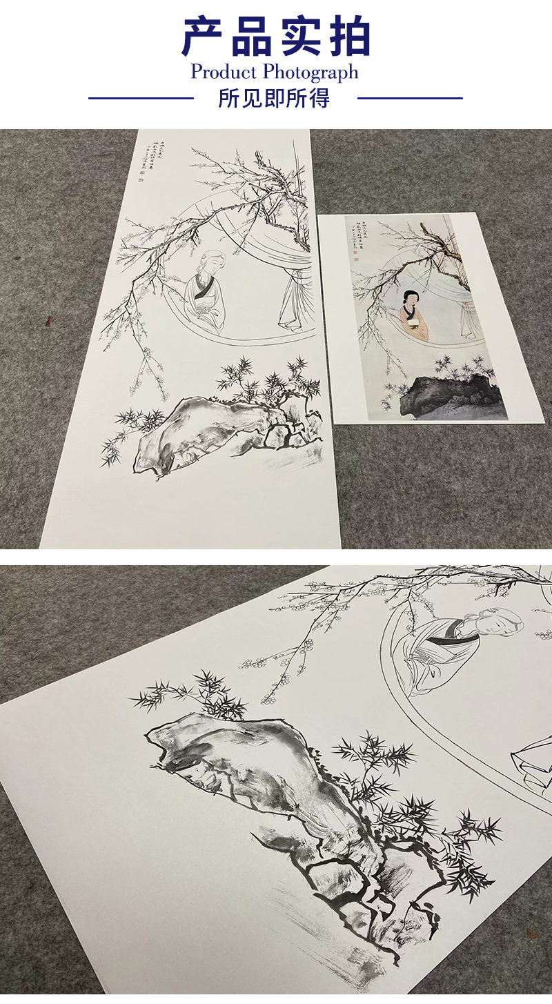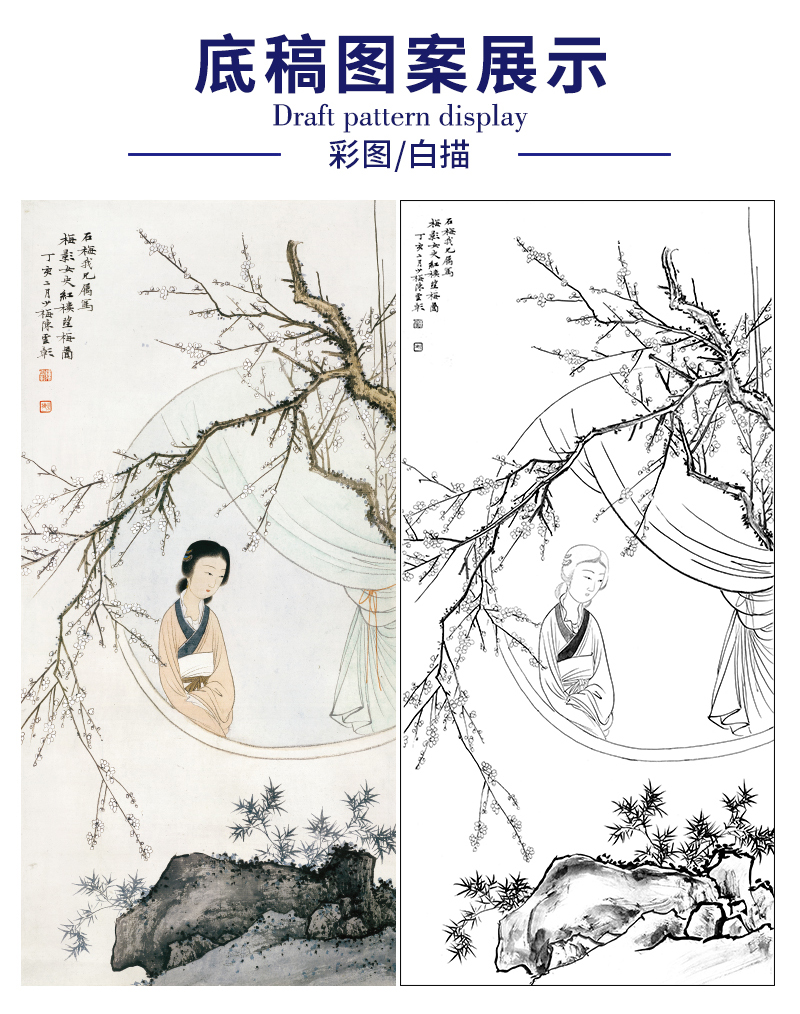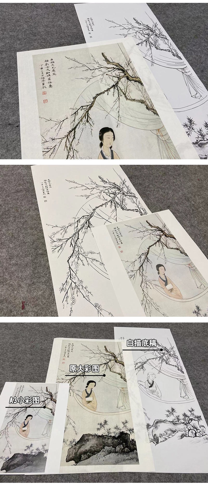【大彩图】陈少梅工笔传统仕女人物画白描底稿《红楼望梅图》临摹勾线高清打印稿SV18