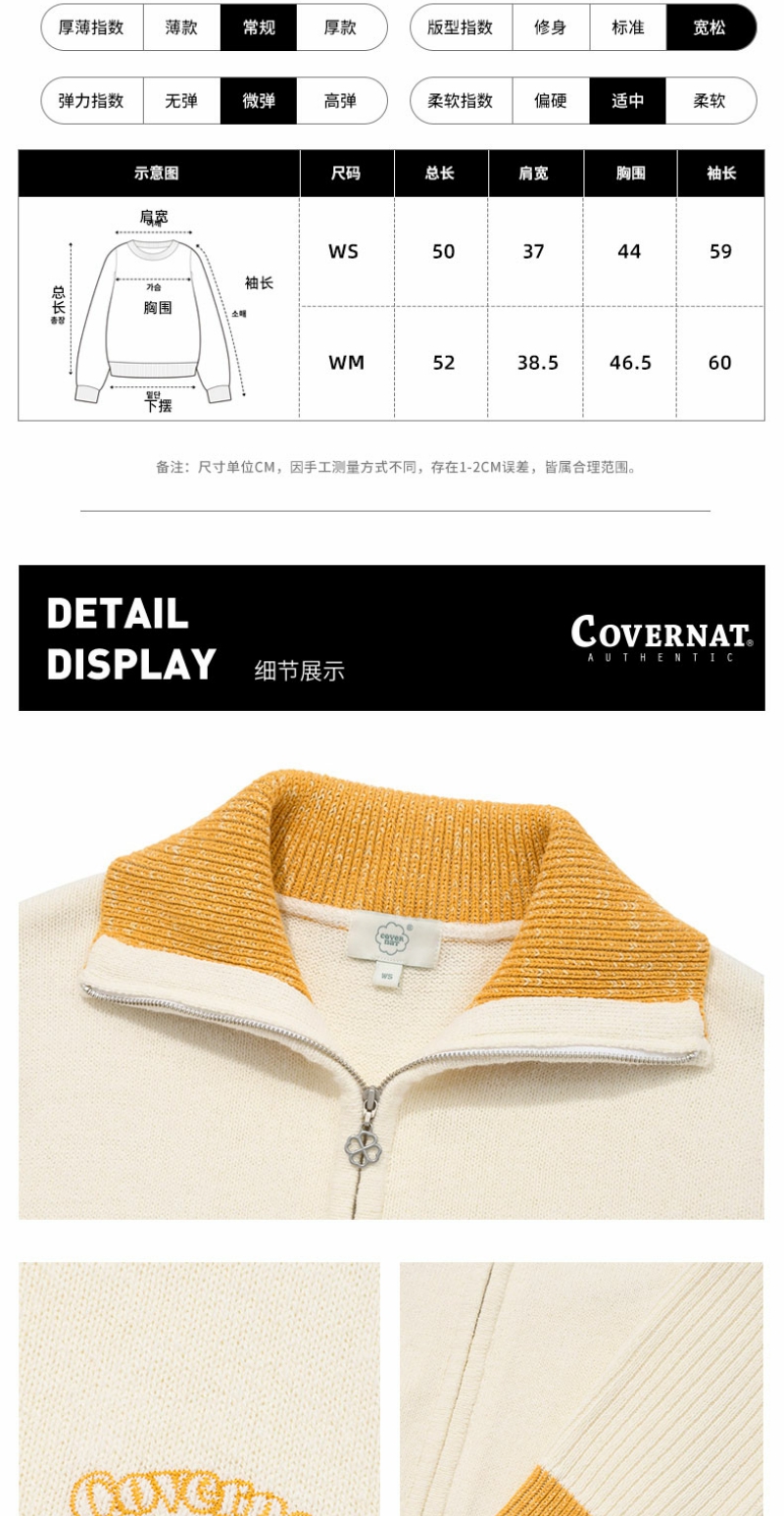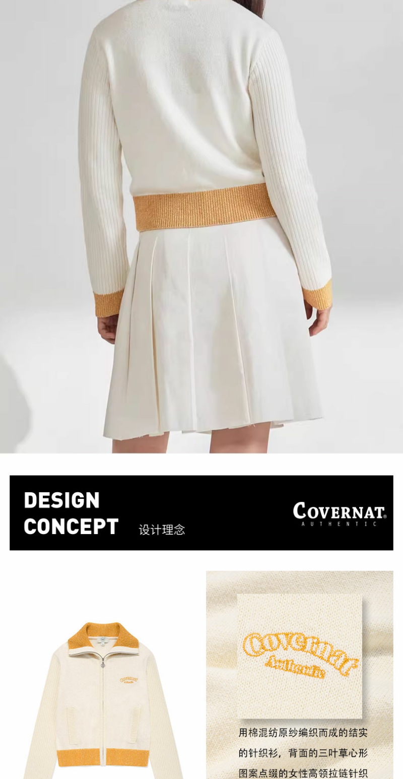 covernat韩国潮牌春季新品女士高领长袖休闲拉链针织衫2025春夏CO2401KT78