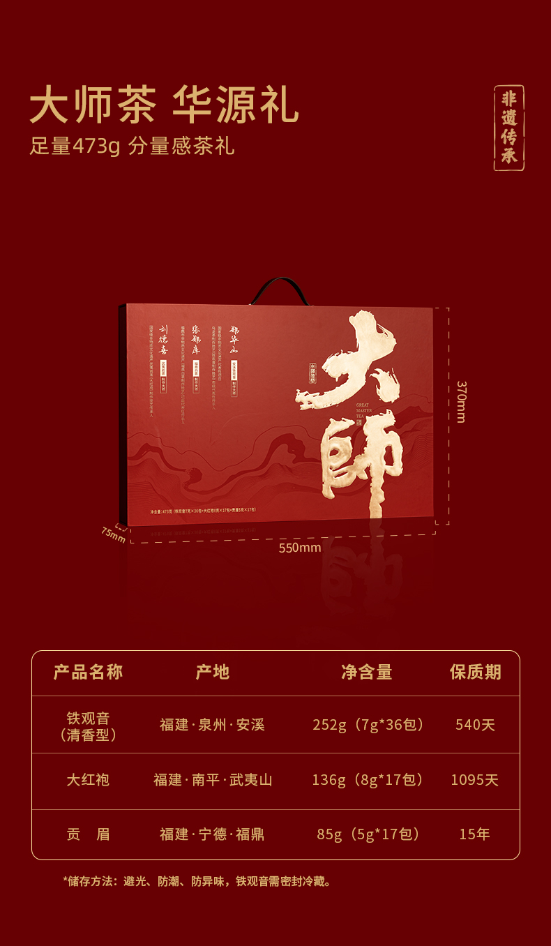 【年货茶礼】茶叶 铁观音 大红袍 白茶 茶叶礼盒 茶礼盒 大师 茶饮 华源 473g