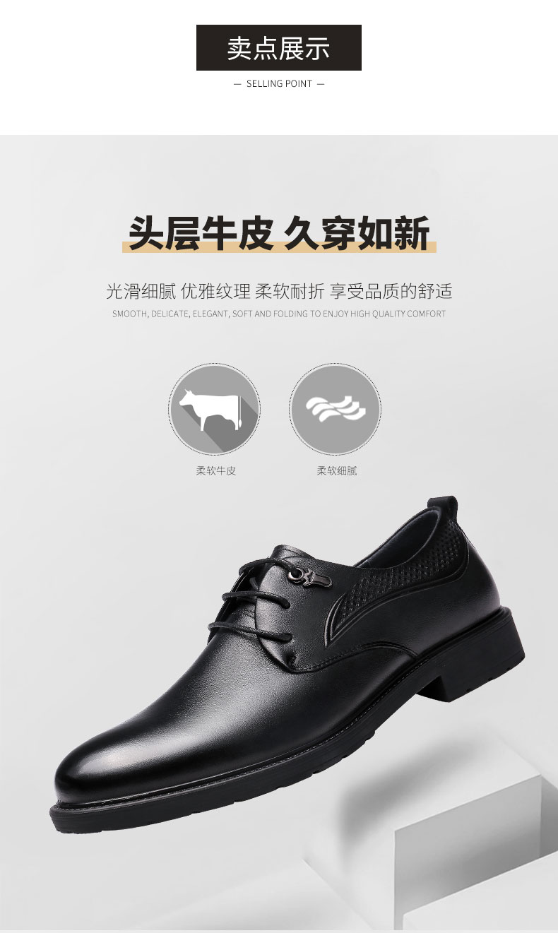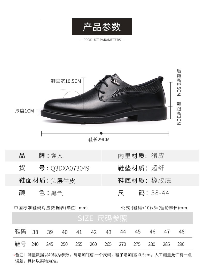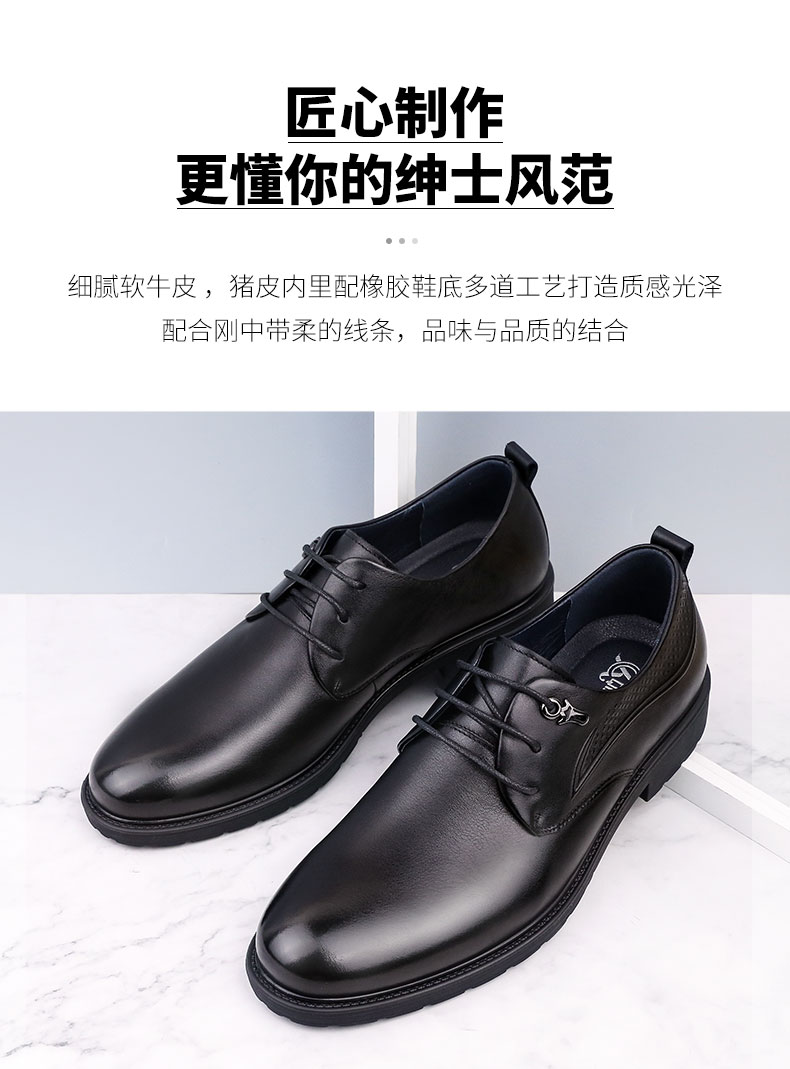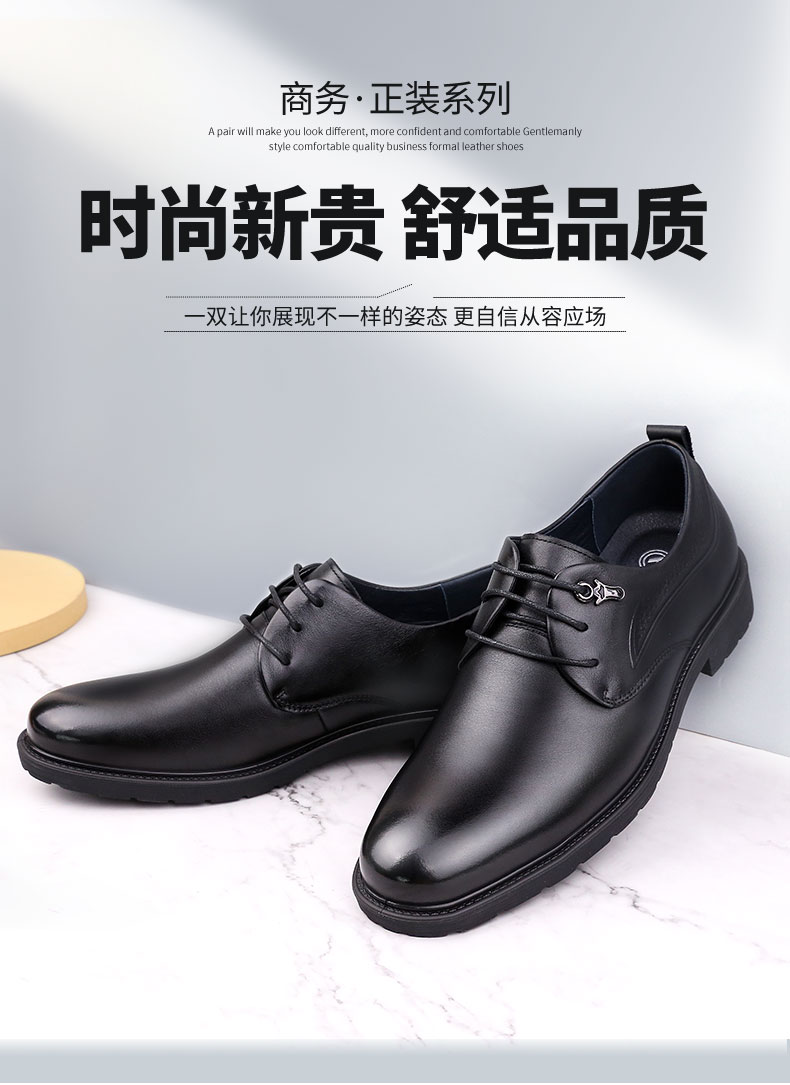 【超纤软垫 柔韧透气 防滑舒适】强人3515 商务正装通勤男皮鞋