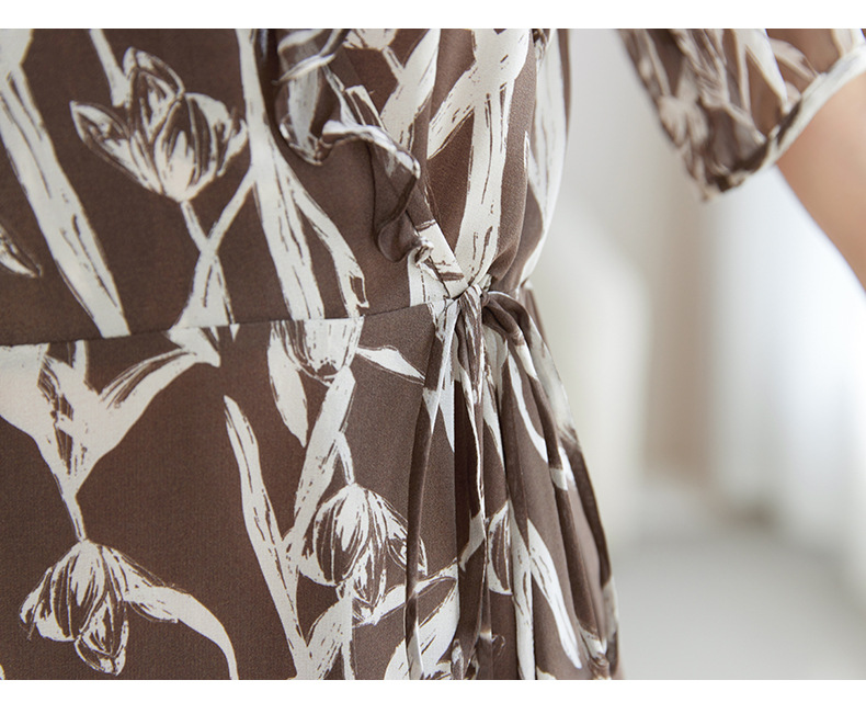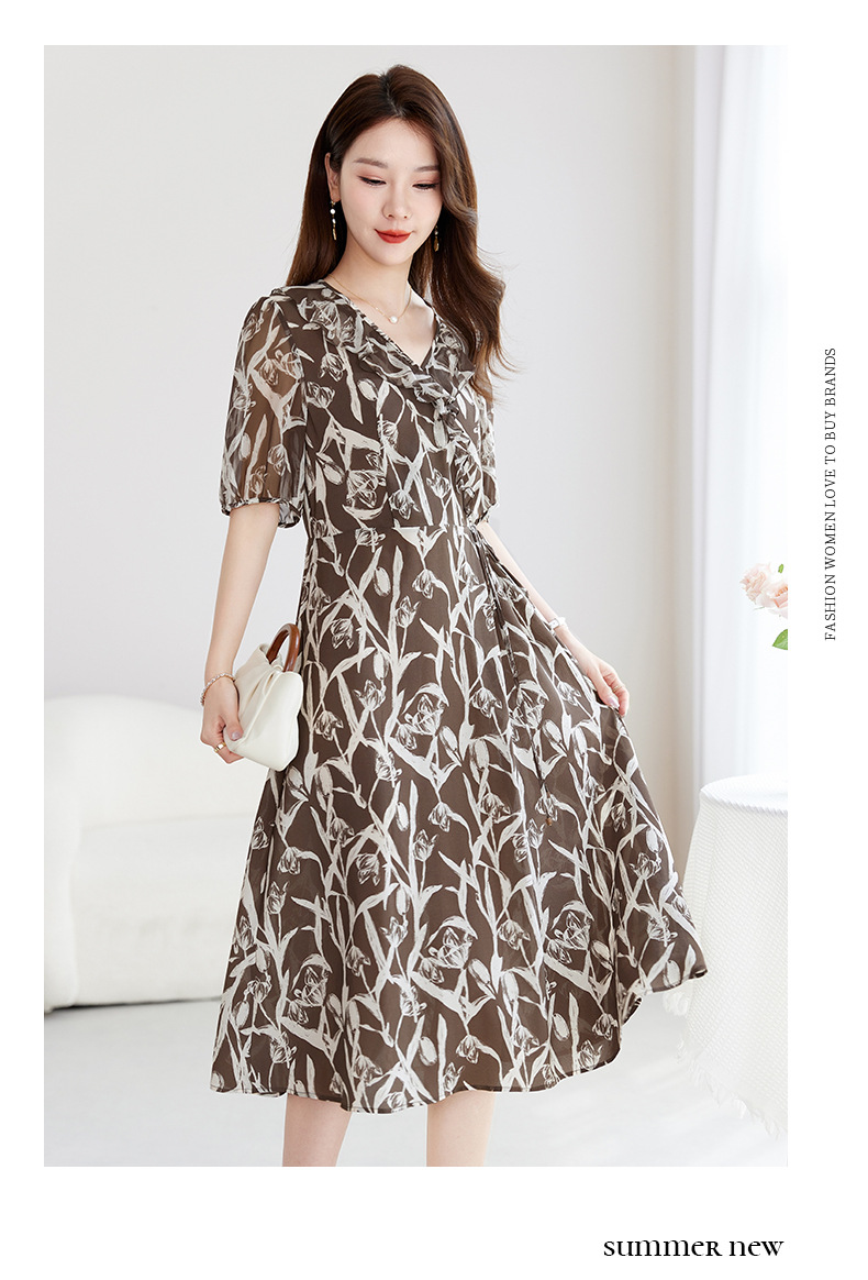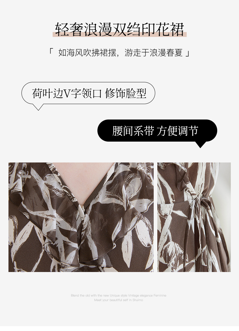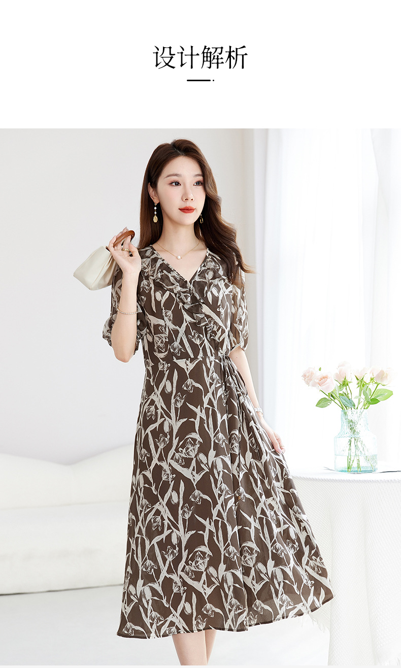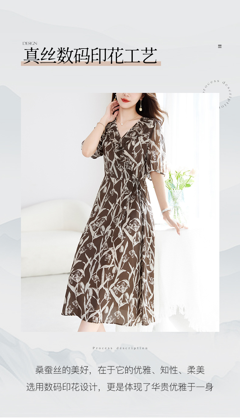 QS-82501033【真丝双绉】夏新减龄显瘦中大淑妈妈100%桑蚕丝印花连衣裙1033