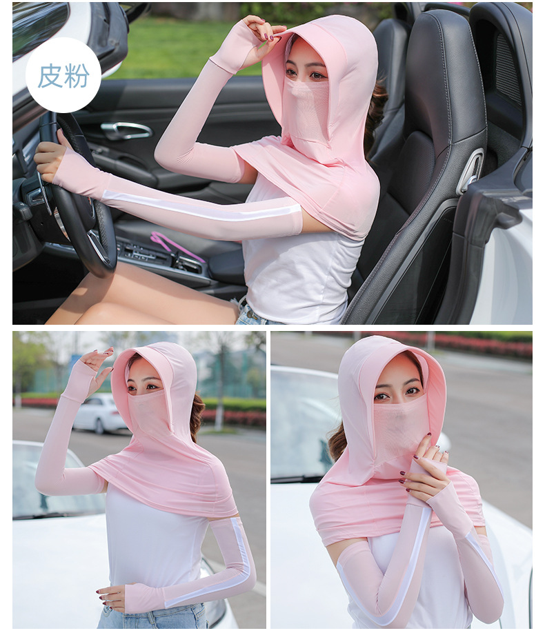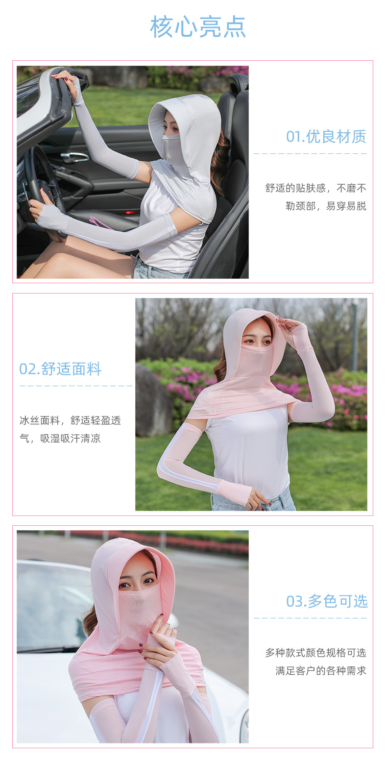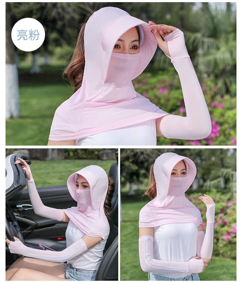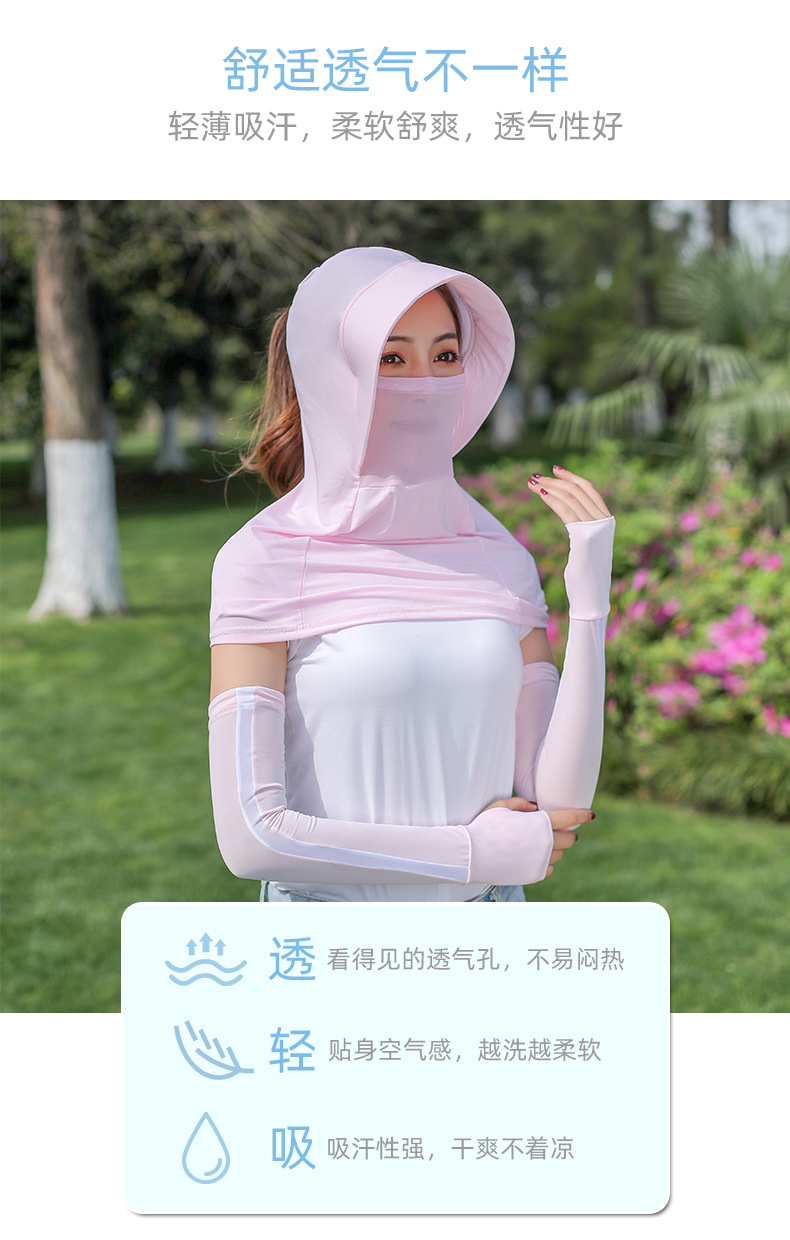 GRH-A04连帽防晒面罩女夏天遮阳护颈带帽檐骑车钓鱼纯色弹性冰丝面罩
