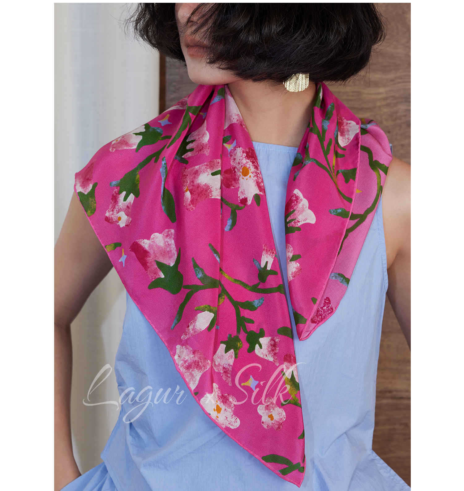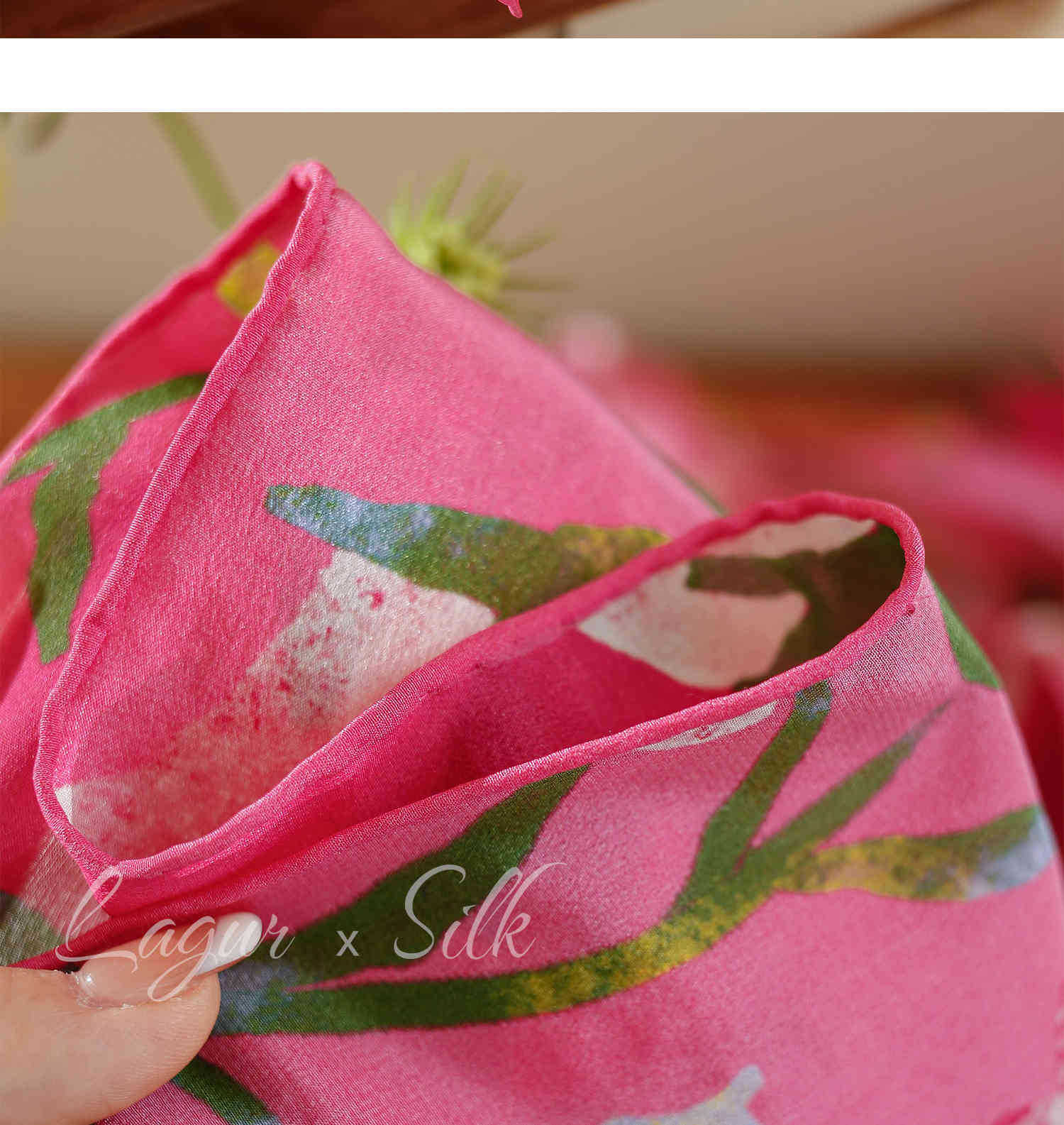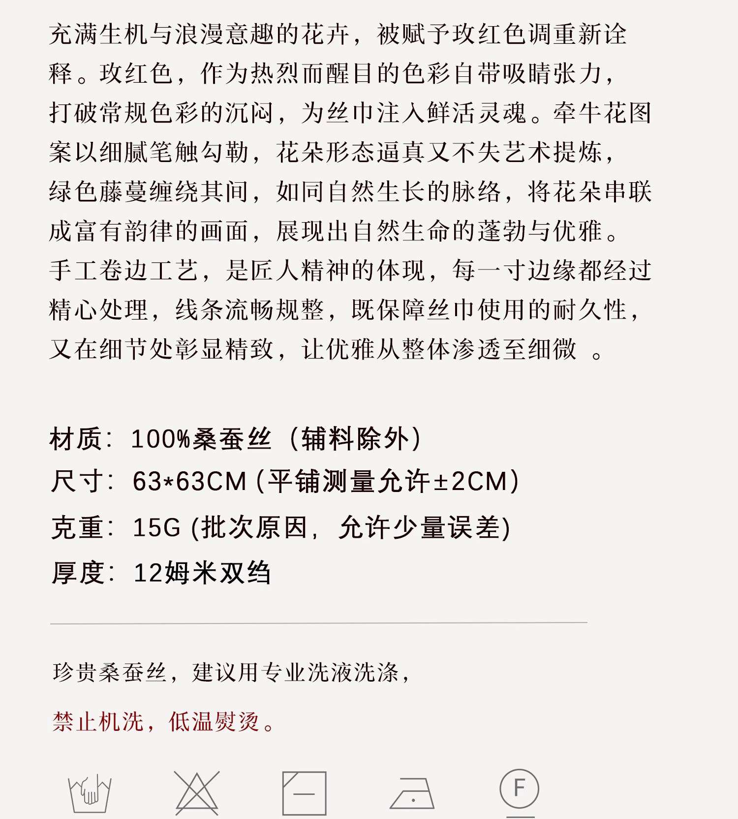 2025-原创风铃花桑蚕丝方巾「玫红色牵牛花」原创手工精卷100%桑蚕丝丝巾方巾真丝高级感秋女 商品图4