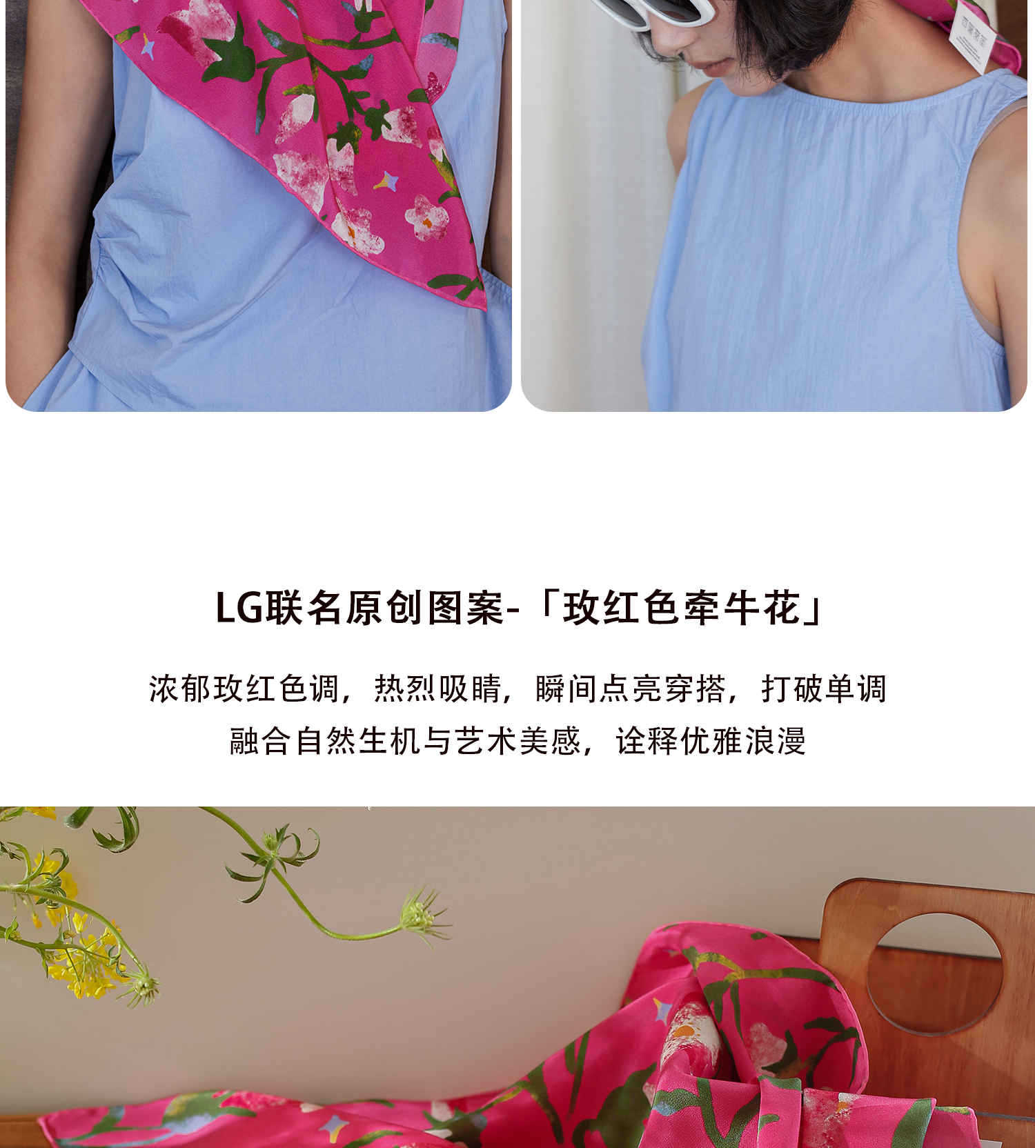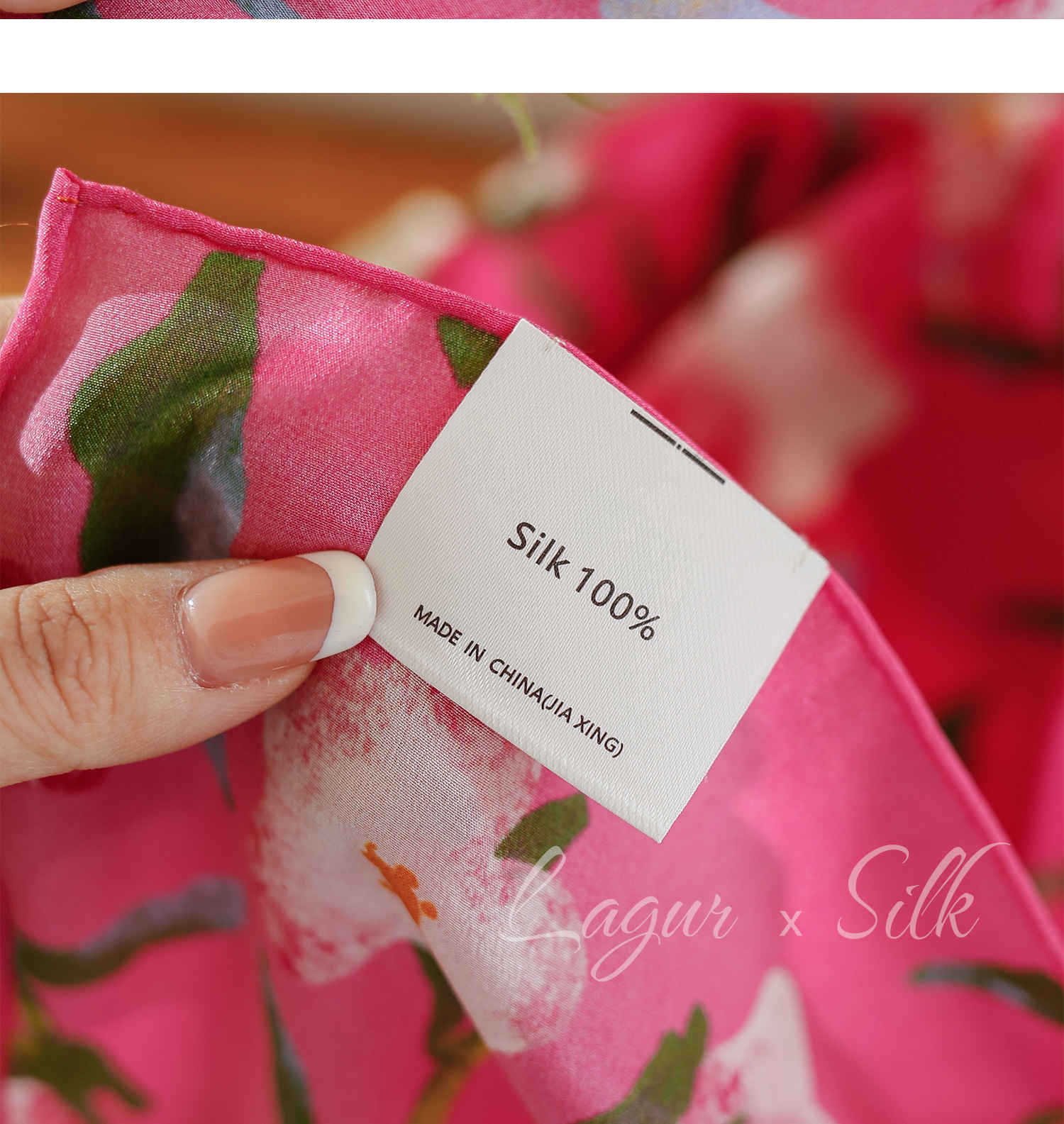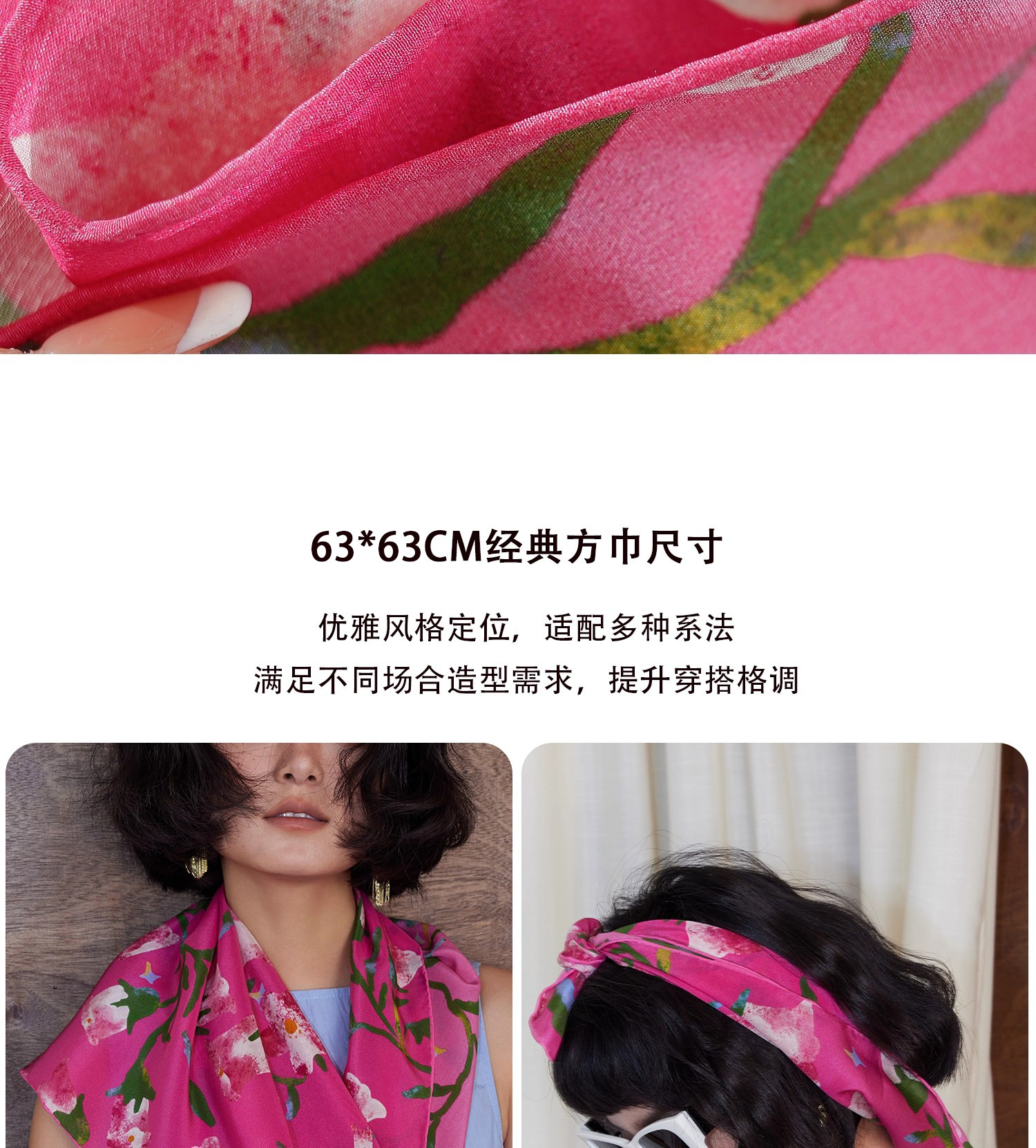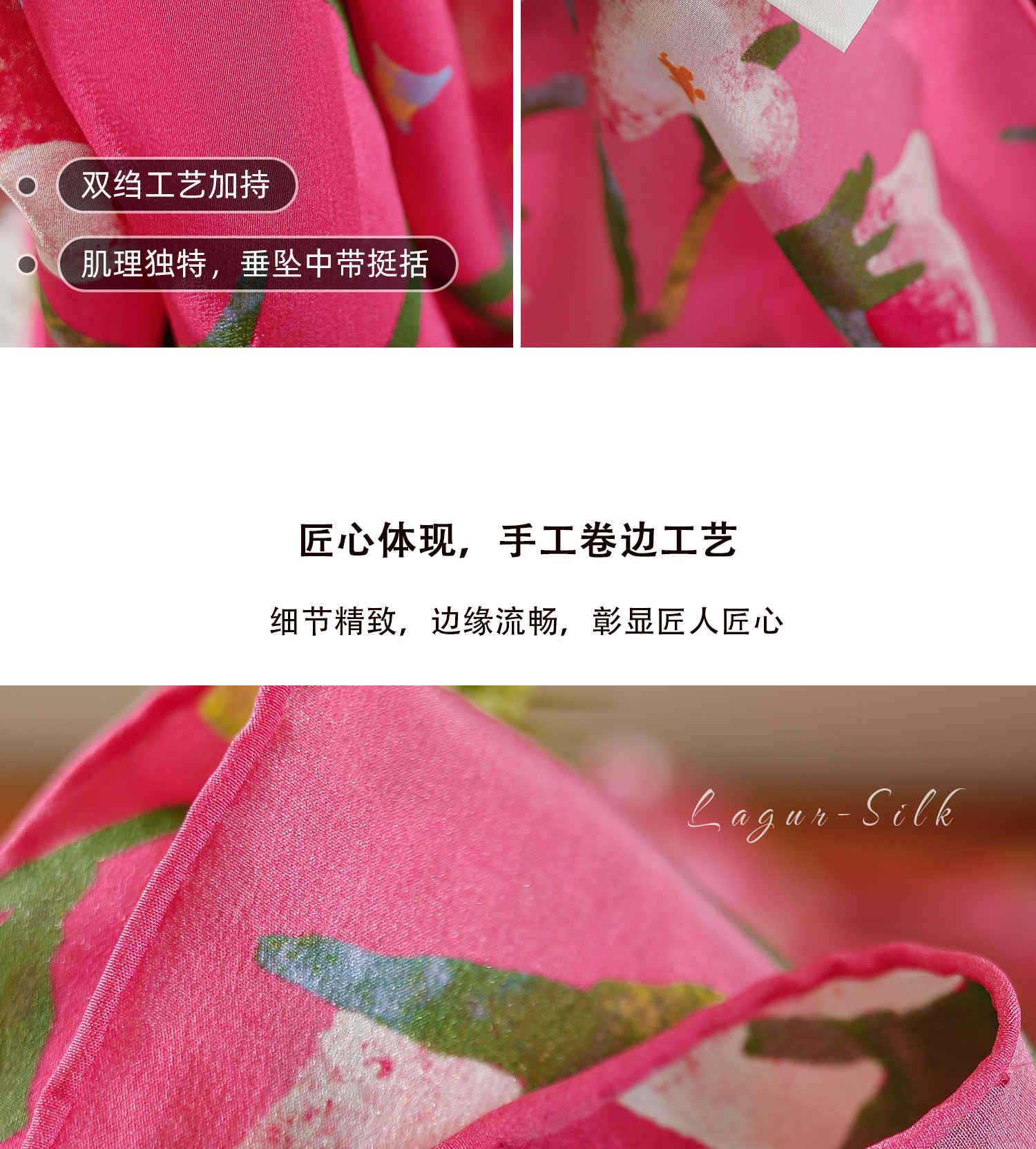 2025-原创风铃花桑蚕丝方巾「玫红色牵牛花」原创手工精卷100%桑蚕丝丝巾方巾真丝高级感秋女 商品图4