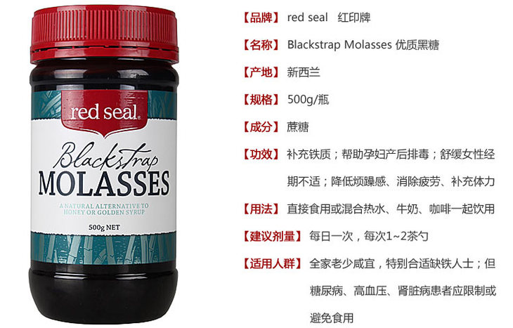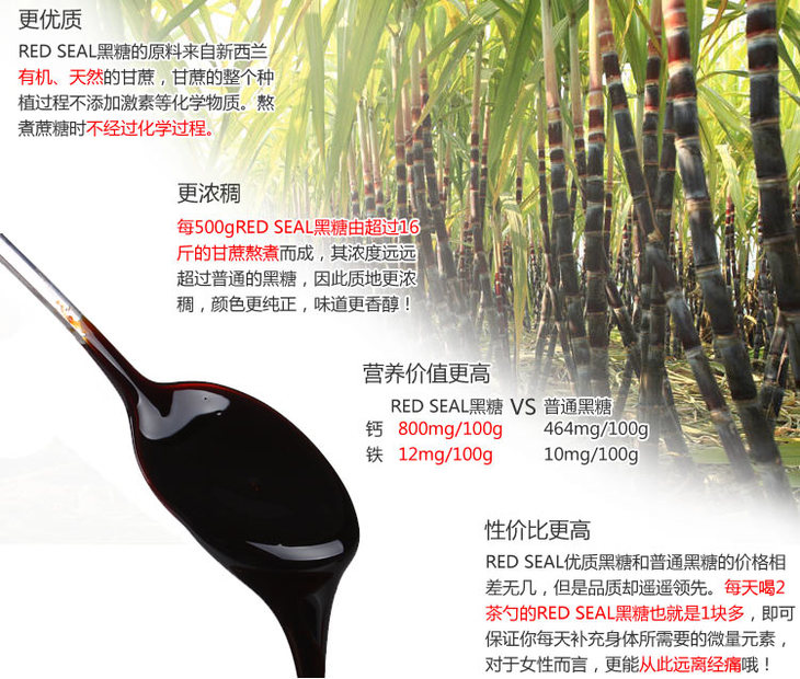 Red Seal红印优质黑糖 红糖 500g排毒补铁缓解痛经补血