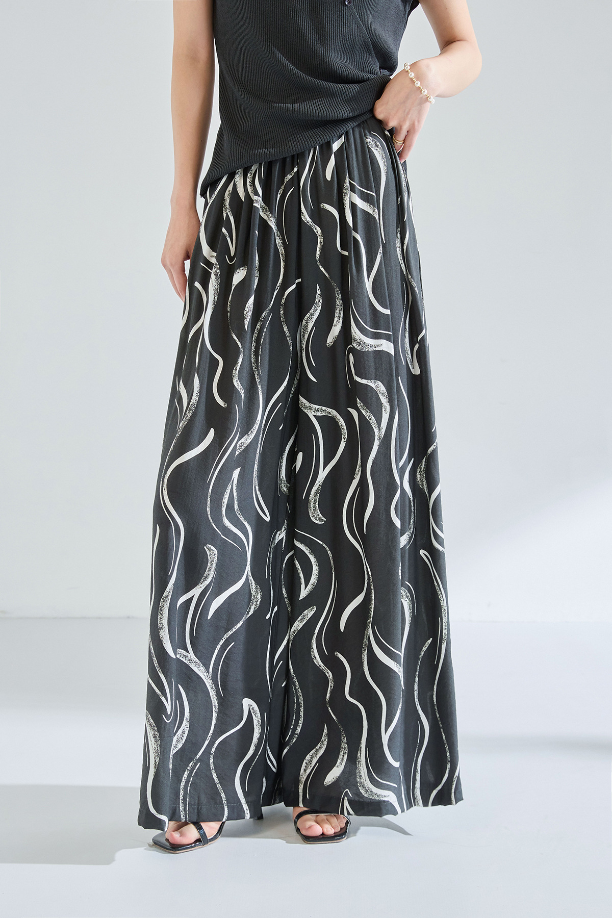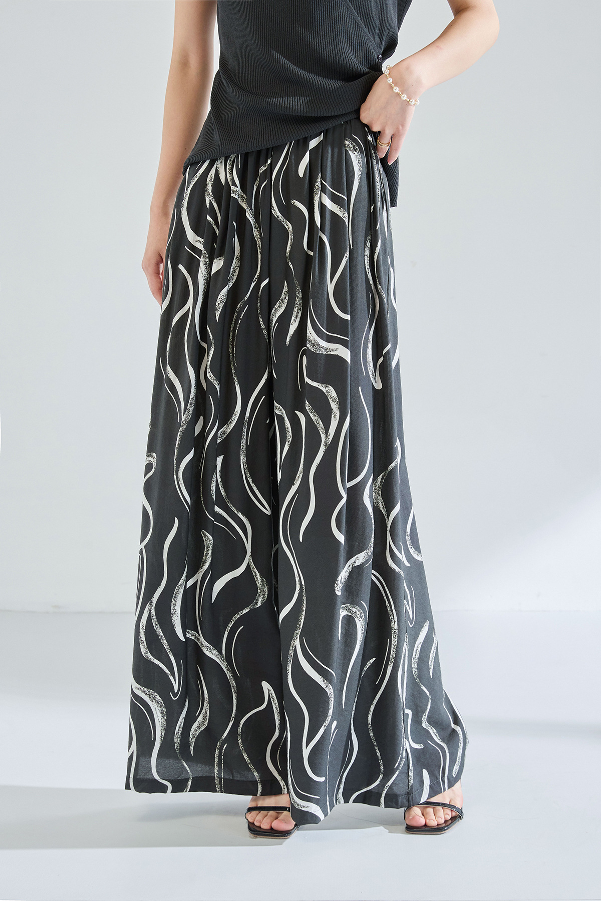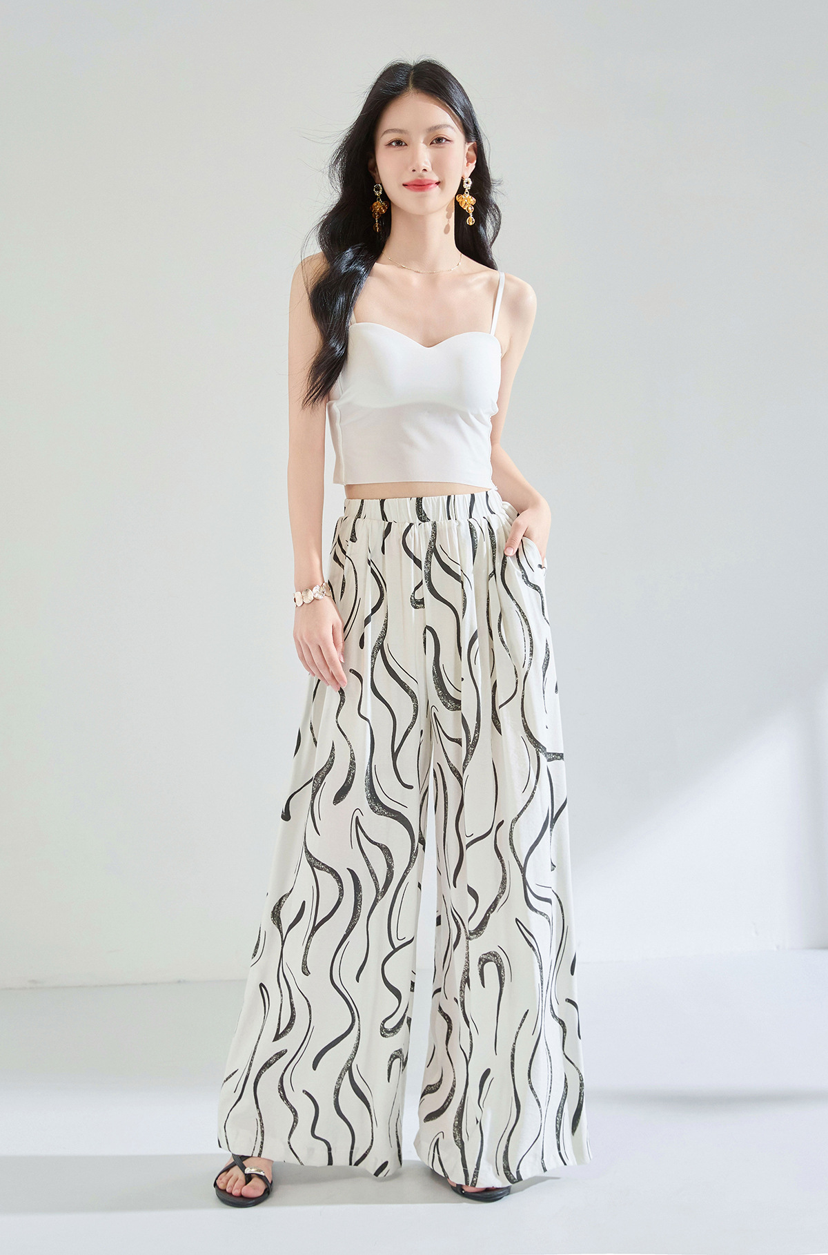 「高货sh」全新升级【铂金会员183/天猫249/差价66】(03908)洛诗琳高级感印花冰丝阔腿裤2025夏季宽松显瘦休闲长裤