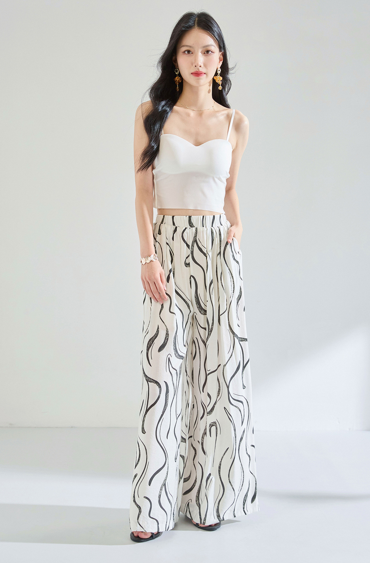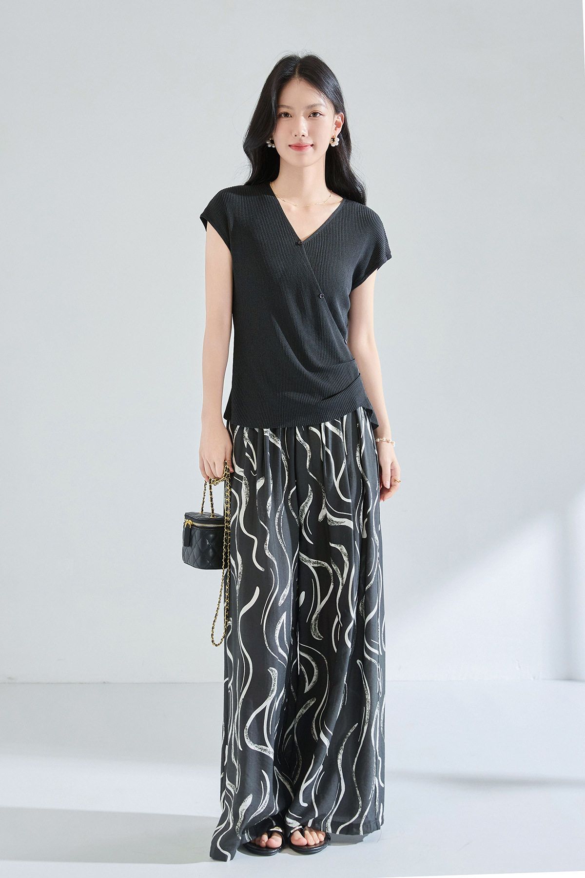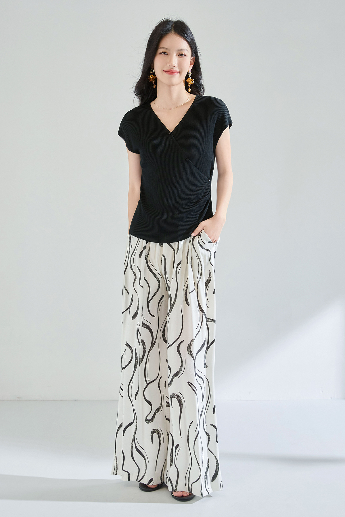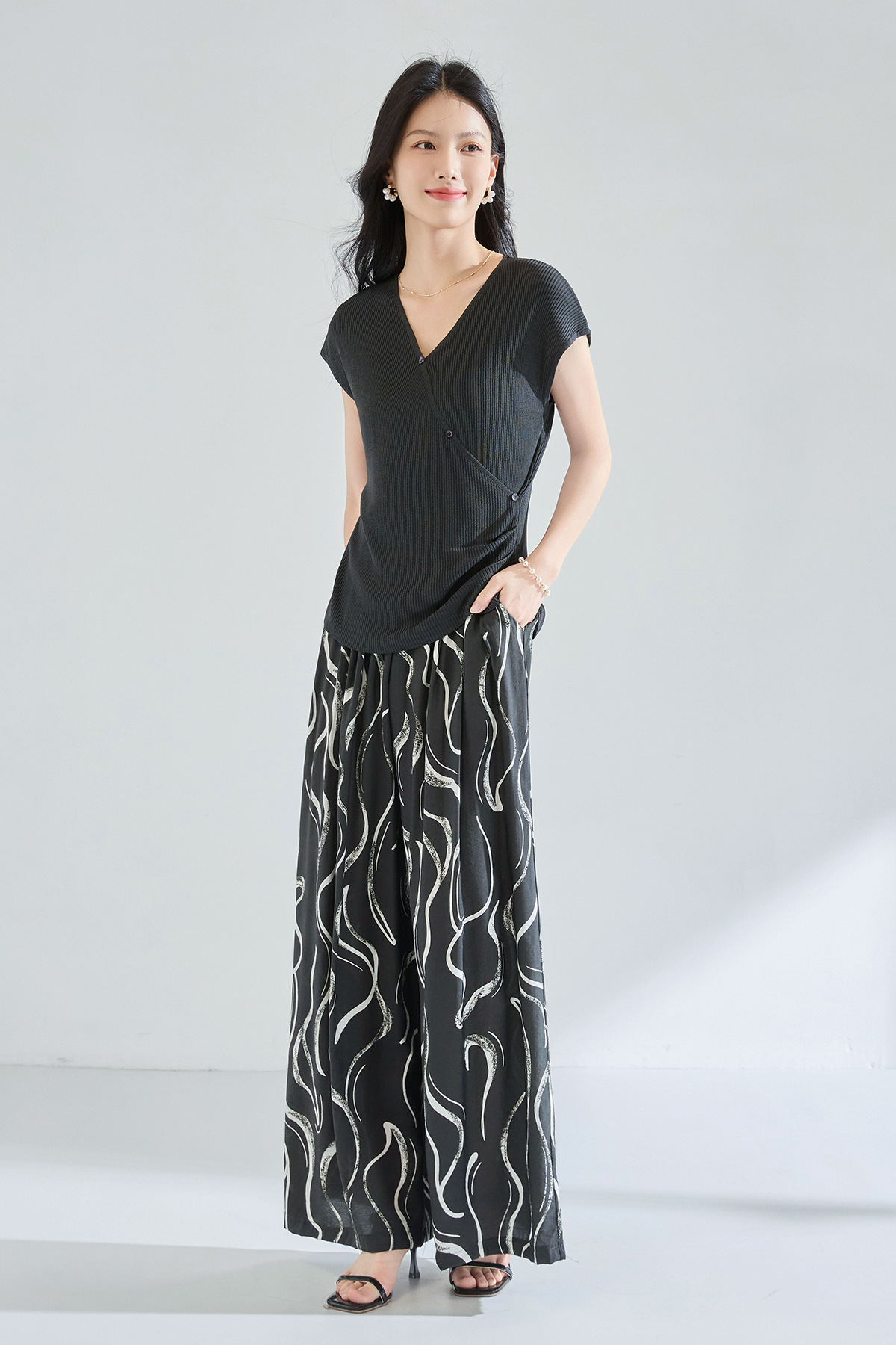 「高货sh」全新升级【铂金会员183/天猫249/差价66】(03908)洛诗琳高级感印花冰丝阔腿裤2025夏季宽松显瘦休闲长裤
