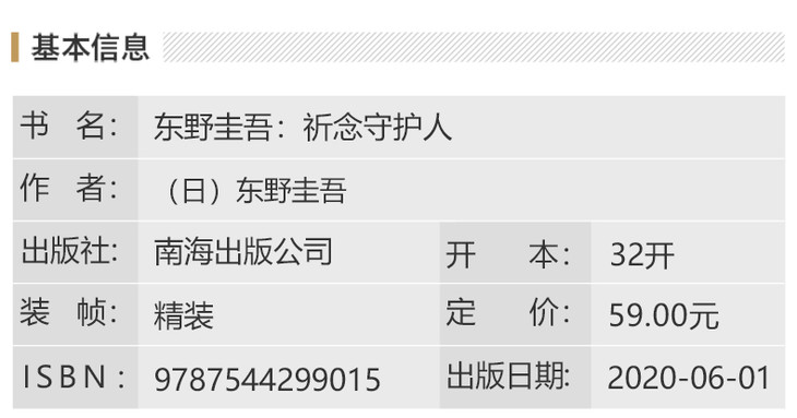 书名:东野圭吾:祈念守护人