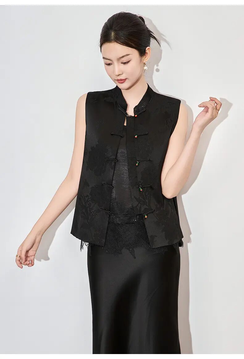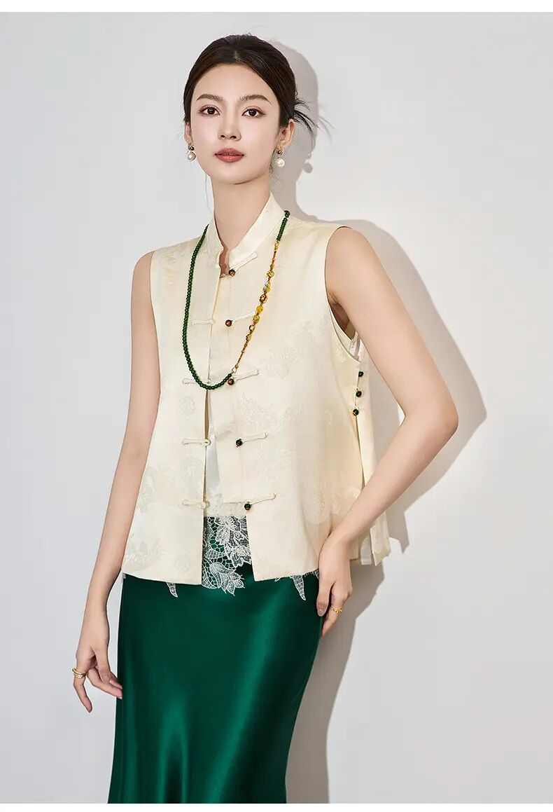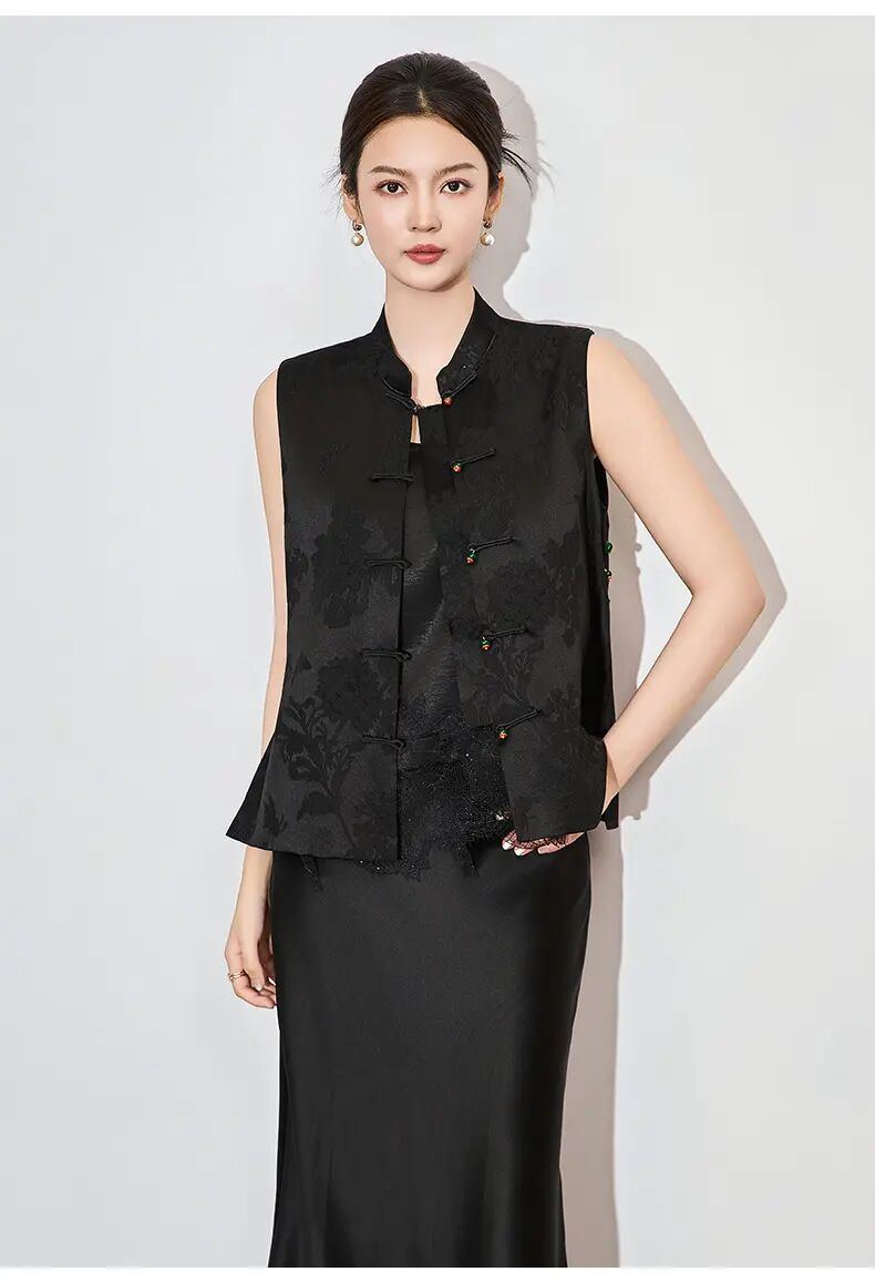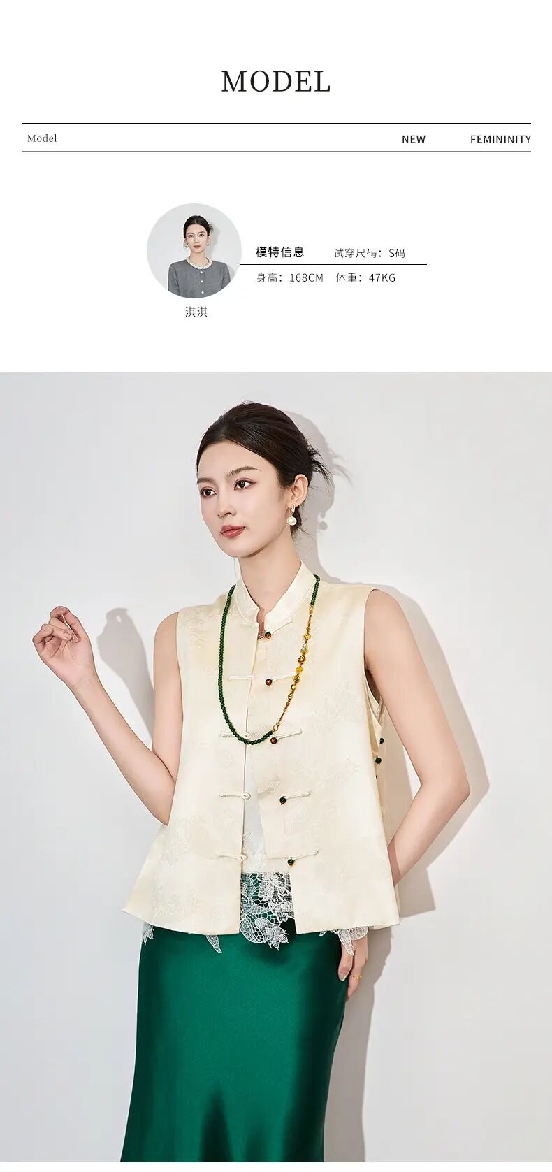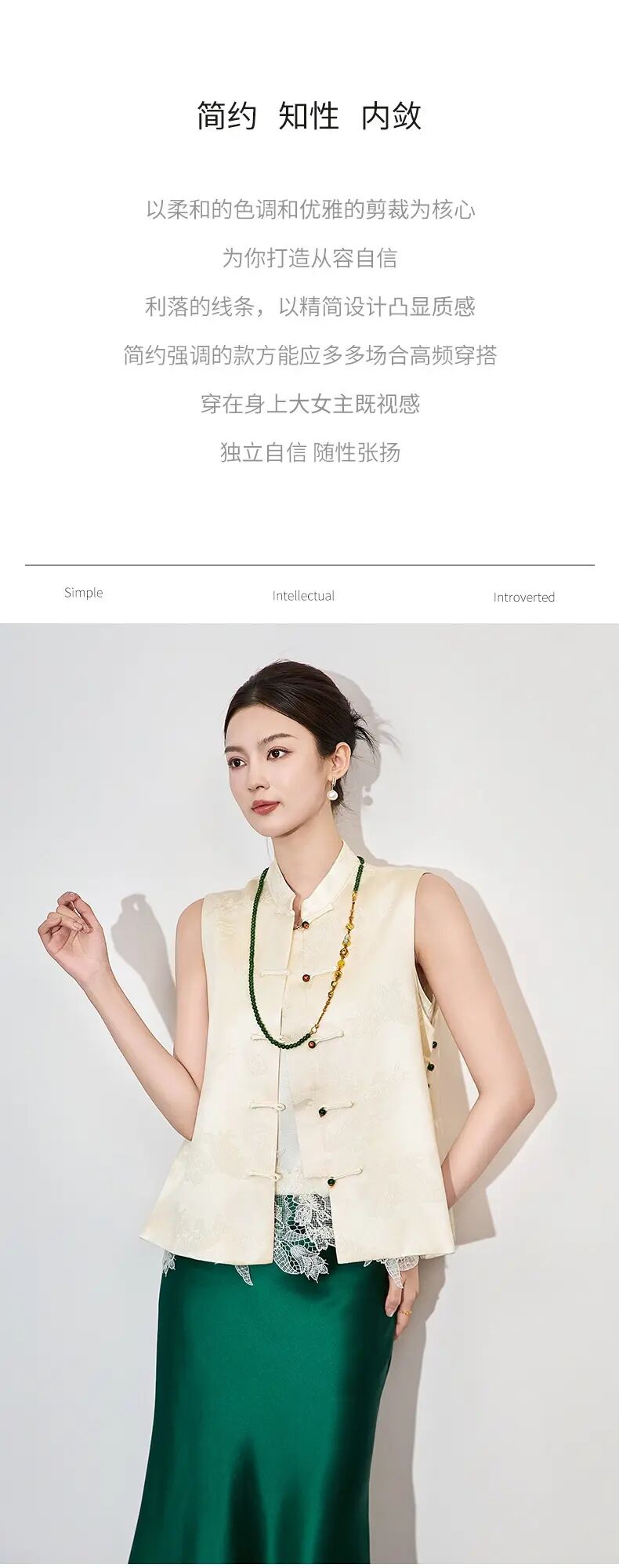 【高货wl】全新升级【铂金会员330/天猫449/差价119】(12008) 洛诗琳新中式禅意别致高级感上衣女春提花真丝马甲外套