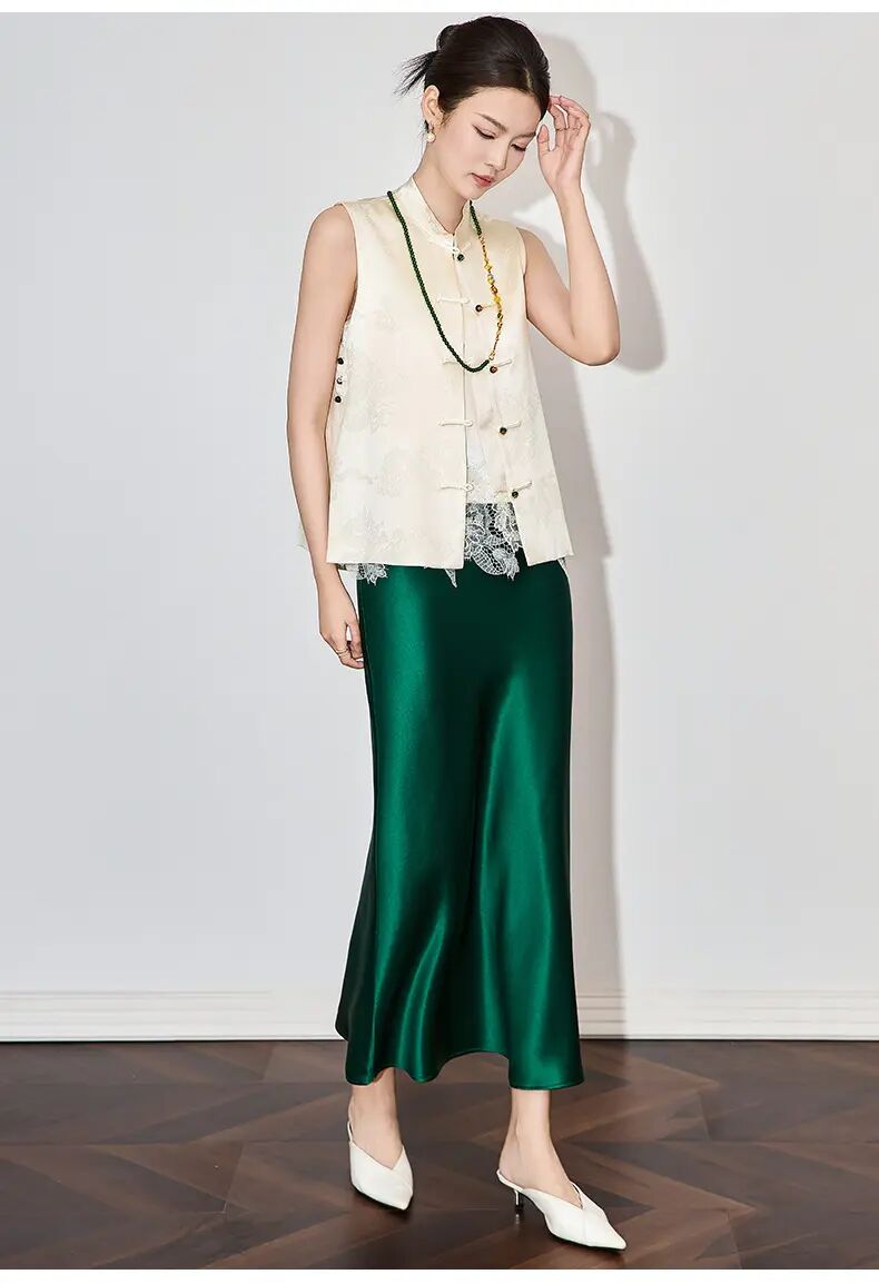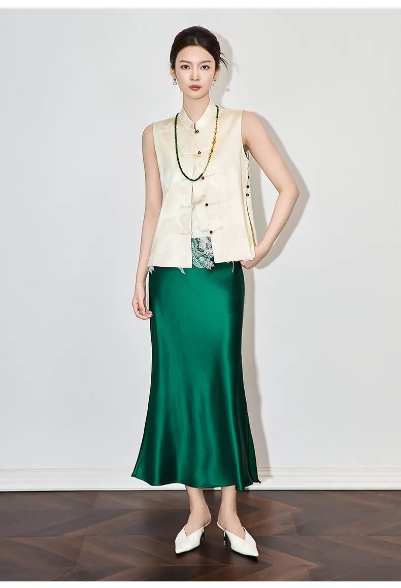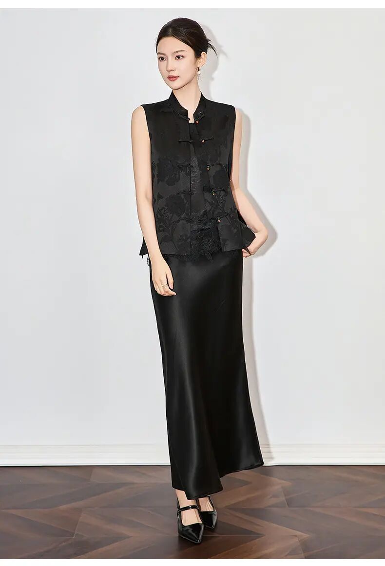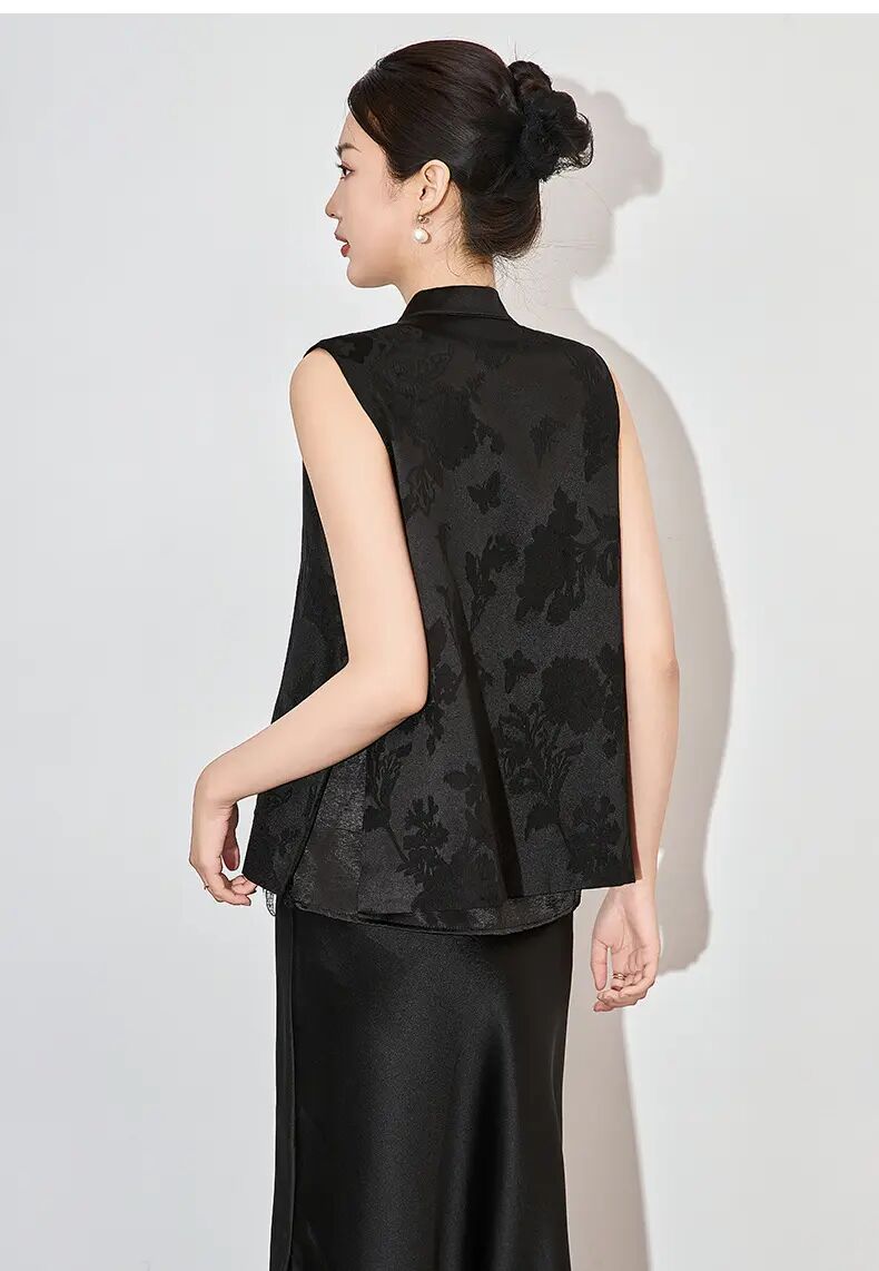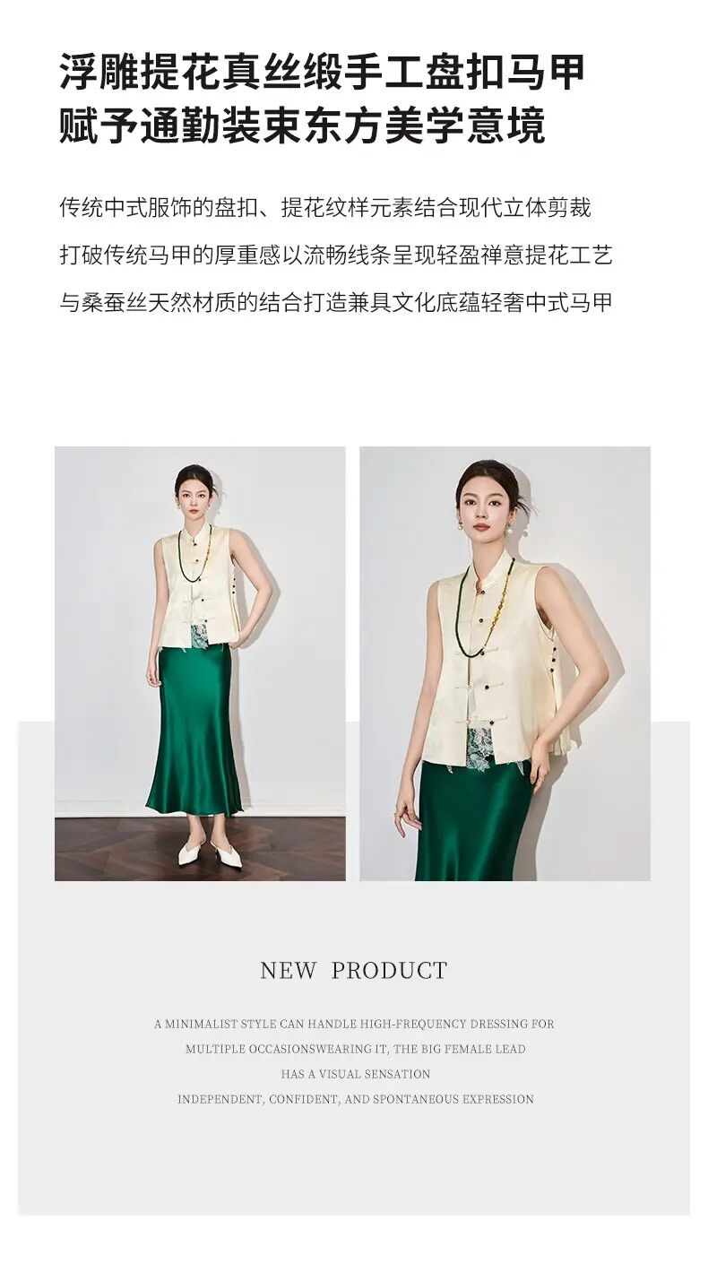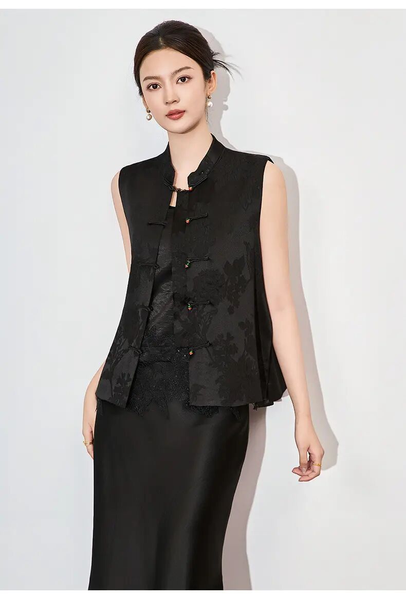 【高货wl】全新升级【铂金会员330/天猫449/差价119】(12008) 洛诗琳新中式禅意别致高级感上衣女春提花真丝马甲外套