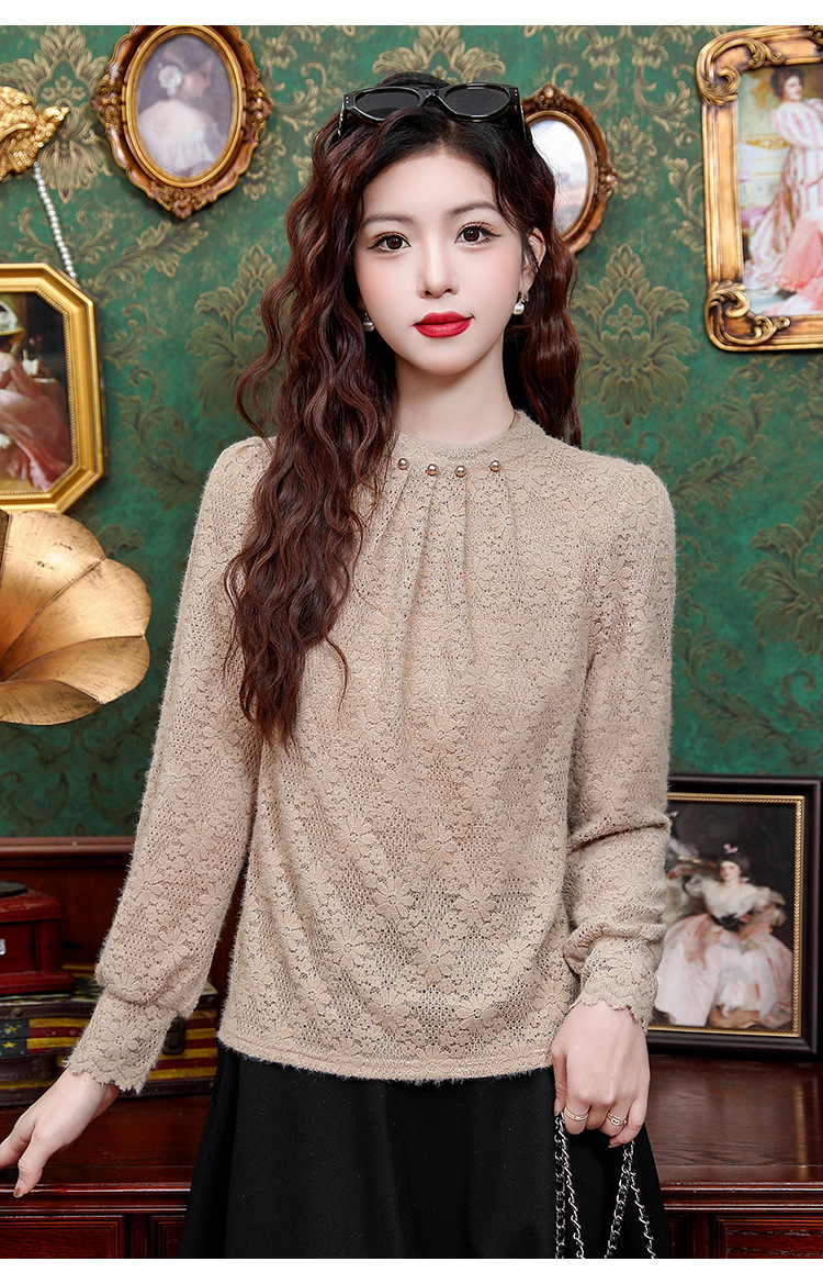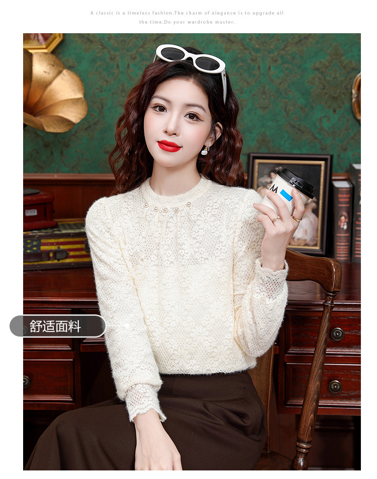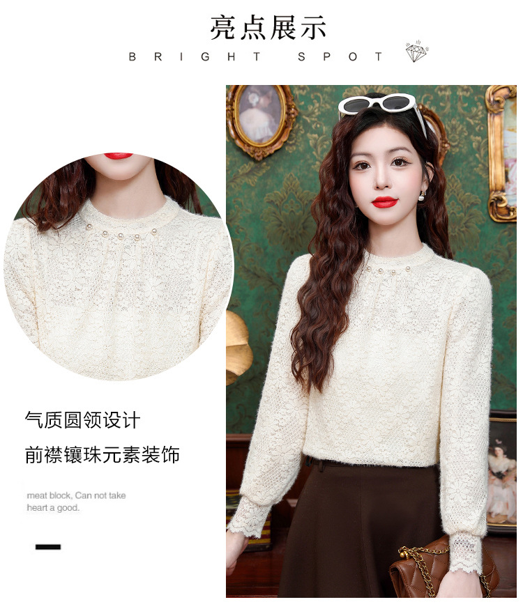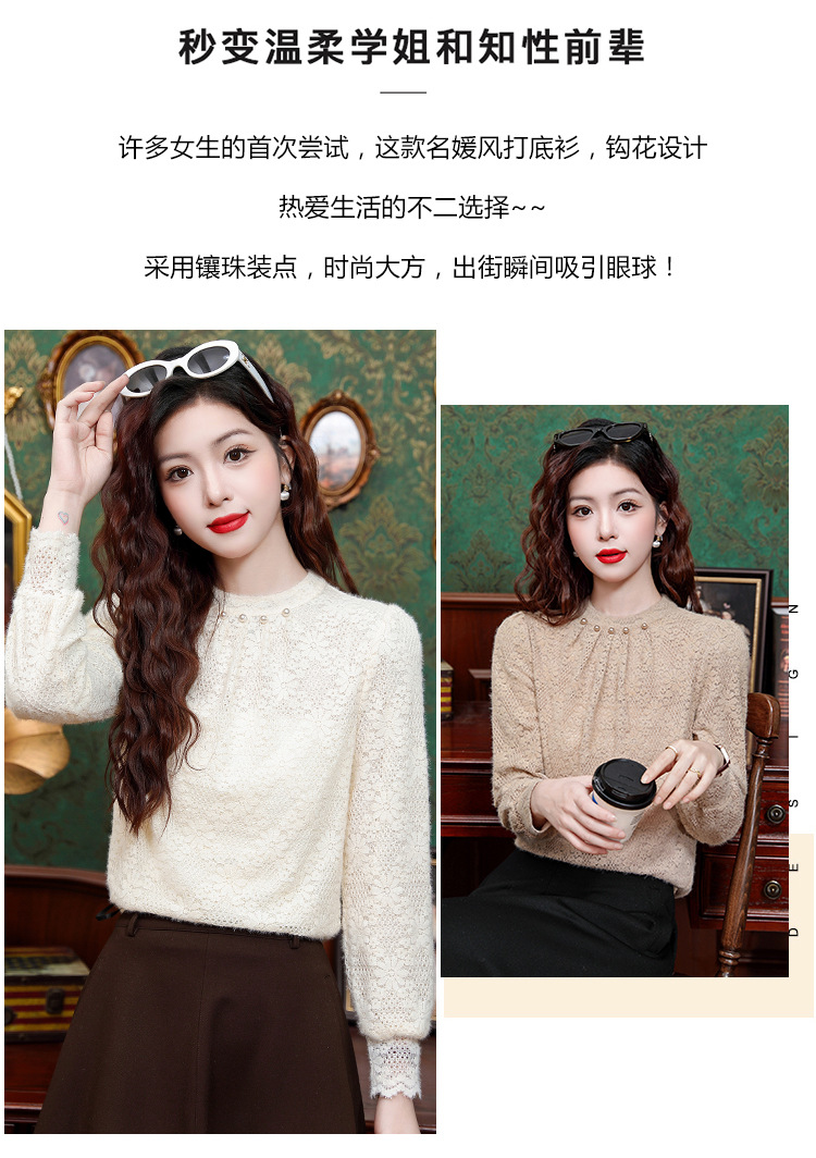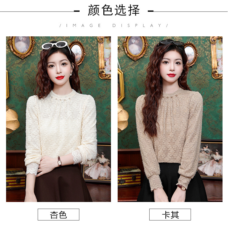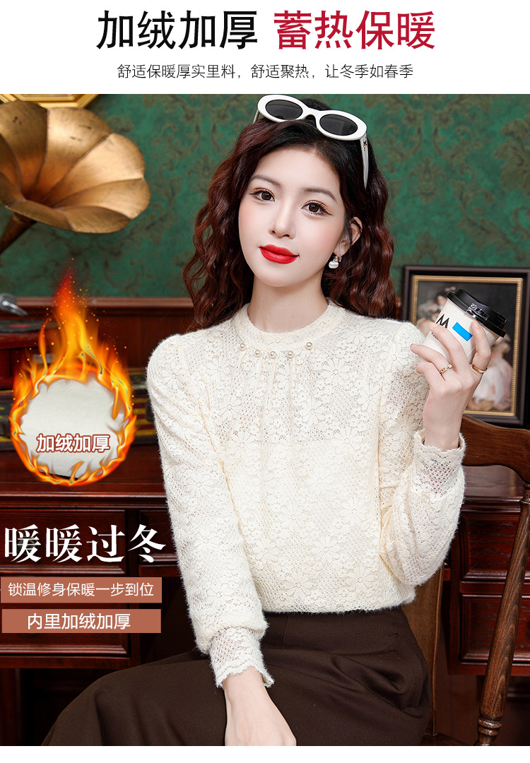 SMZ32773加绒加厚蕾丝打底衫高级感2024新款冬季内搭保暖上衣女洋气小衫潮