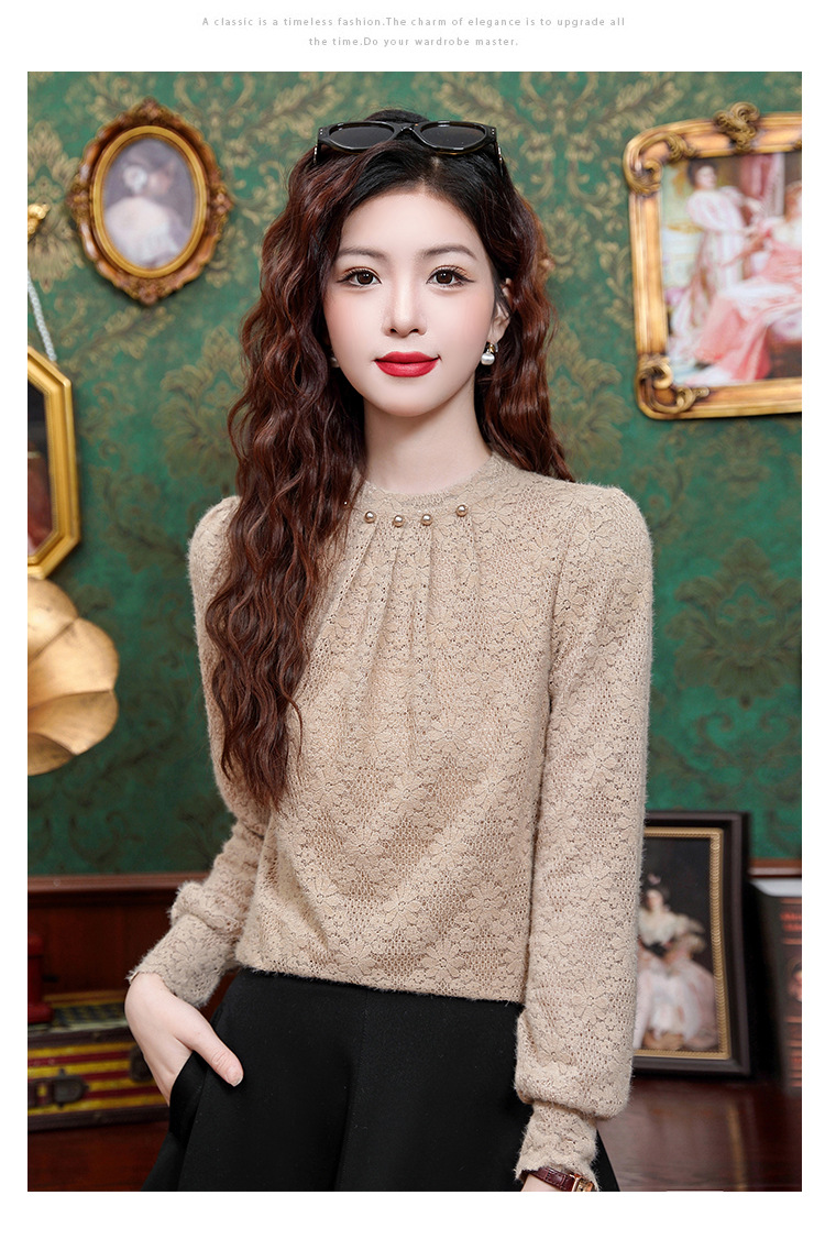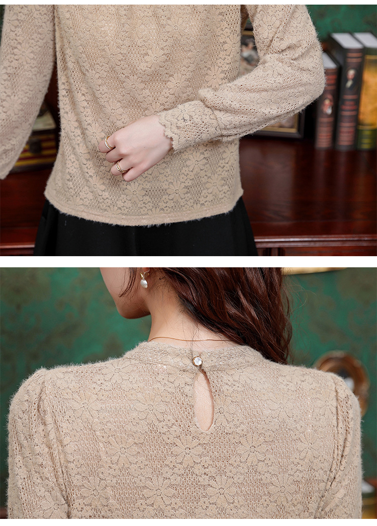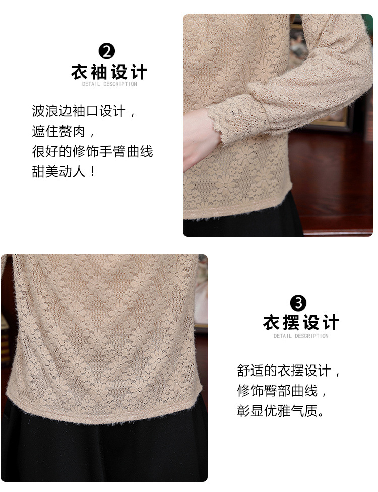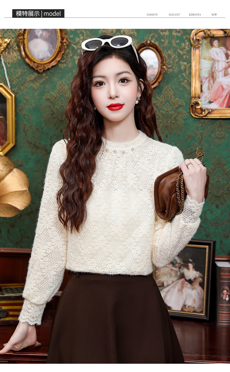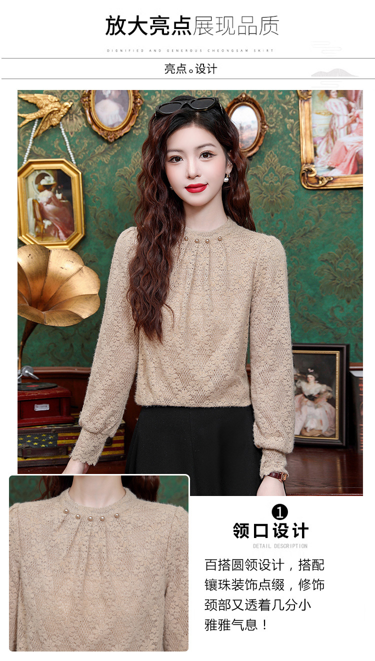 SMZ32773加绒加厚蕾丝打底衫高级感2024新款冬季内搭保暖上衣女洋气小衫潮