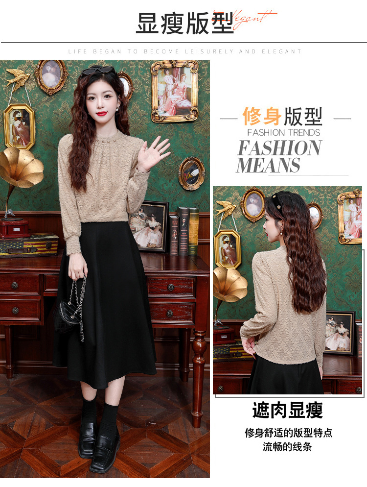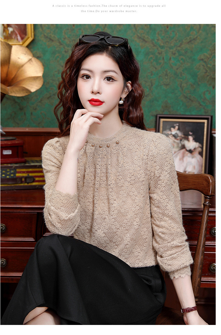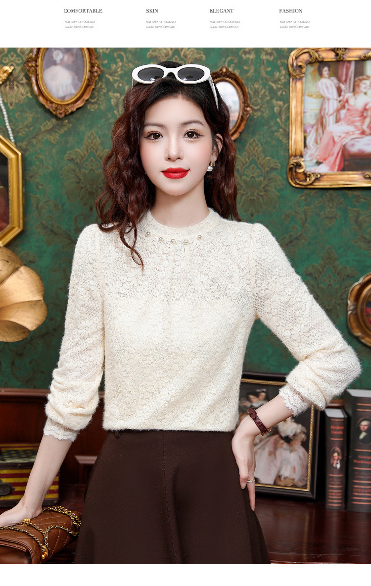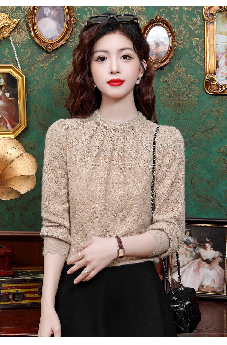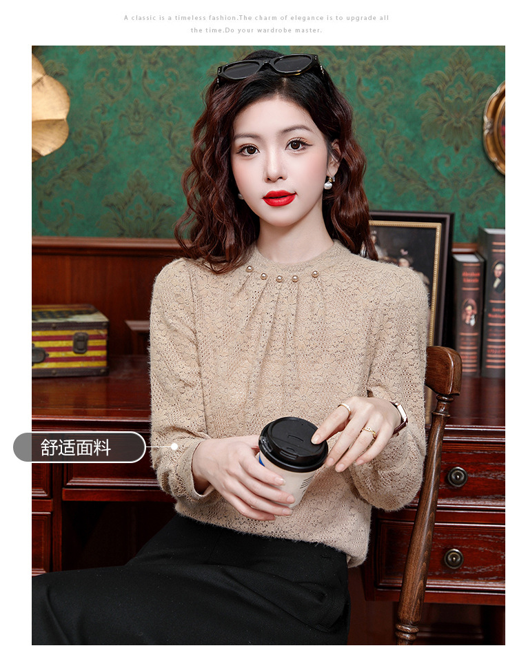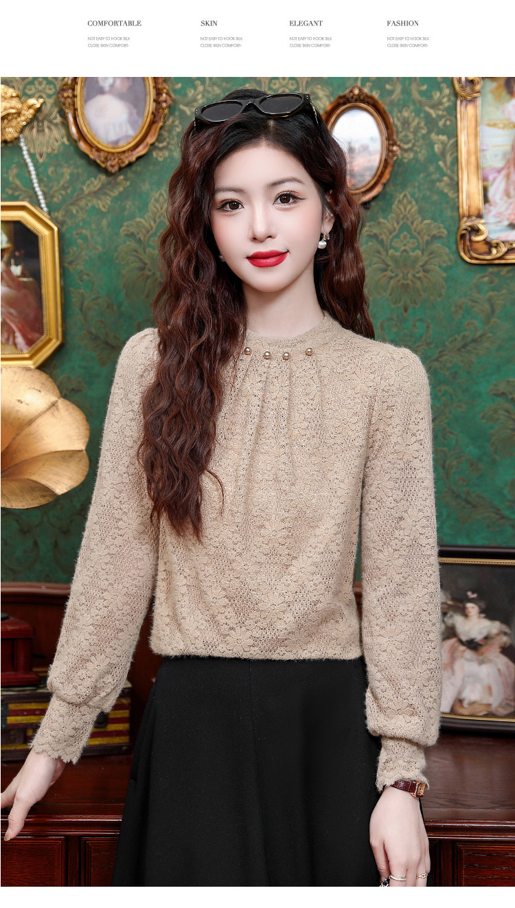 SMZ32773加绒加厚蕾丝打底衫高级感2024新款冬季内搭保暖上衣女洋气小衫潮