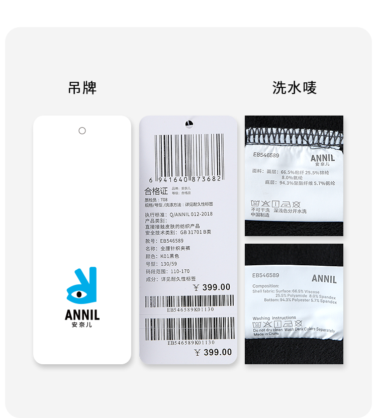 男童全腰针织夹裤冬季新款安奈儿童装EB546589
