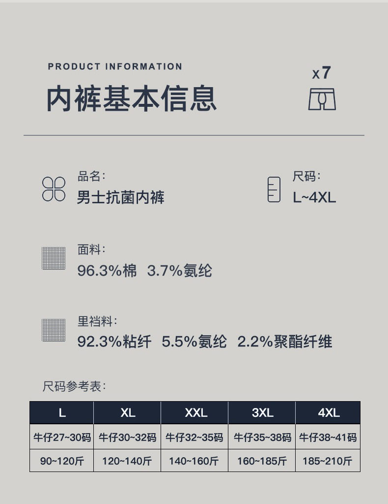 🔥限量!郑重承诺正品带防伪!!真正的大牌品质!!错过这波福利真的亏到哭!!!!对于品质!我们是认真的!贴身穿的东西绝对要好!96.3%棉+氨纶,亲肤透气不闷汗,车缝腿边不卷边,环保印染久洗不褪色!四季可穿还抗菌,男人的贴心“小卫士”!【品名】芬腾男士10A抗菌纯棉环保内裤