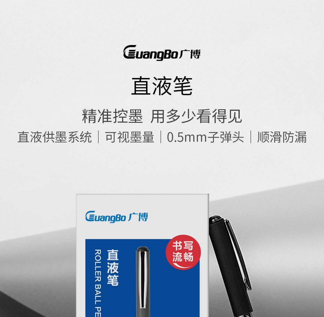 【广博】学习商务办公签字笔0.5mm黑色针管直液水笔按动中性笔子弹头