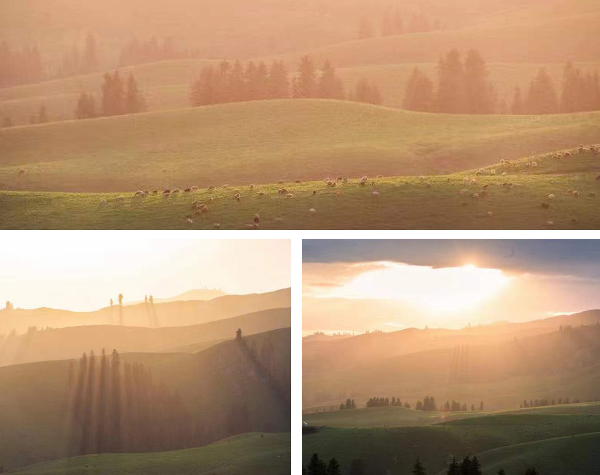 托乎拉苏草原日出拍摄,托乎拉苏草线路森林峡谷拍摄,下午乔勒特优美线条日落拍摄。