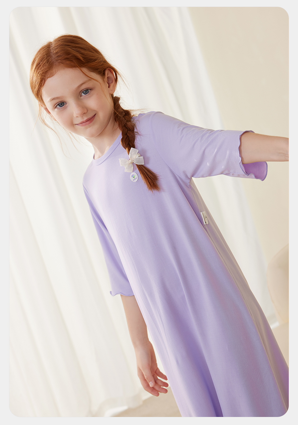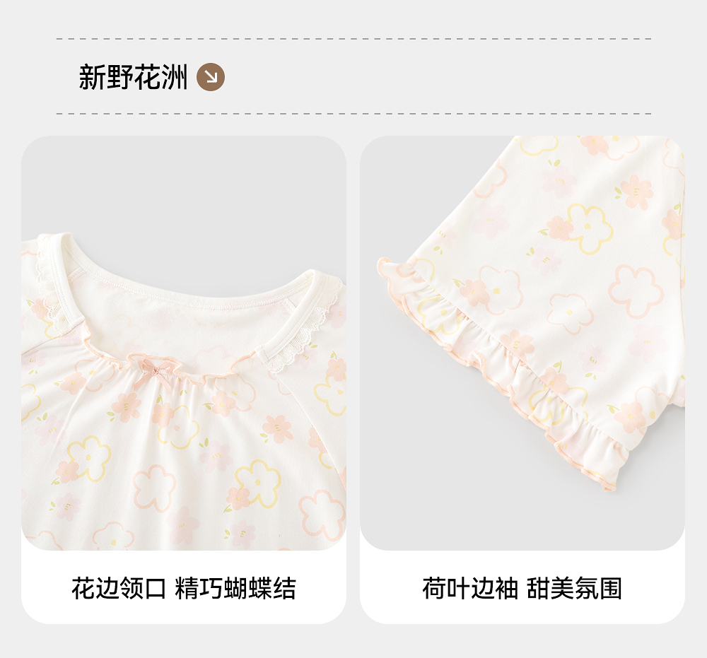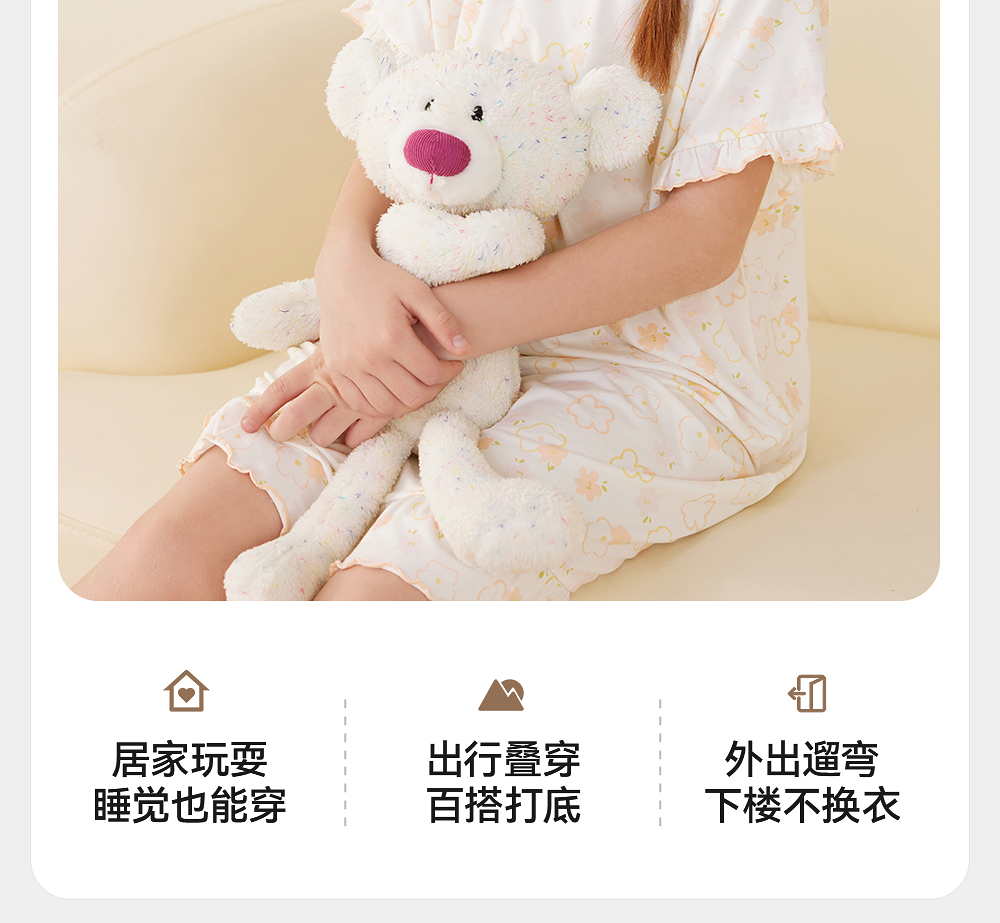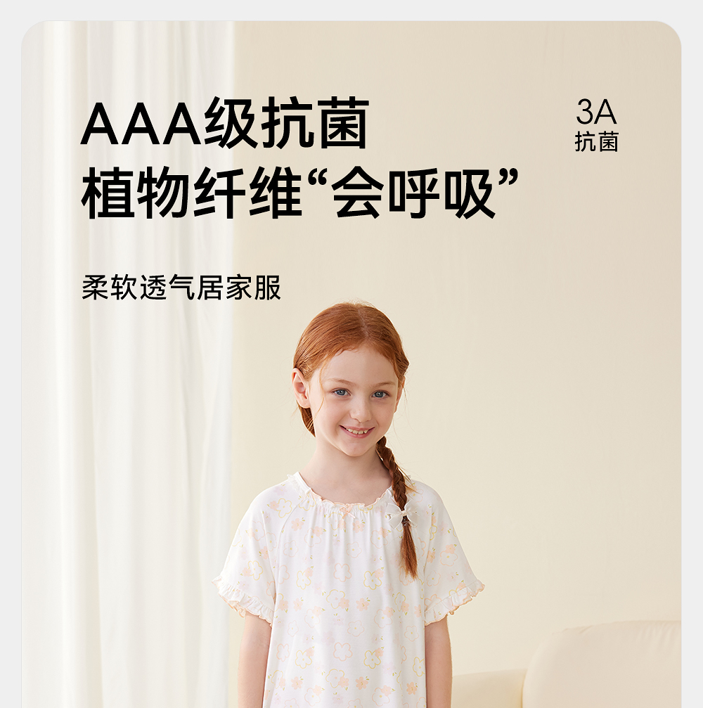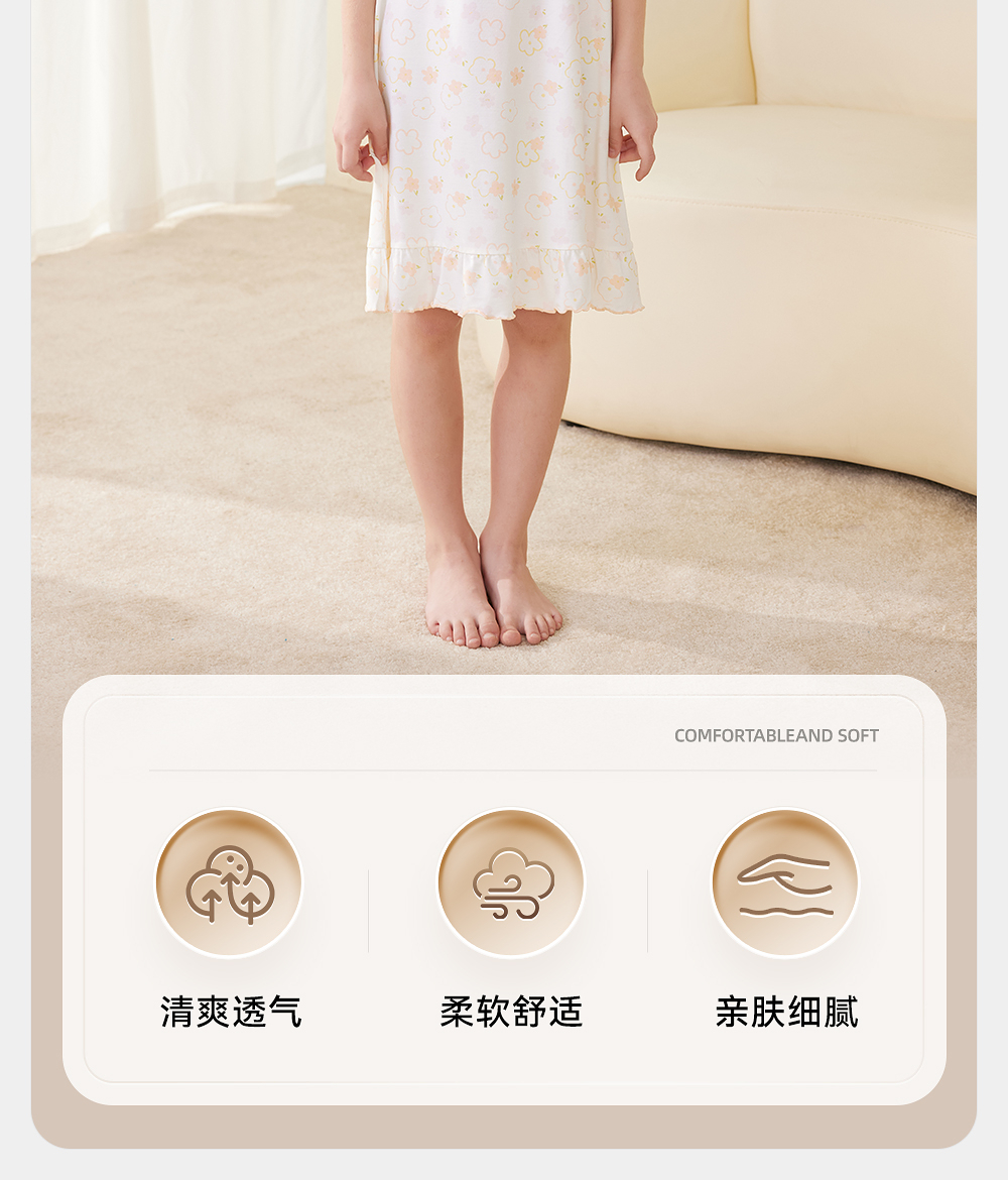 英氏儿童家居服夏季女童透气睡裙莫代尔凉爽睡衣长裙中大童睡裙