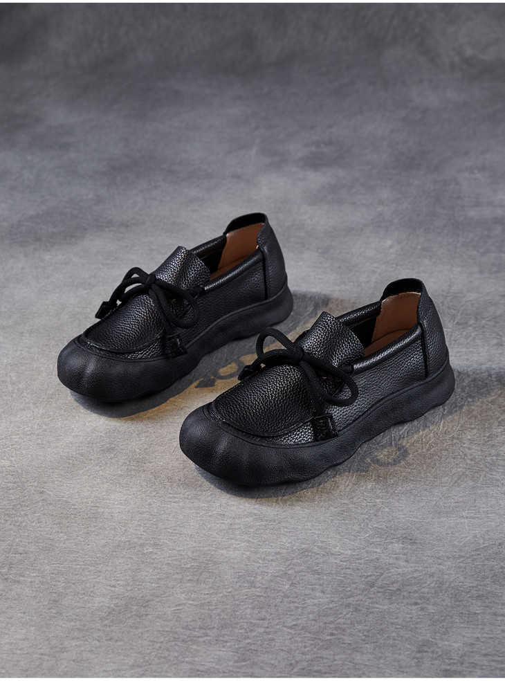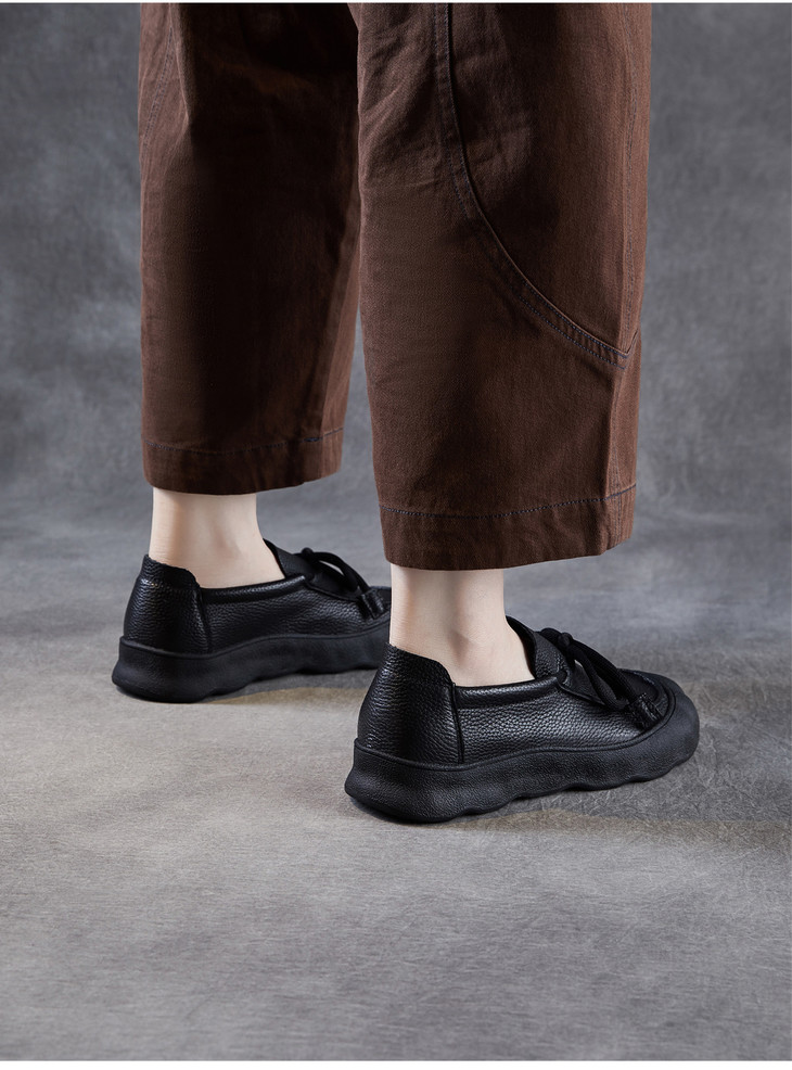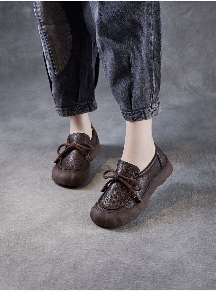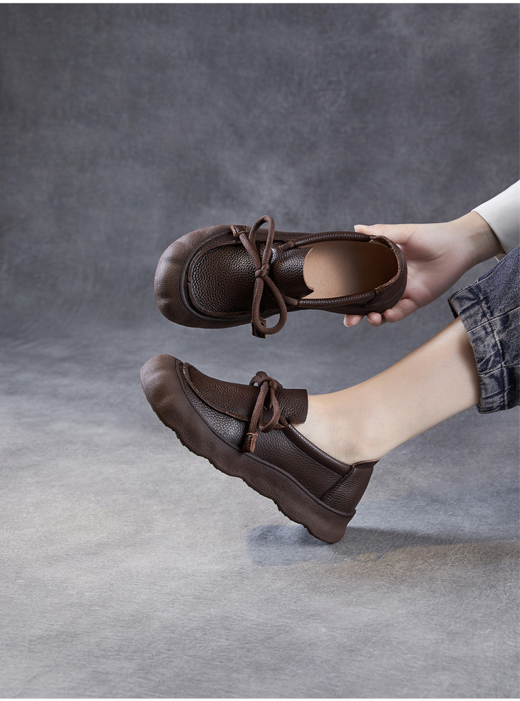 复古手工真皮休闲鞋,软底软面平底圆头系带森系单鞋ZM258601