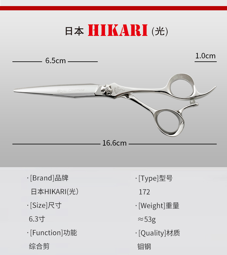 HIKARI光剪 剪刀Ryu COSMOS 172 专业美发剪刀综合剪 平剪6.3寸单侧柄