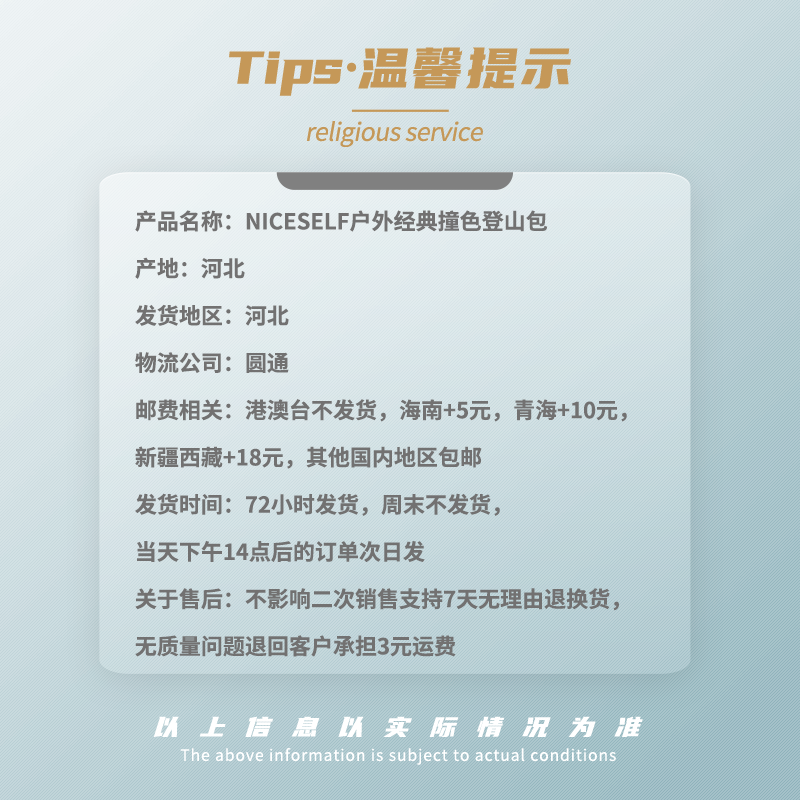 【轻便小巧】NICESELF山影·户外经典撞色登山包 多用途轻便小巧旅游双肩包 轻装出行徒步情侣日常出行背包