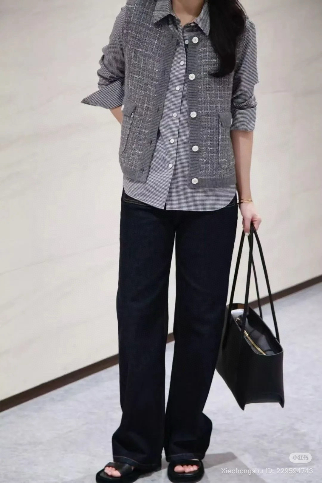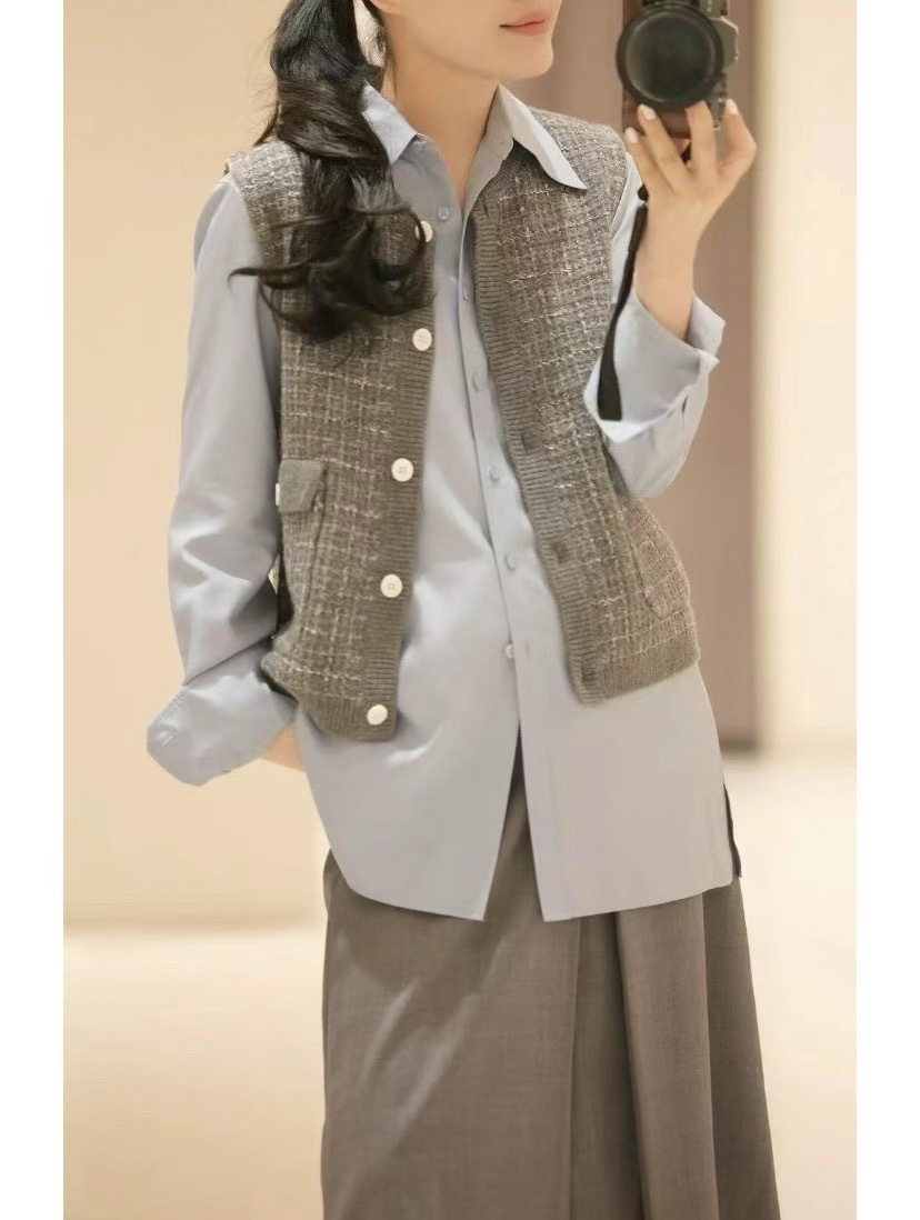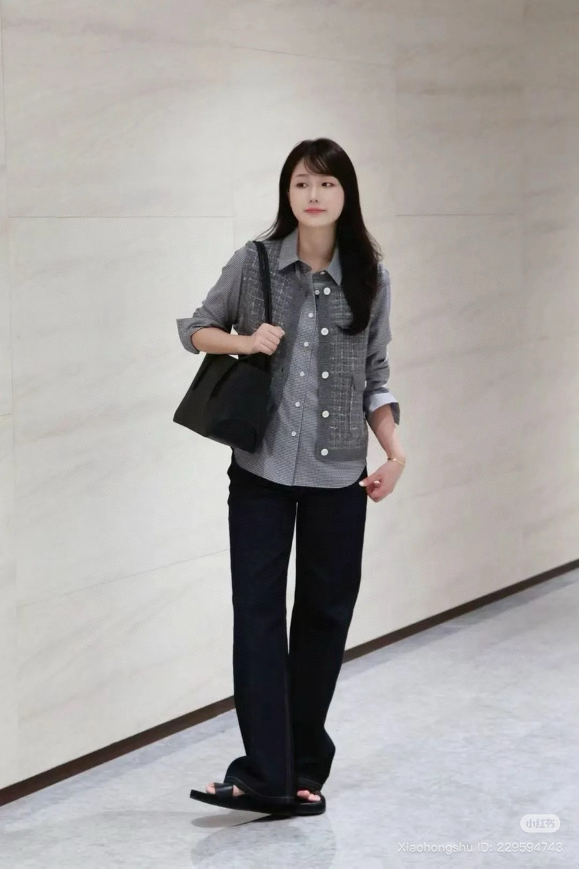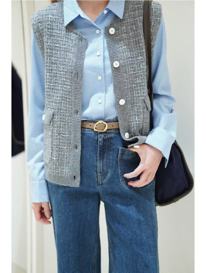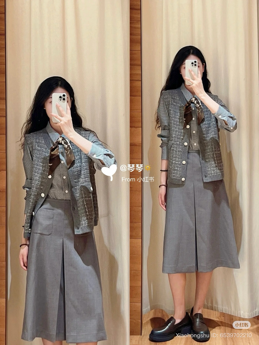 你们不看管搭配灰色或黑者色或者是仔牛蓝,都是非一般的级高有气质。内搭的小纹格衬衫,们咱也会的有哈