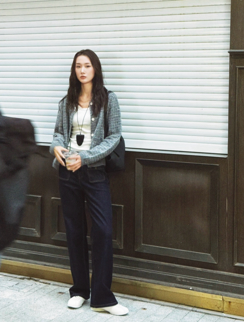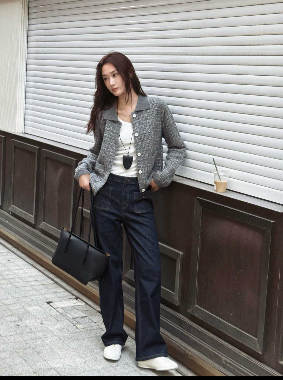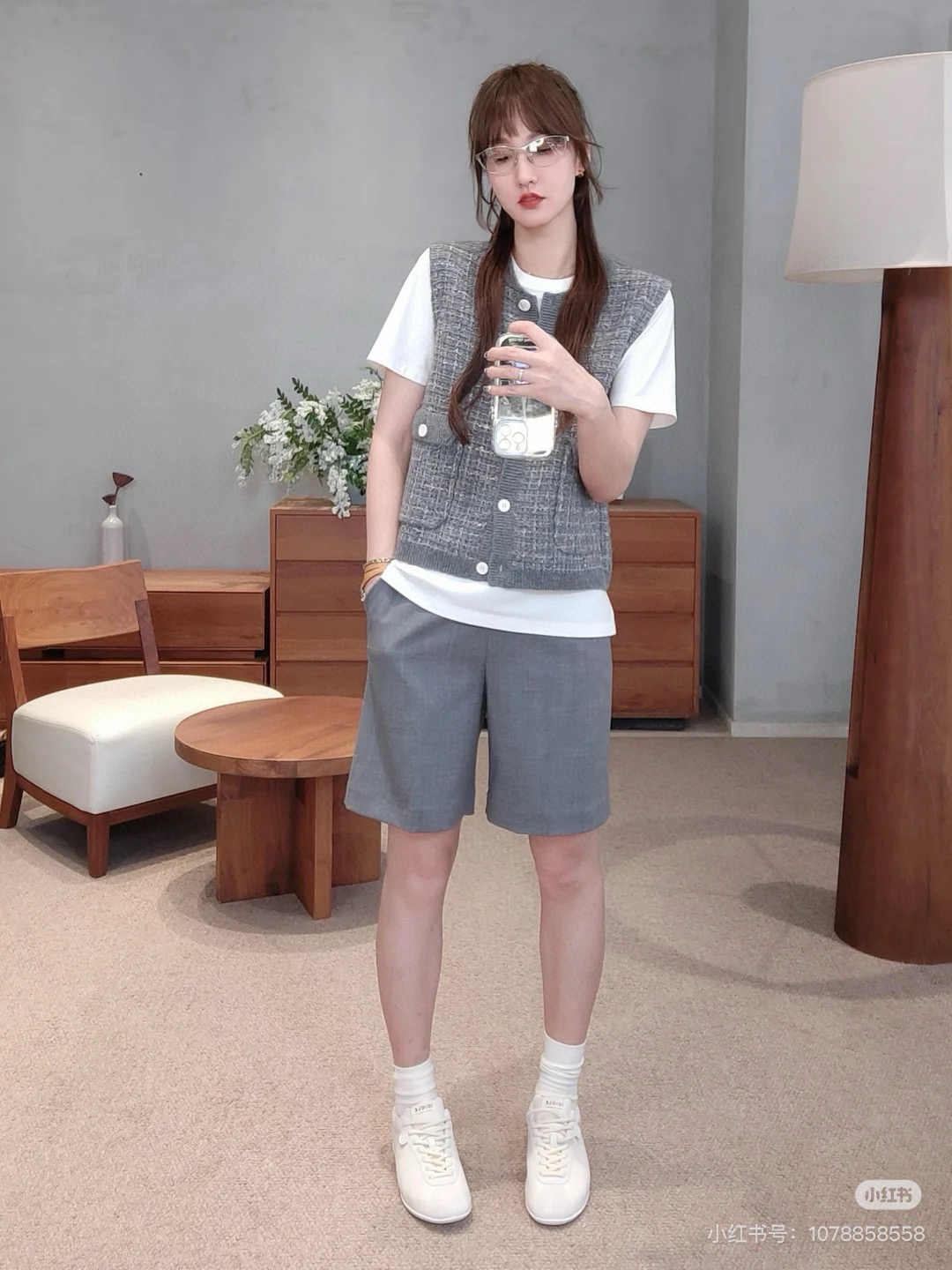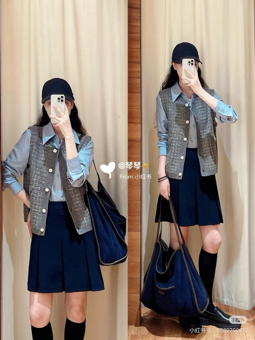 你们不看管搭配灰色或黑者色或者是仔牛蓝,都是非一般的级高有气质。内搭的小纹格衬衫,们咱也会的有哈
