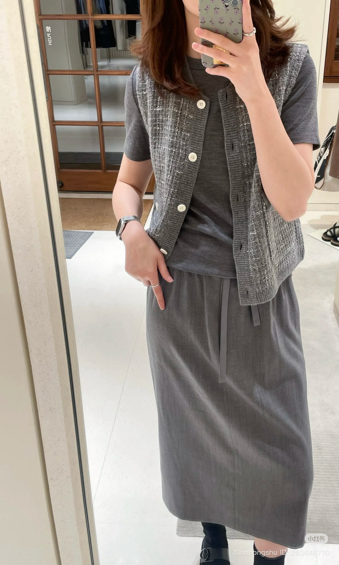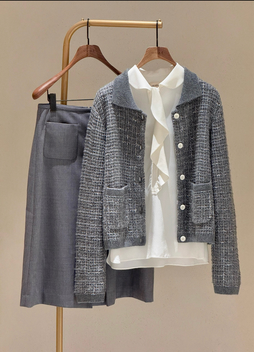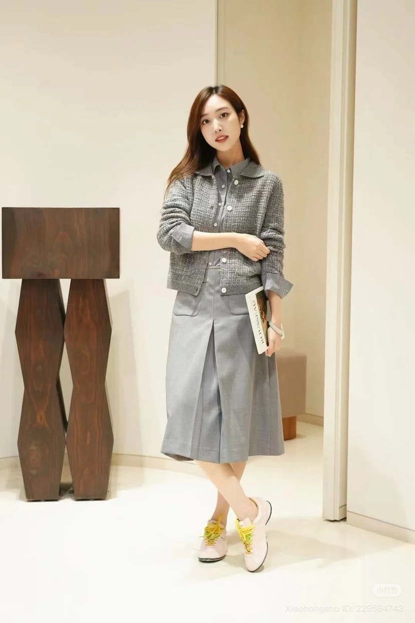 还白有色带logo的纽扣,一个萝一卜个坑,面外是属实没有。质气优雅高级的格雷灰,智高感,冷清感,知识子分气质,今年加了星星点点彩色,更加活跃油温。