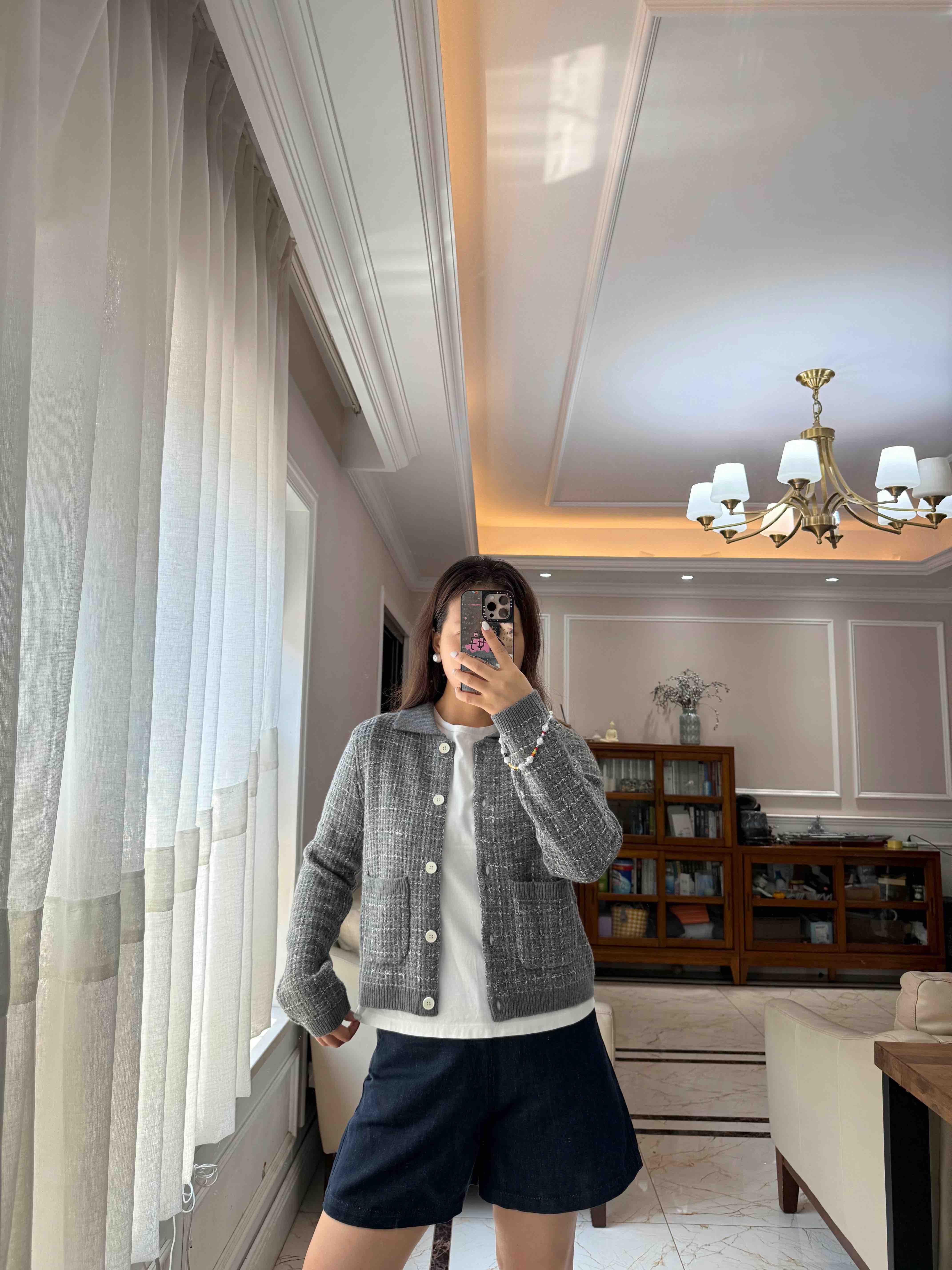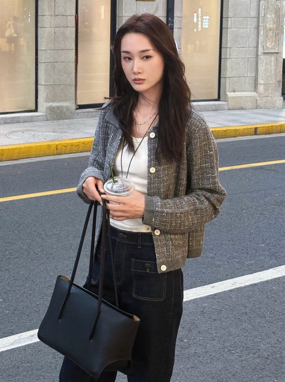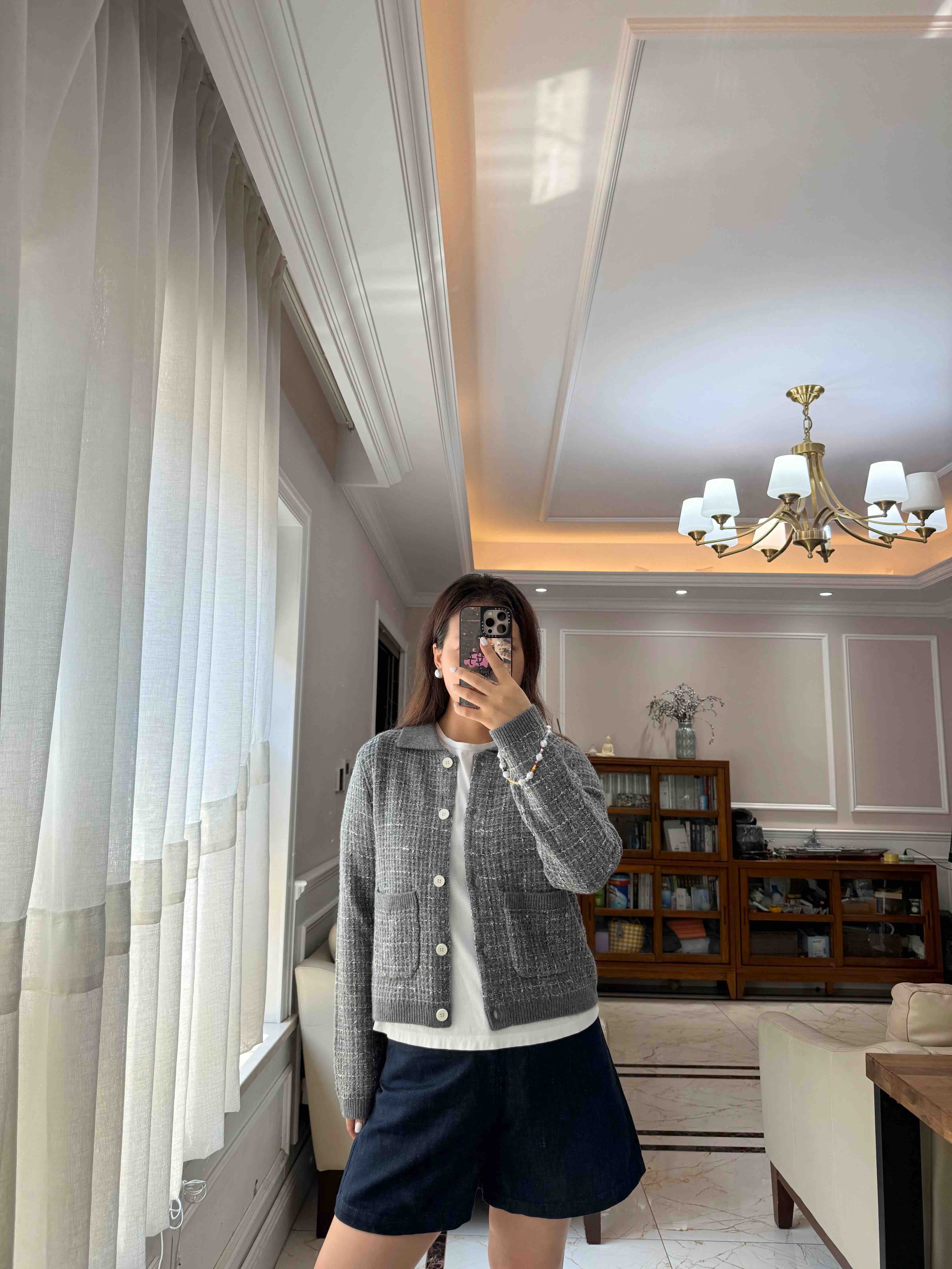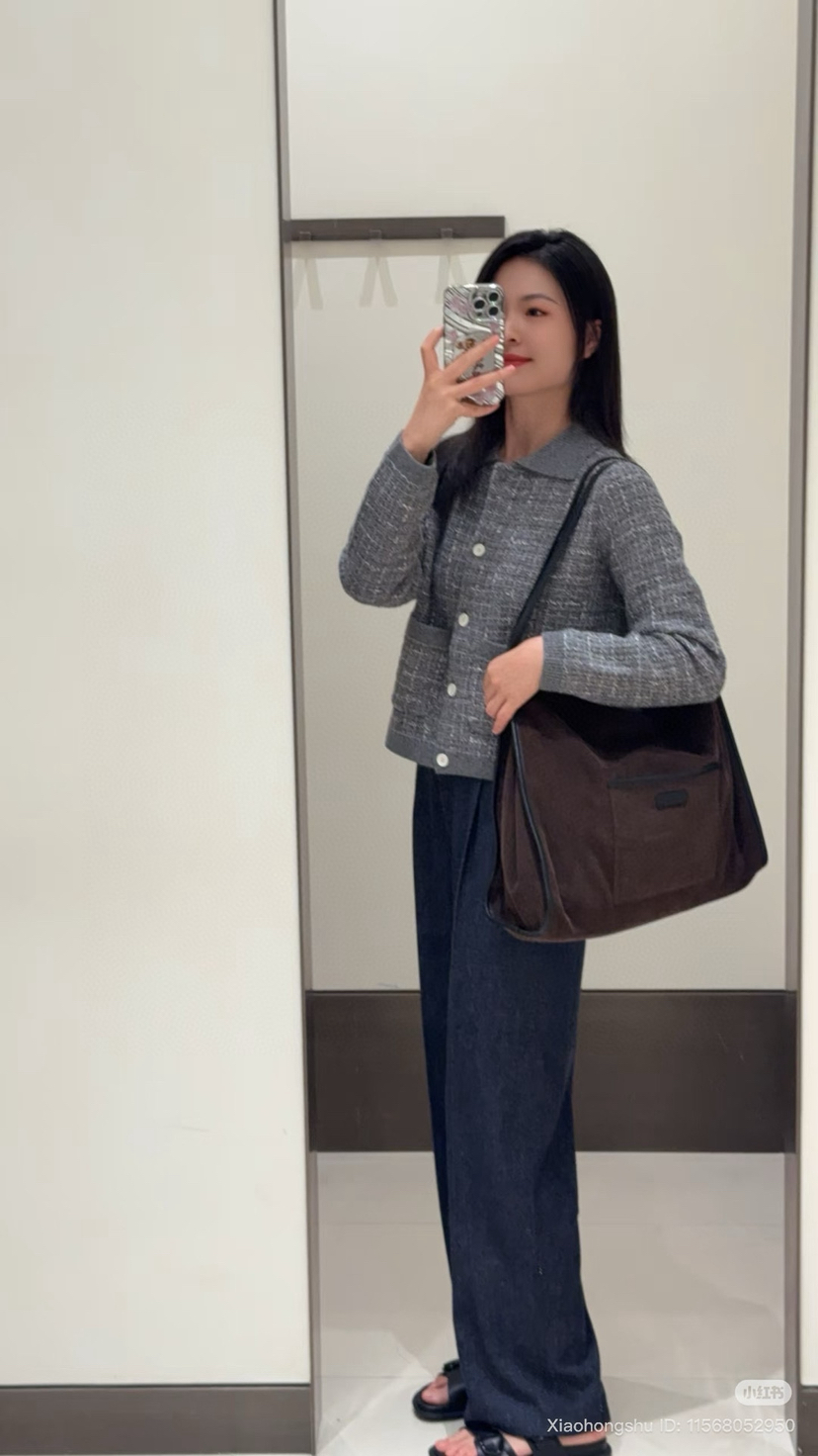 这季应该是最符合"香奶奶"风的一件夹克了,有小香命的,没有小香病的,小香格纹花纱实,际上贴身是刺的挠,不够软糯!