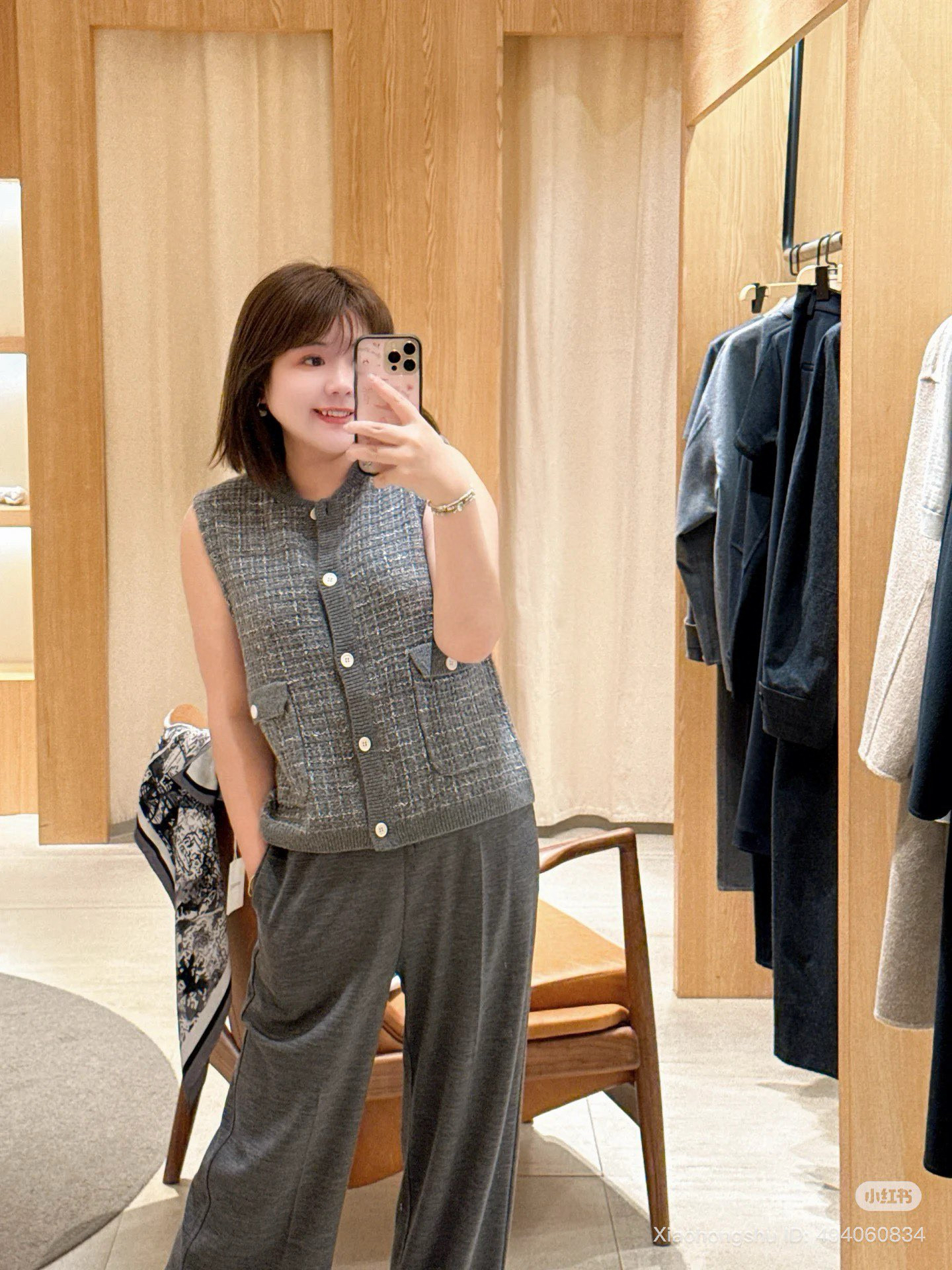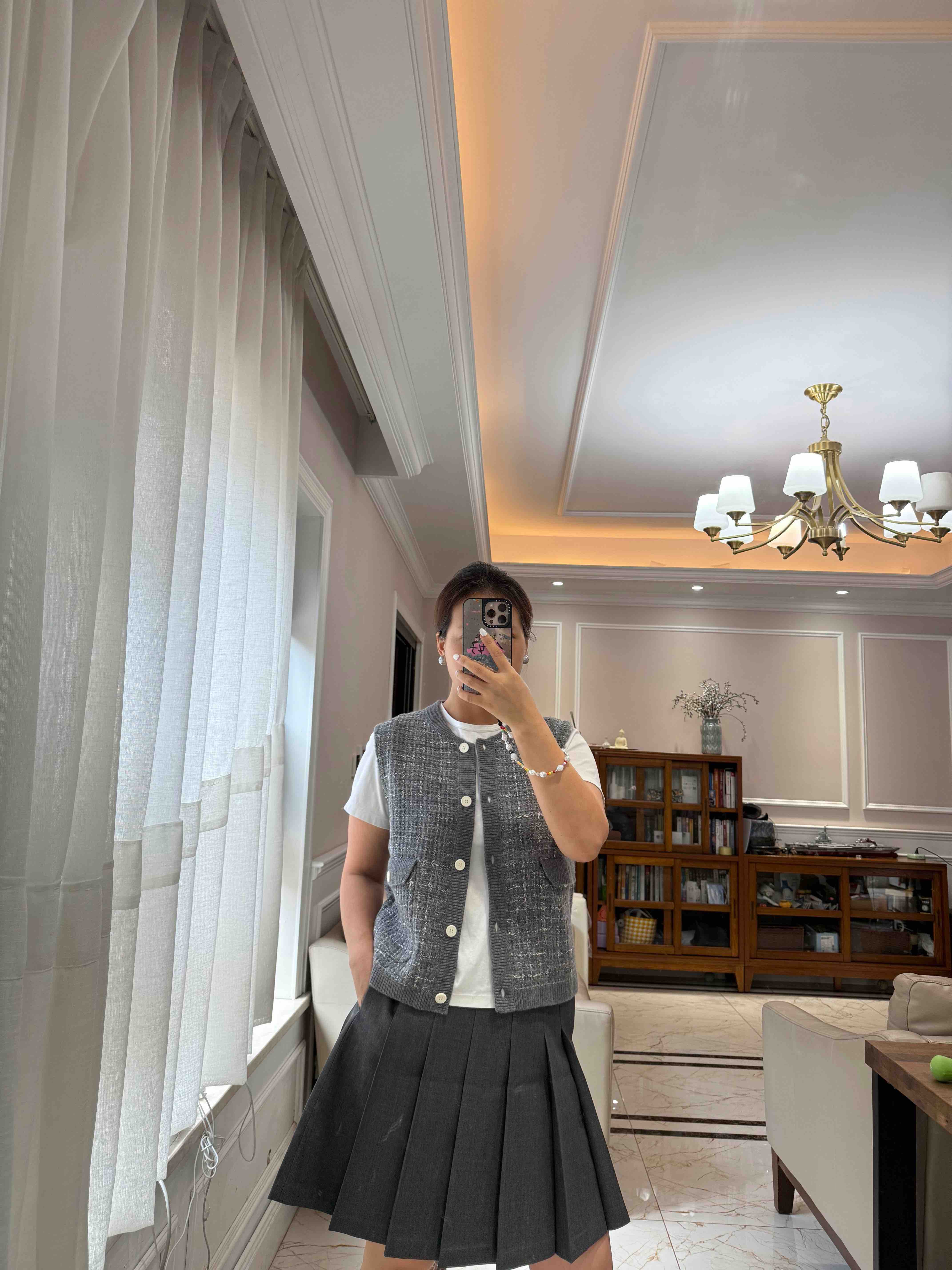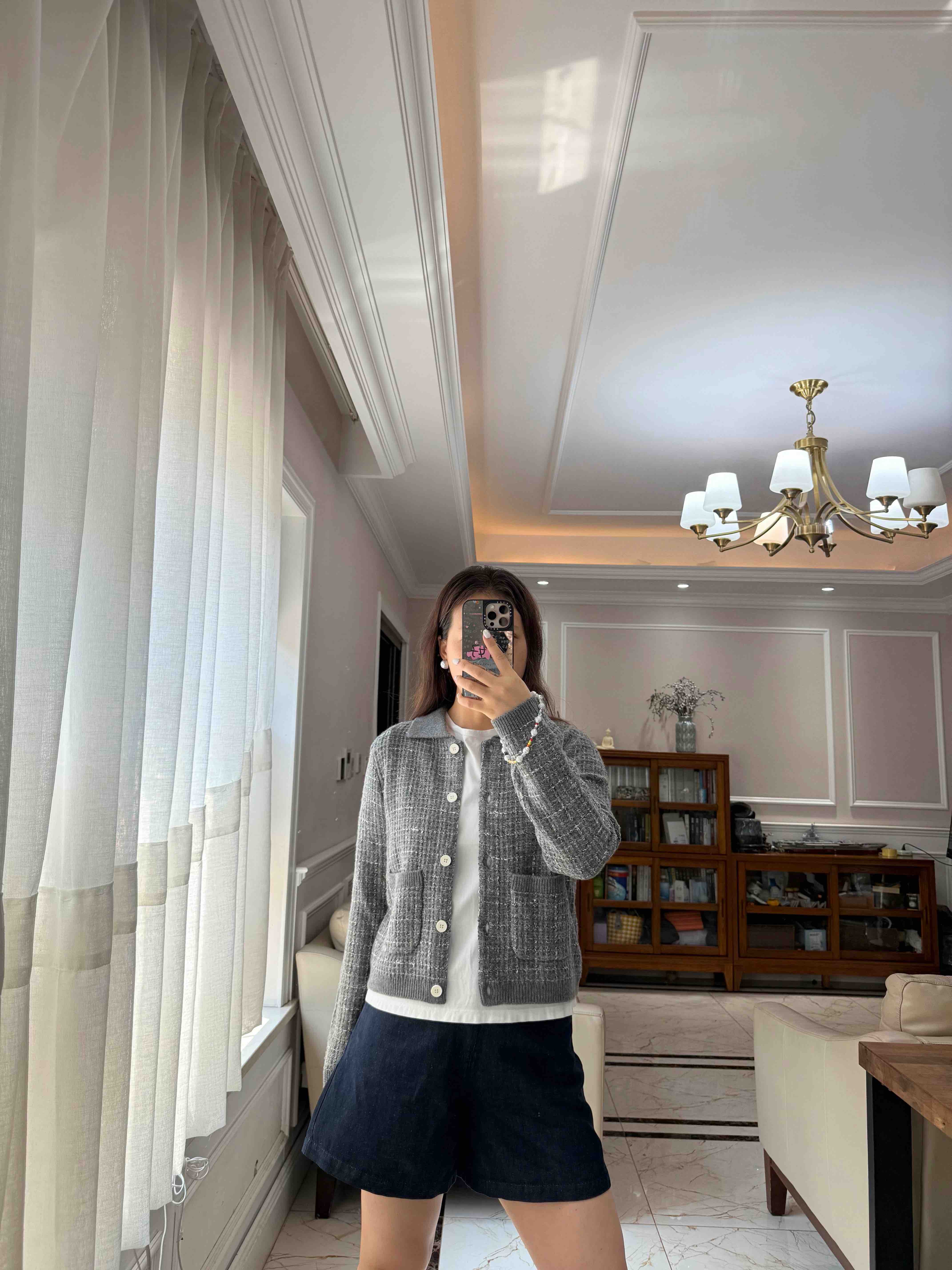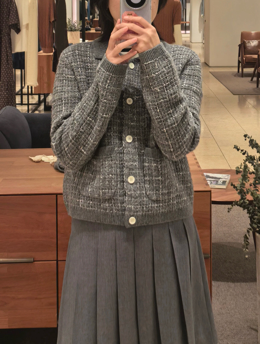 这季应该是最符合"香奶奶"风的一件夹克了,有小香命的,没有小香病的,小香格纹花纱实,际上贴身是刺的挠,不够软糯!
