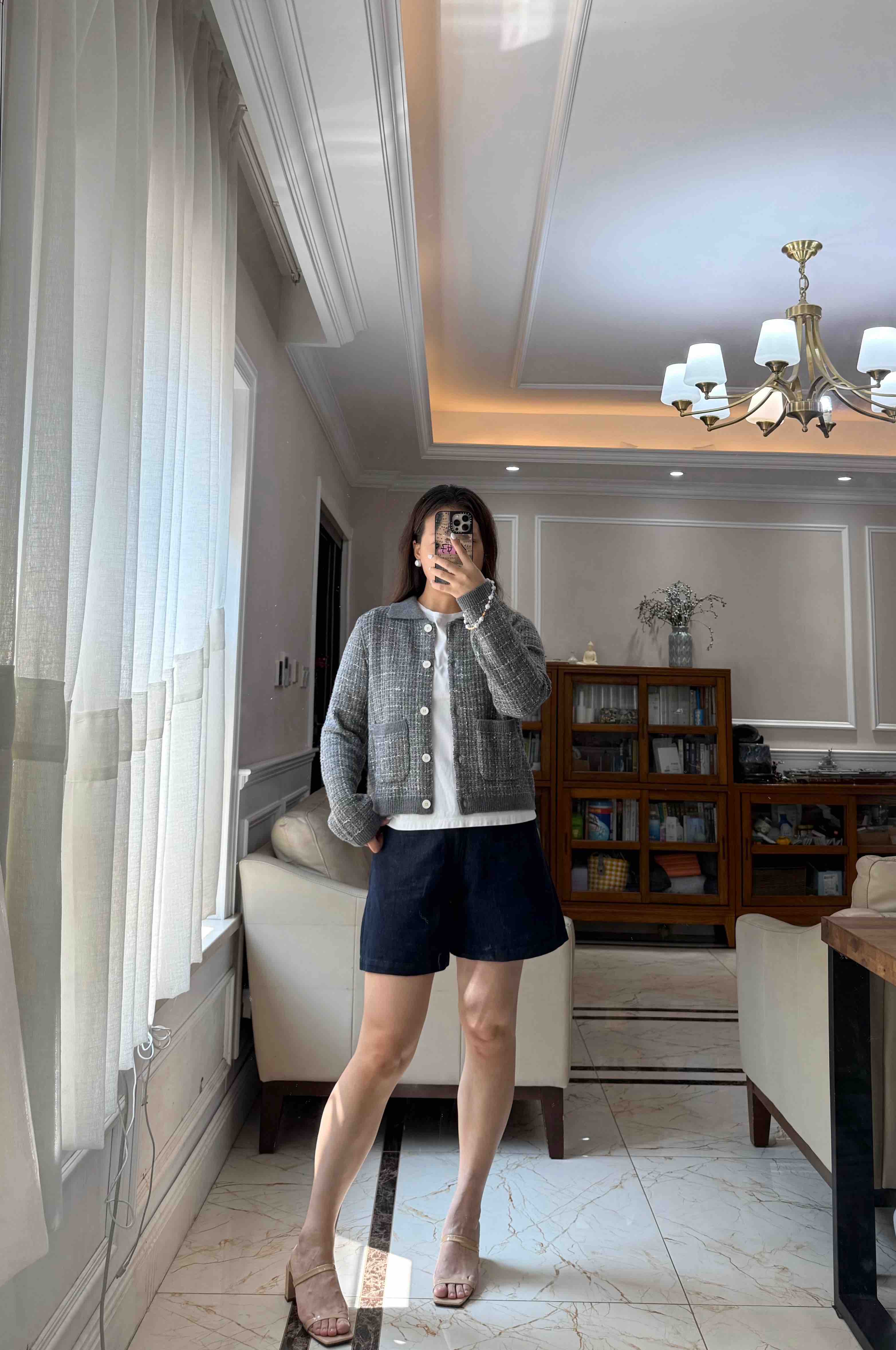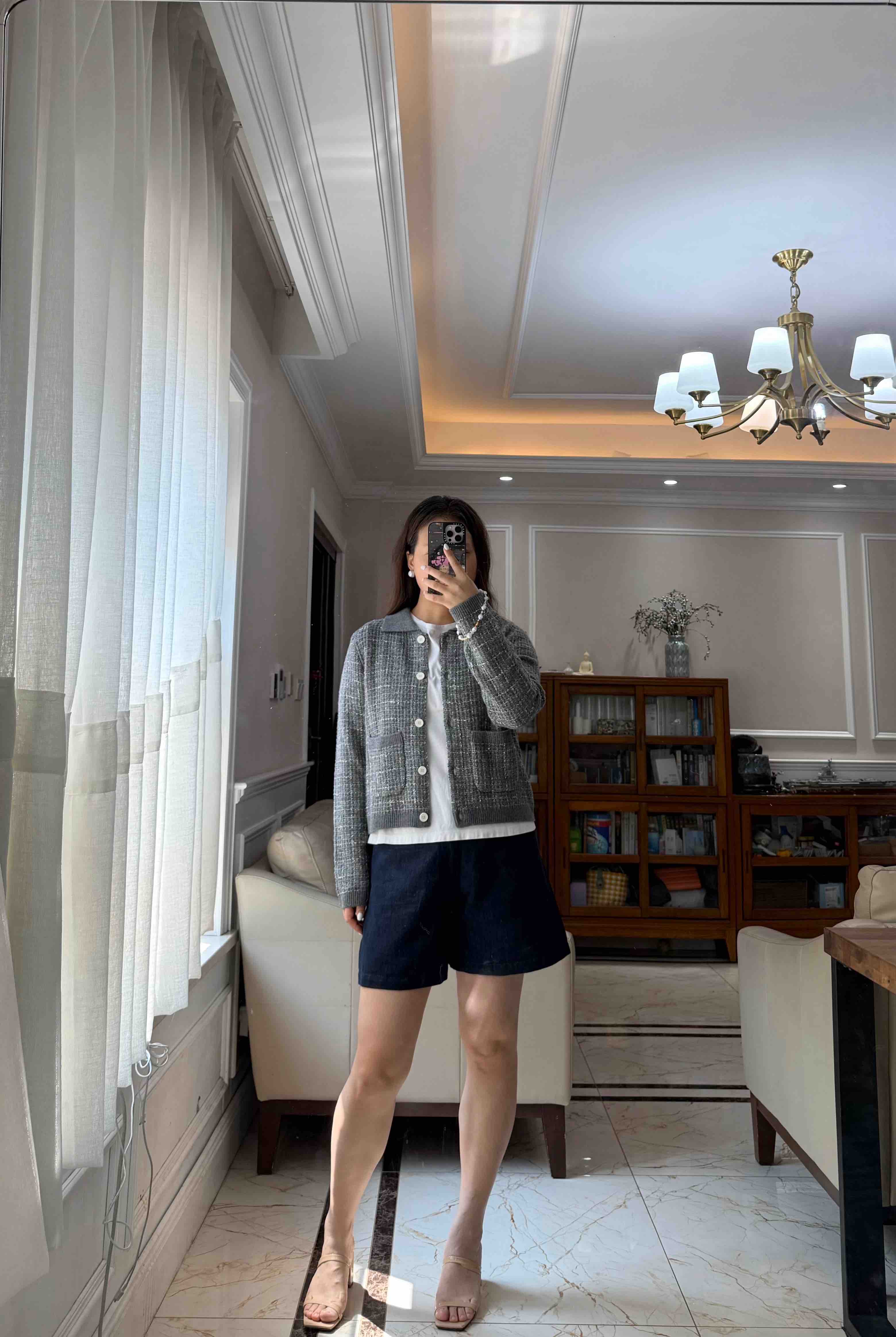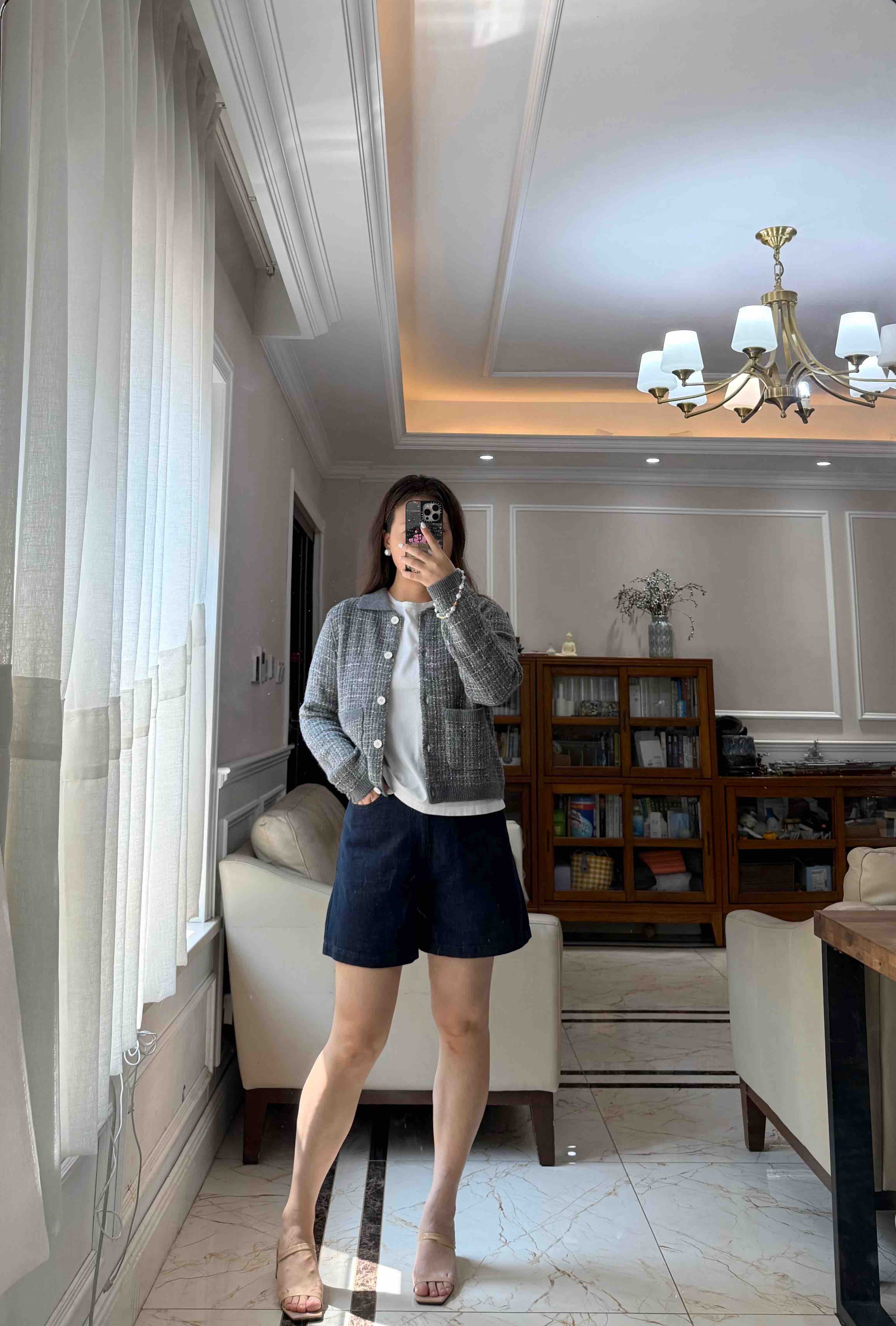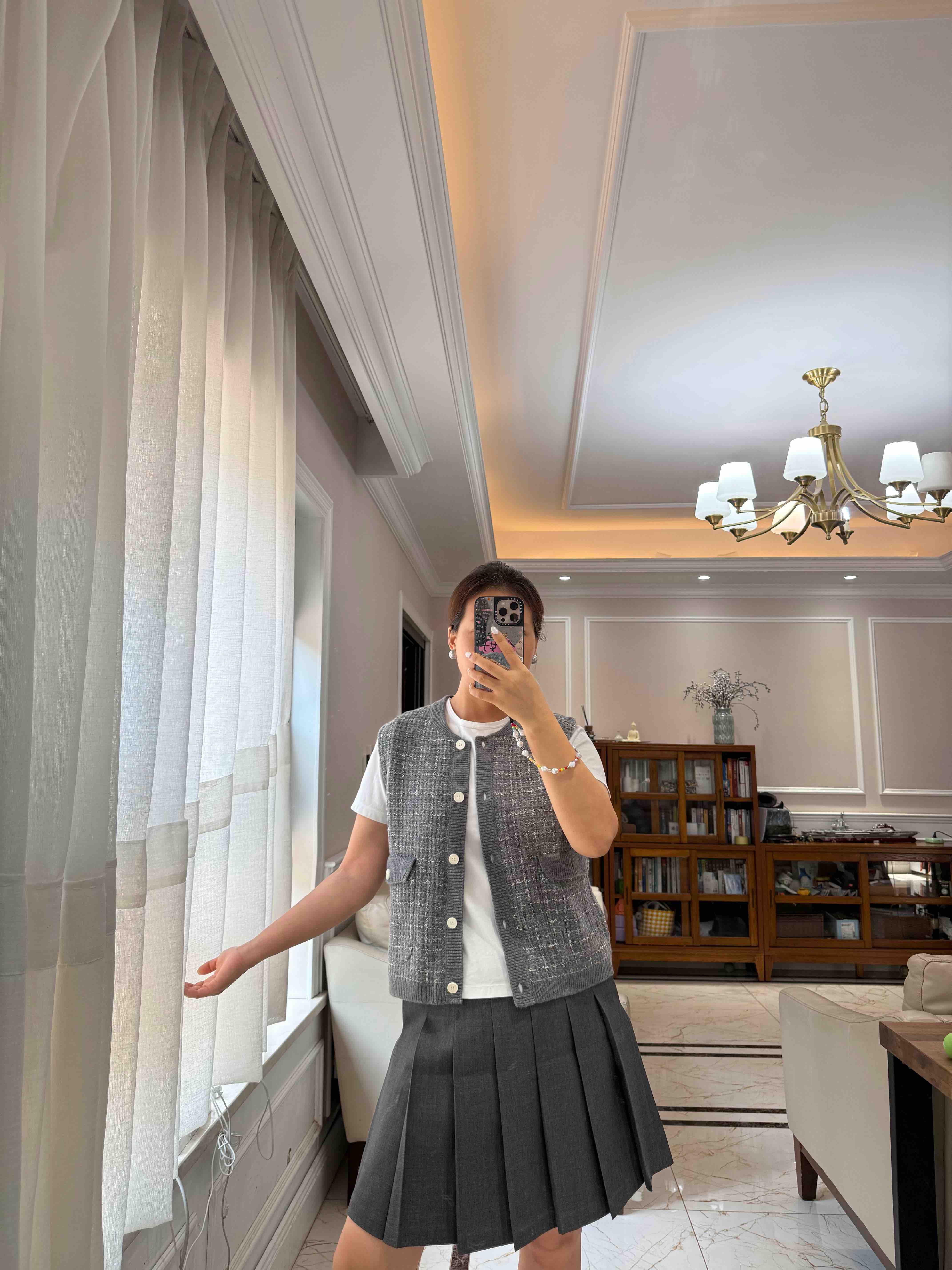 这季应该是最符合"香奶奶"风的一件夹克了,有小香命的,没有小香病的,小香格纹花纱实,际上贴身是刺的挠,不够软糯!