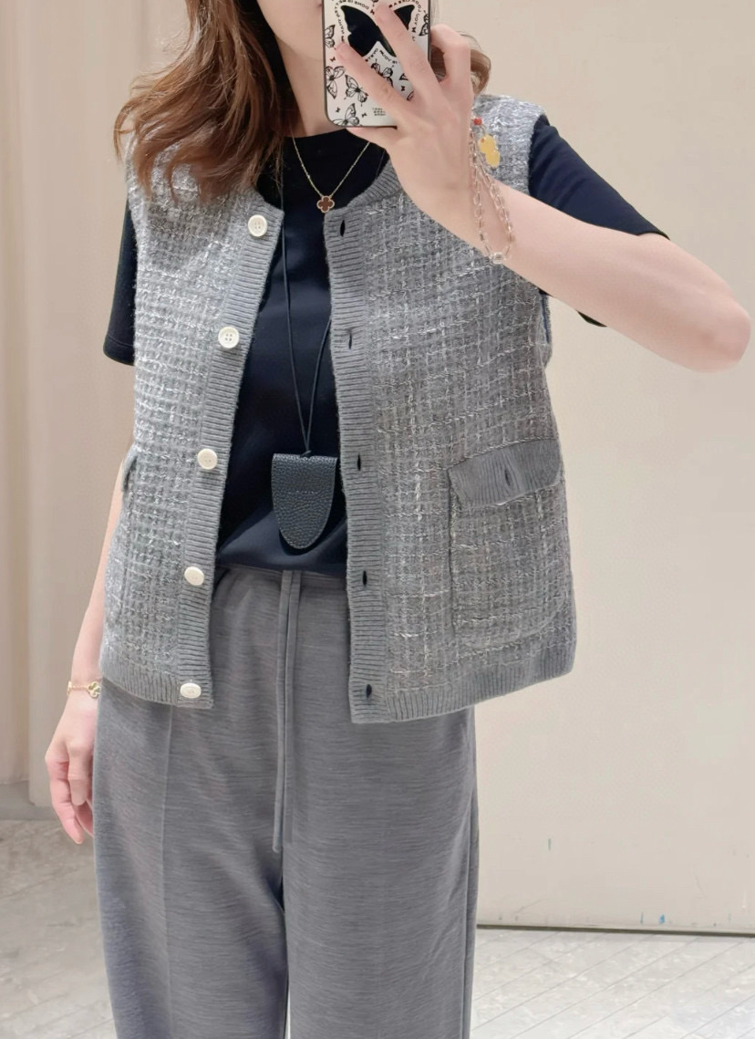 82-2 排他性独家圆正 真正原材原扣 香风 进口花纱 真丝羊毛羊绒 针织背心/开衫外套 仅此一批