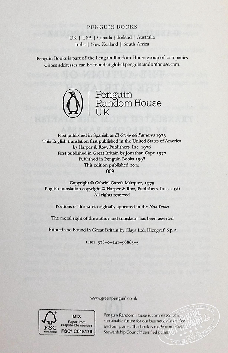 【中商原版】族长的秋天 英文原版 The Autumn of the Patriarch Gabriel Garcia Marquez