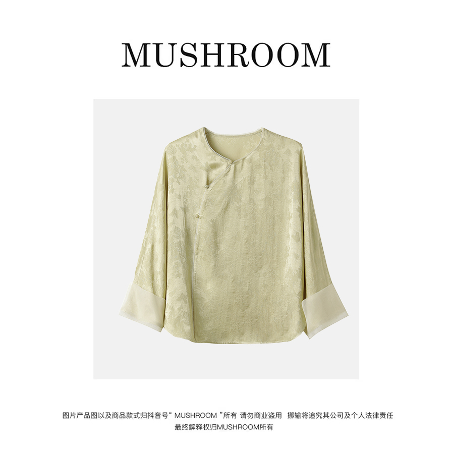 金蘑菇菇【云中竹雾】设计师高定新中式斜襟天丝衬衫国风宽松温柔小衫女