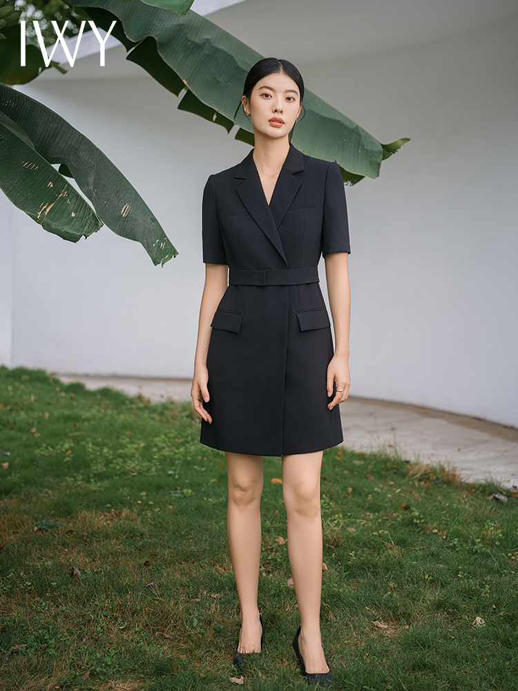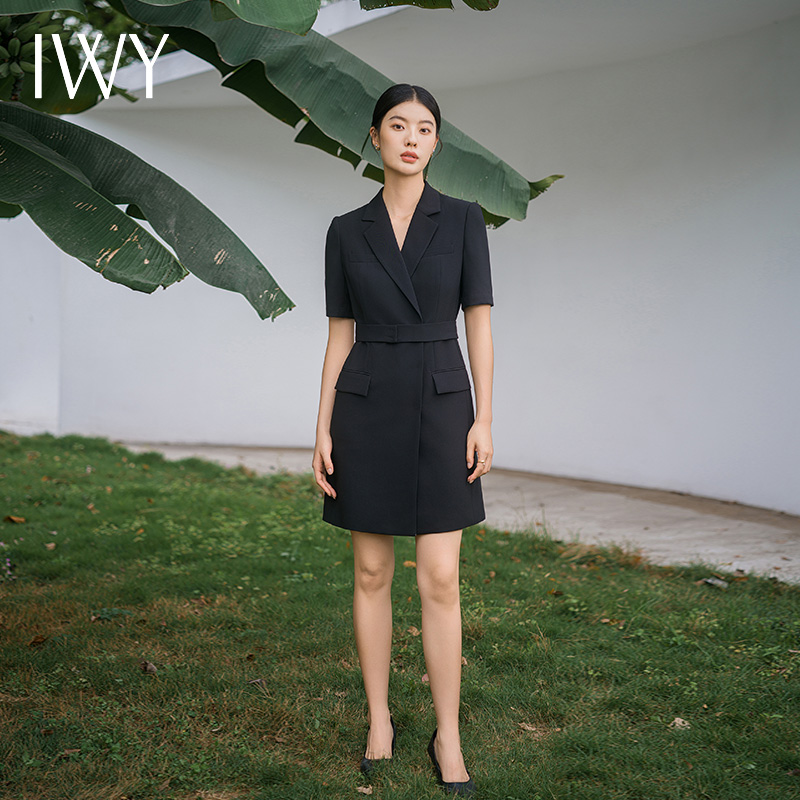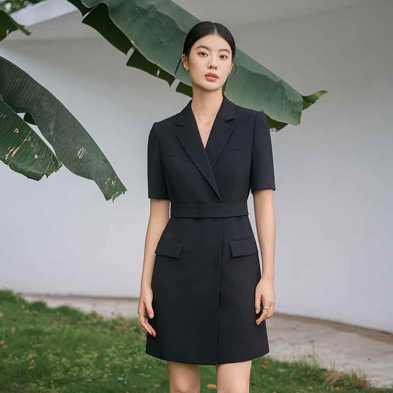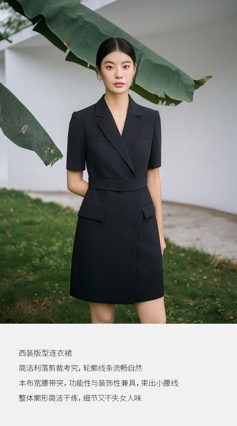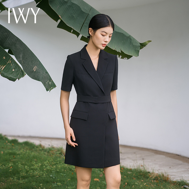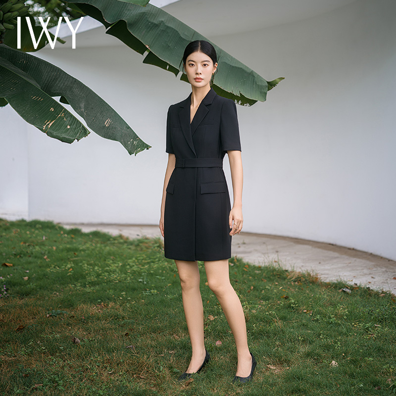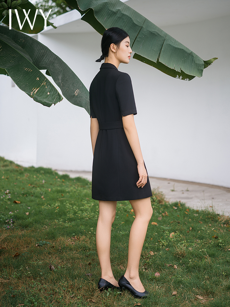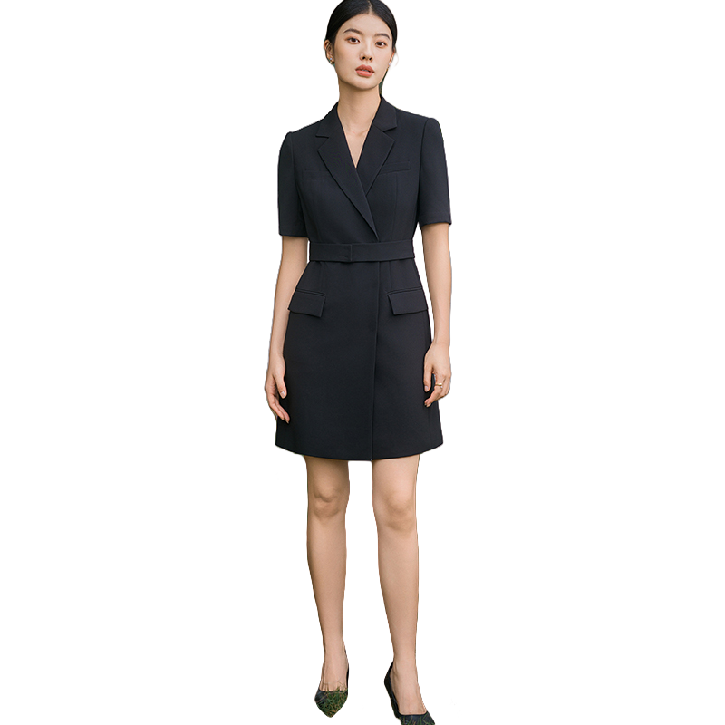 IWY/新款夏季时尚优雅黑色短袖连衣裙薄款酒店接待职业装名媛正Q14238黑色