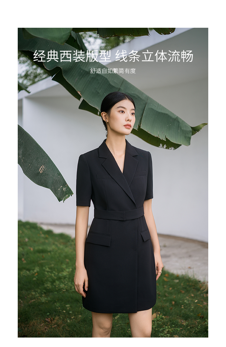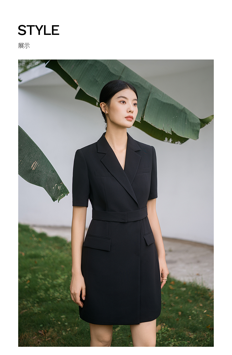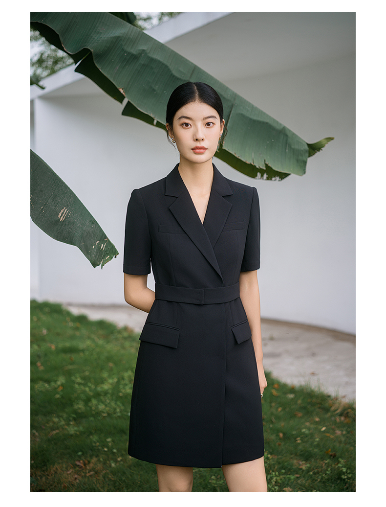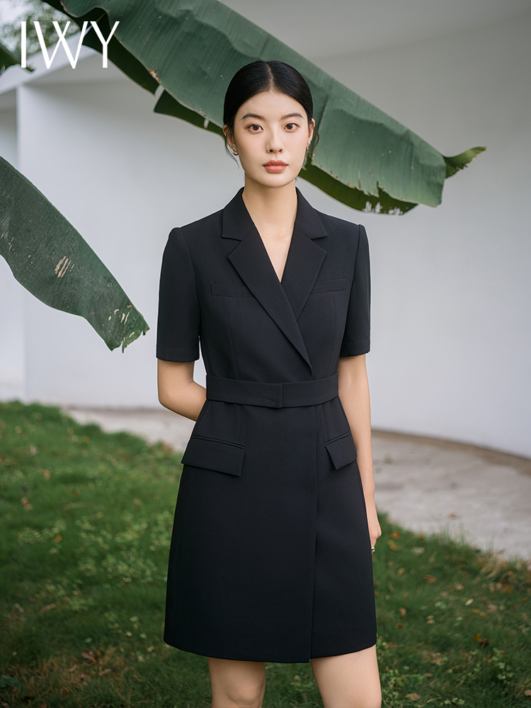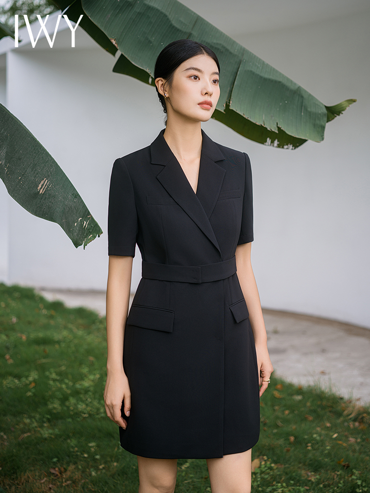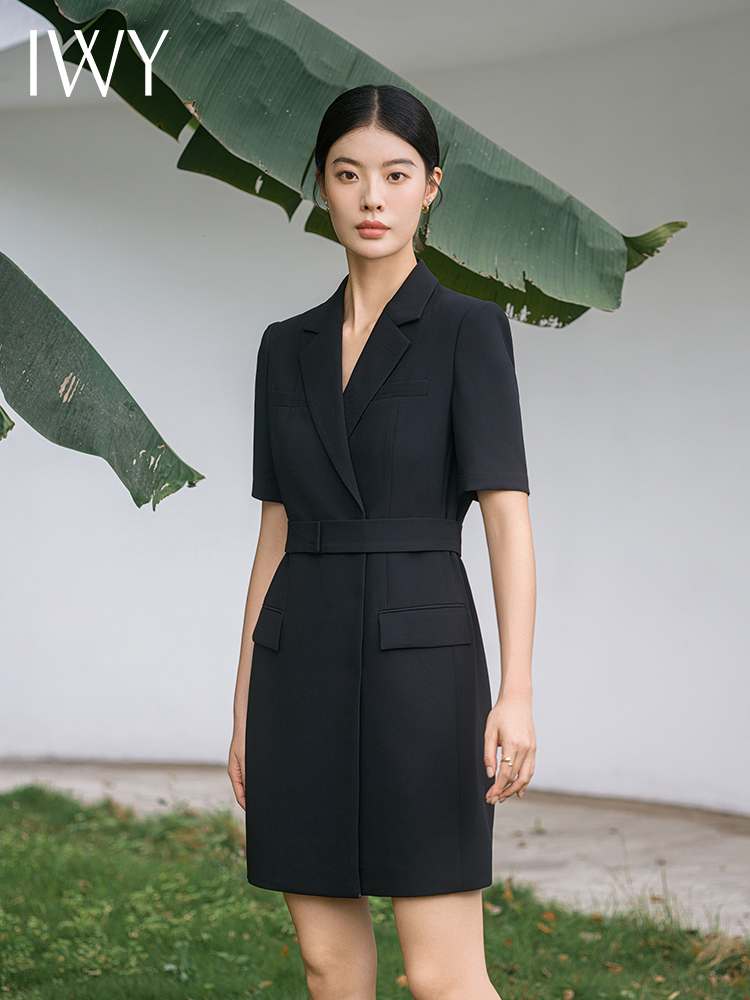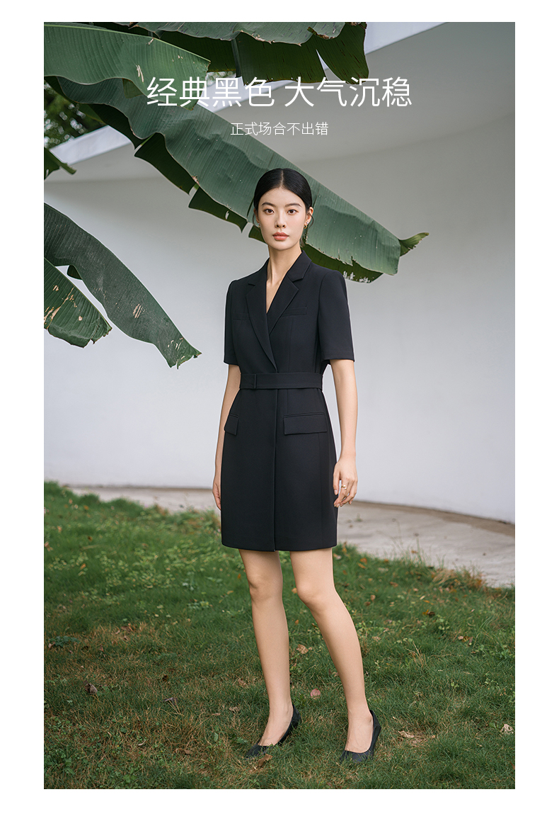 IWY/新款夏季时尚优雅黑色短袖连衣裙薄款酒店接待职业装名媛正Q14238黑色