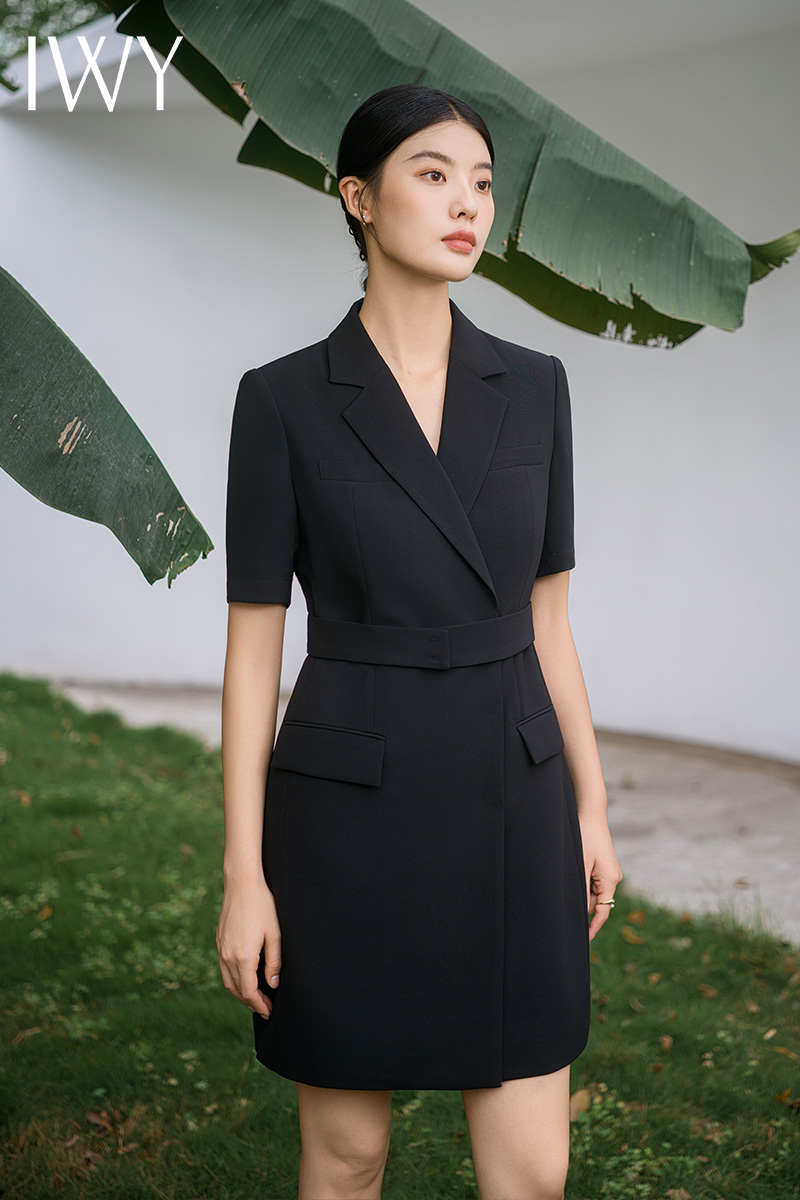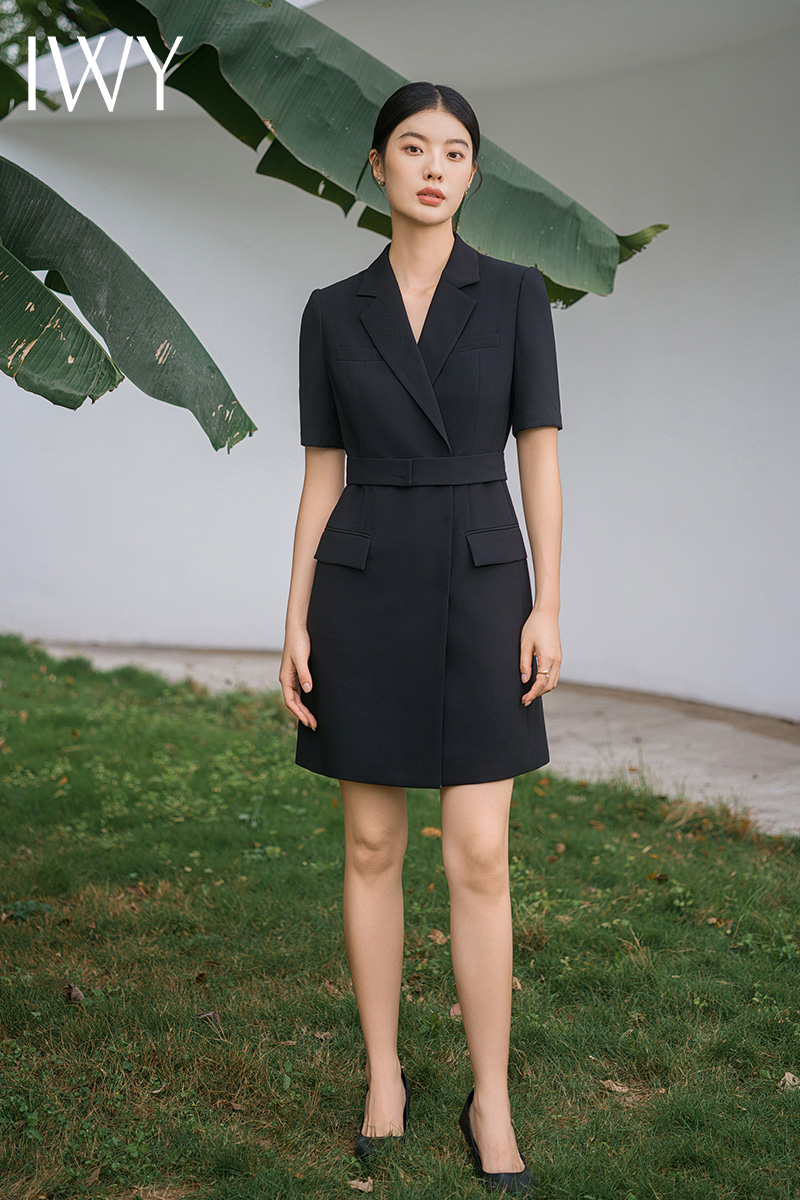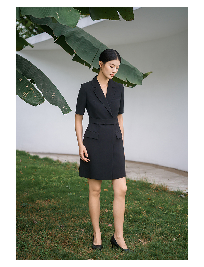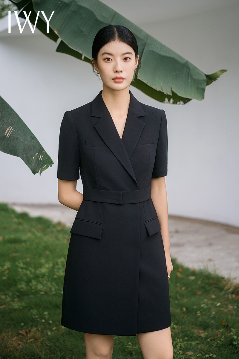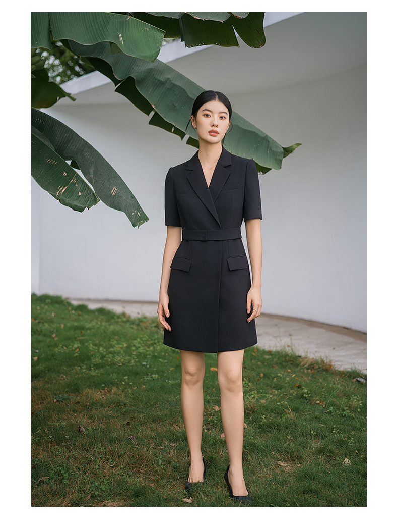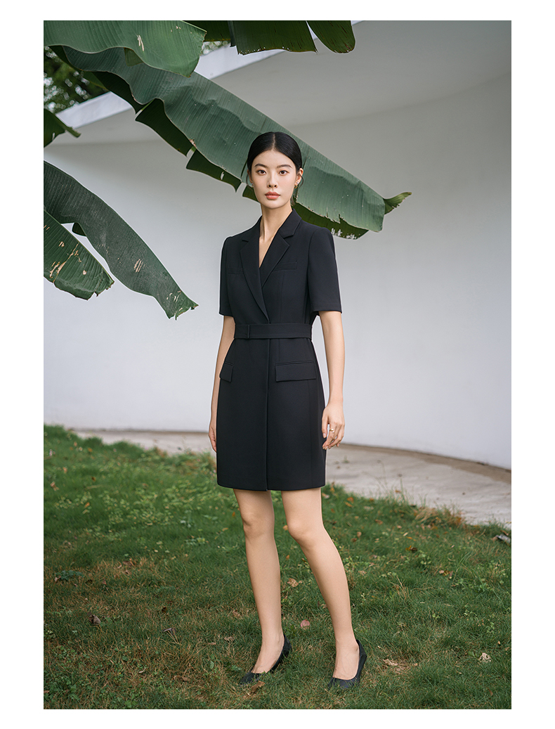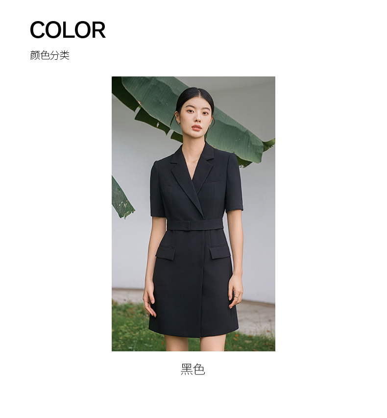 IWY/新款夏季时尚优雅黑色短袖连衣裙薄款酒店接待职业装名媛正Q14238黑色