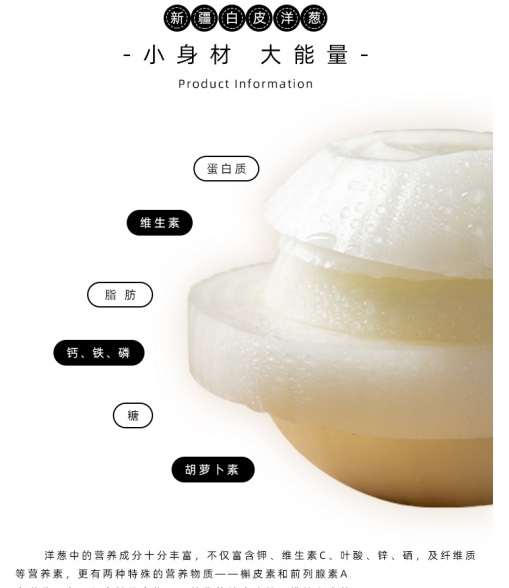 新疆因独特的地理环境和气候条件,产的白洋葱品质上乘,因其水分含量高,口感鲜嫩,适合生食。
