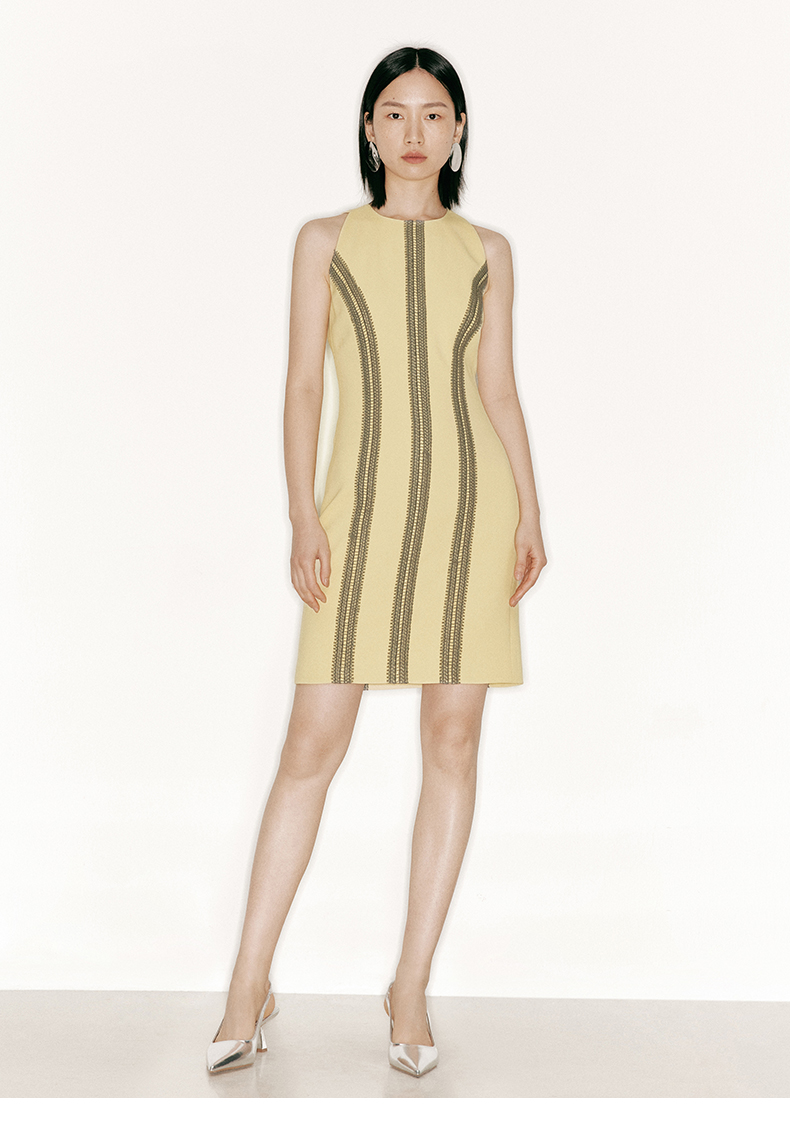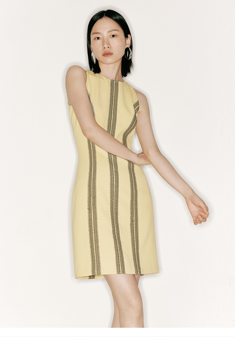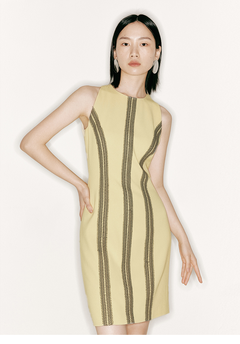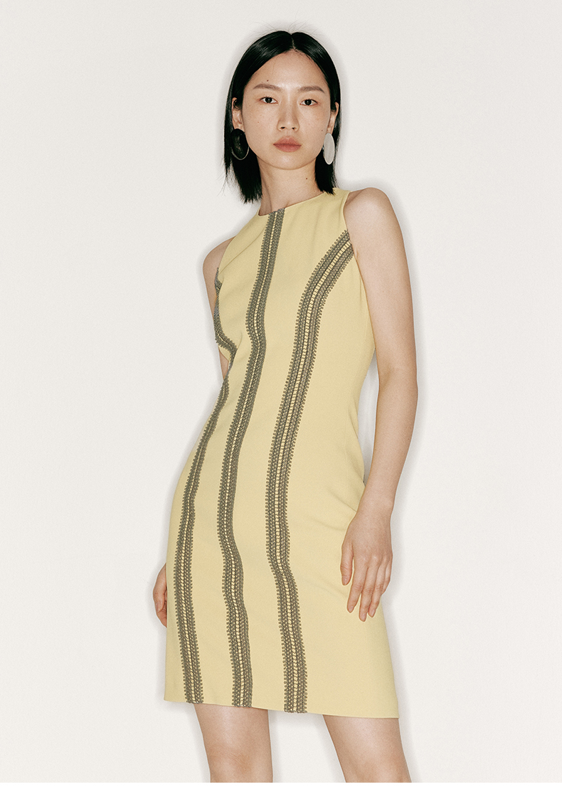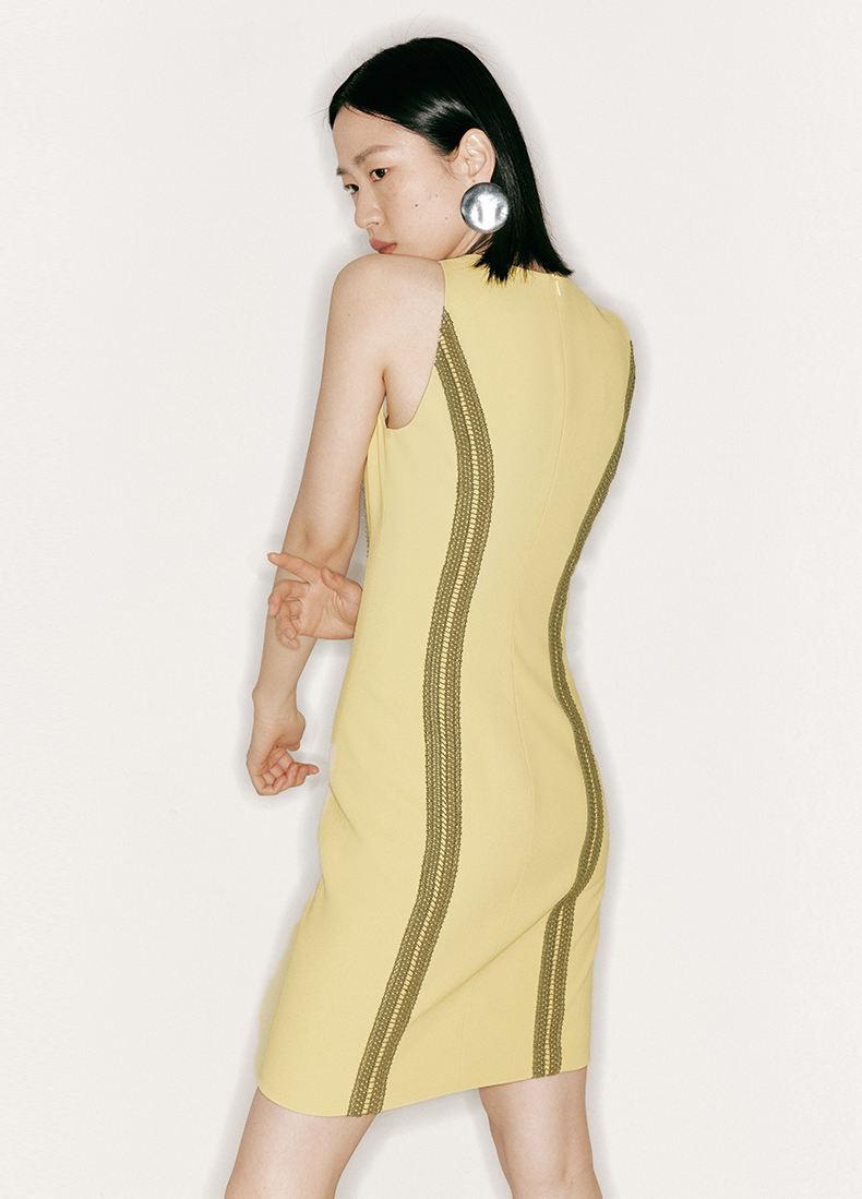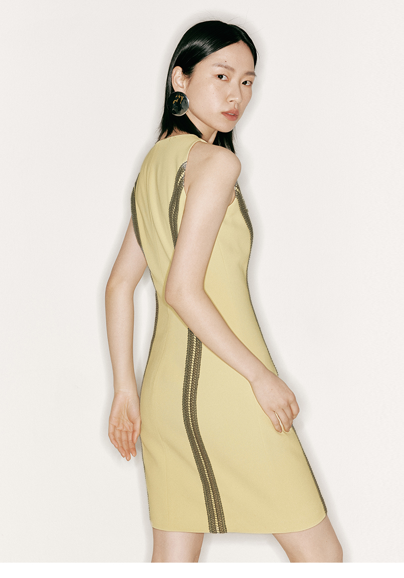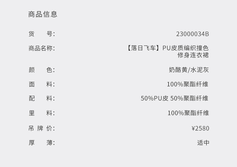 【落日飞车】PU皮质编织撞色修身连衣裙/23000034B