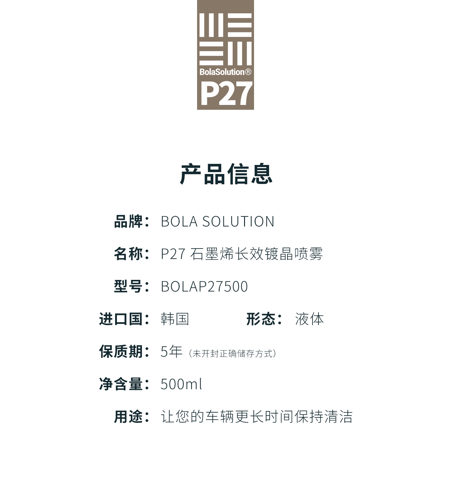 BOLA SOLUTION P27+石墨烯长效镀晶喷雾 500ml