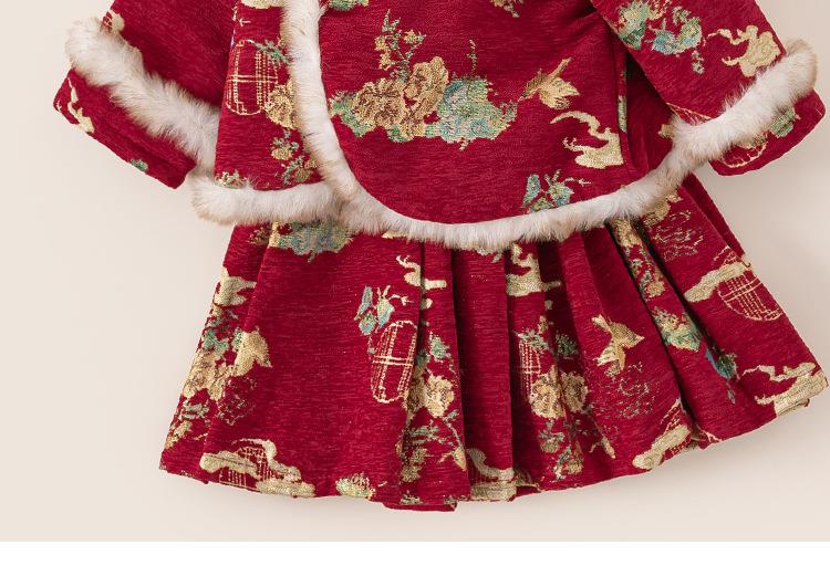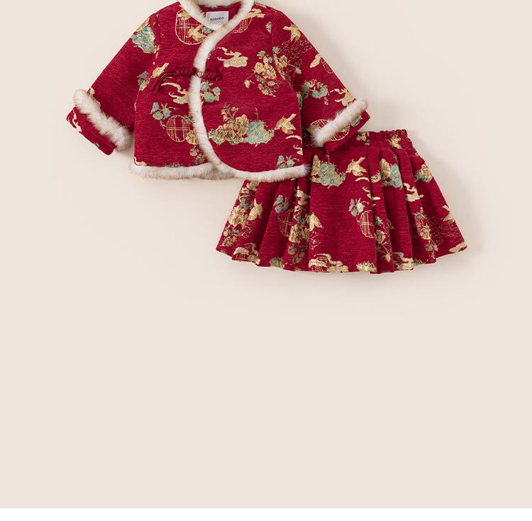 邦选童装儿童套装裙中国风绣花外套百褶半身裙小童两件套女童年服