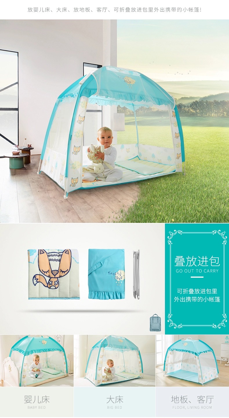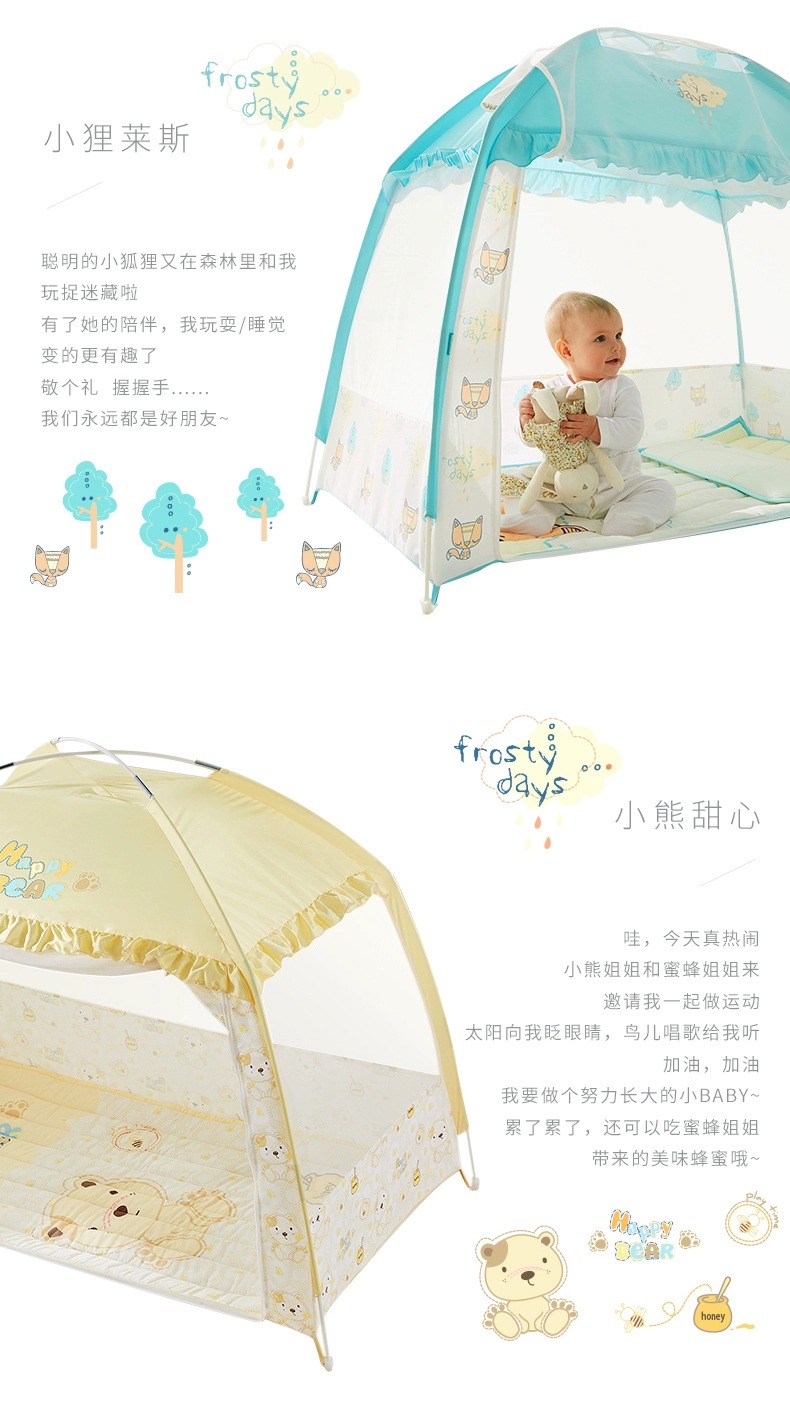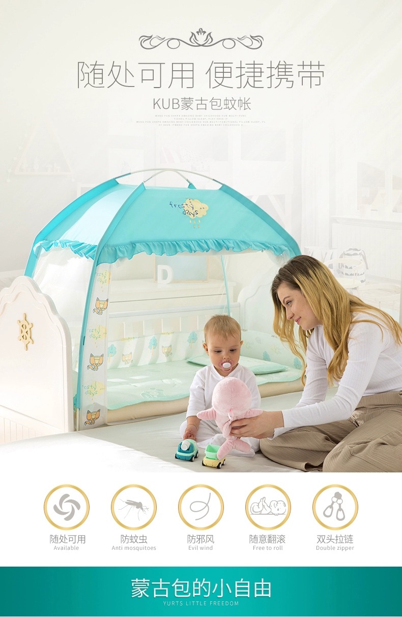 【微瑕】KUB可优比婴儿床蚊帐宝宝蒙古包易安装可折叠支架有底童床蚊帐罩 不退换 介意慎拍