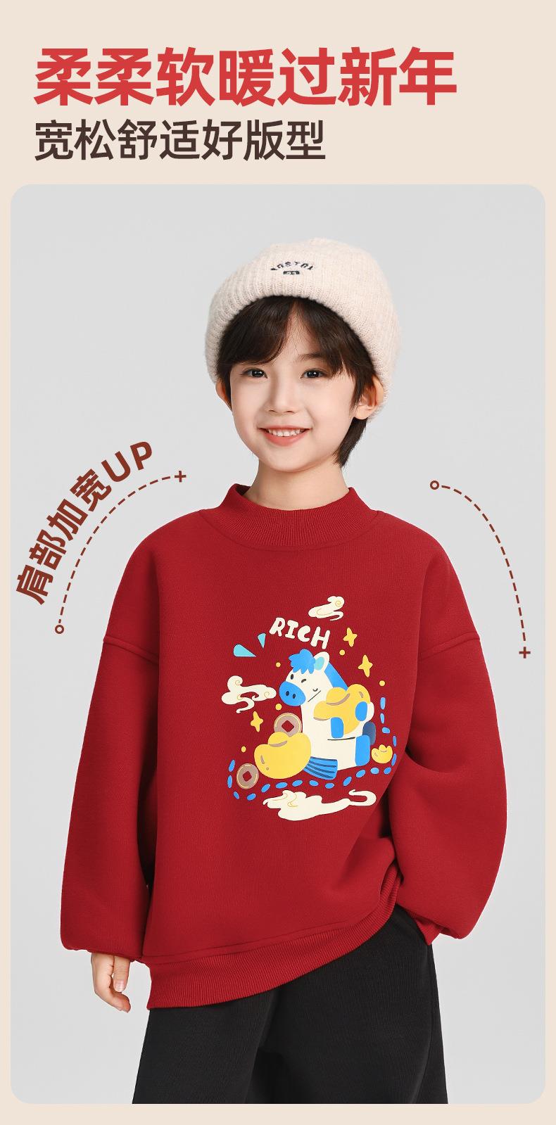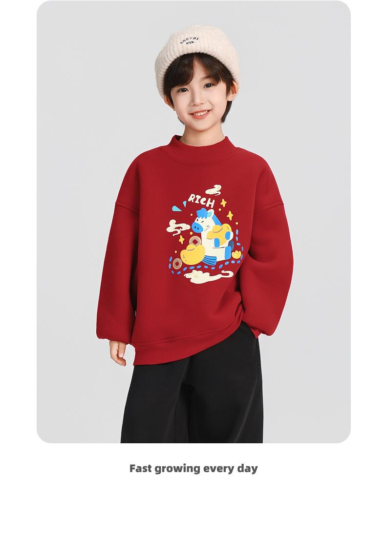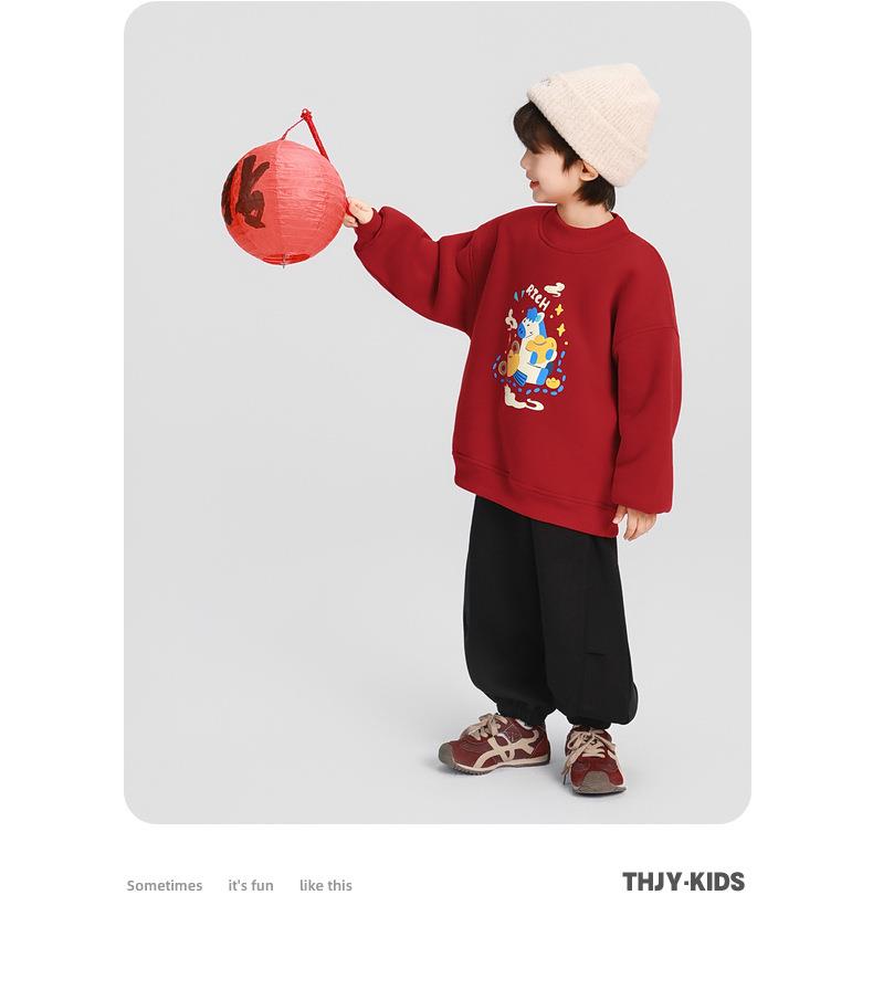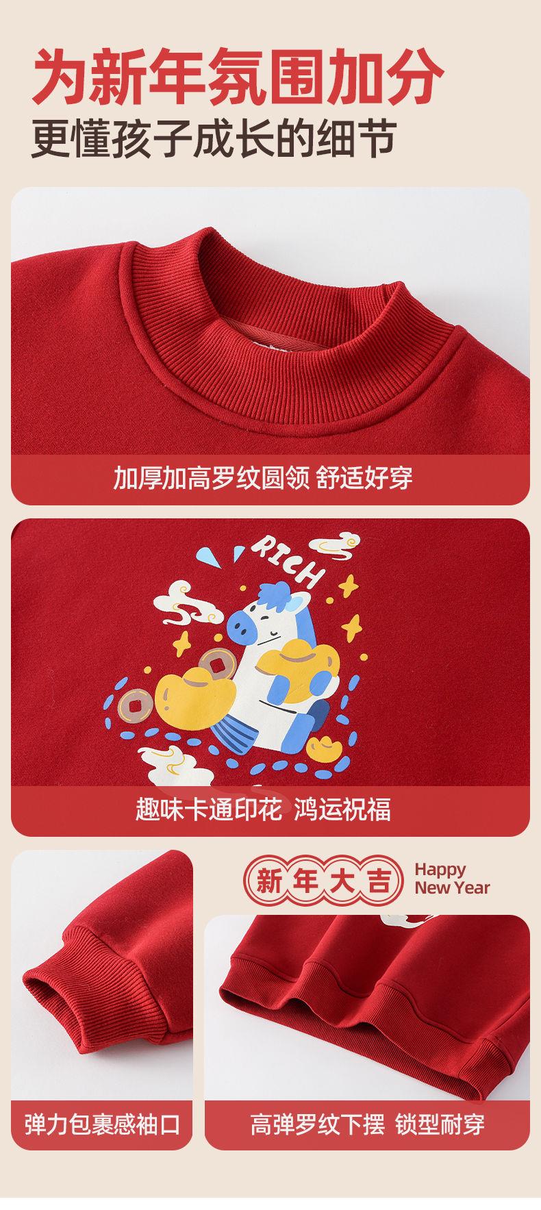 男童加厚卫衣2025冬装新款秋冬款儿童男孩圆领加绒加厚保暖打底衫