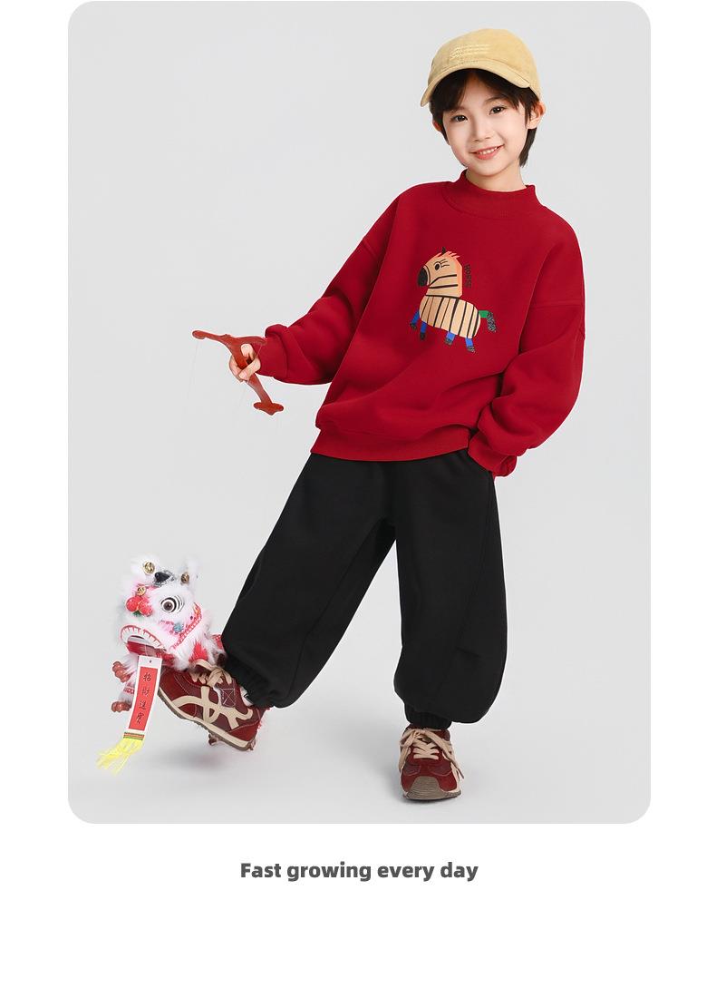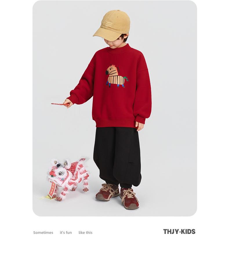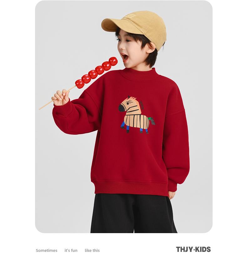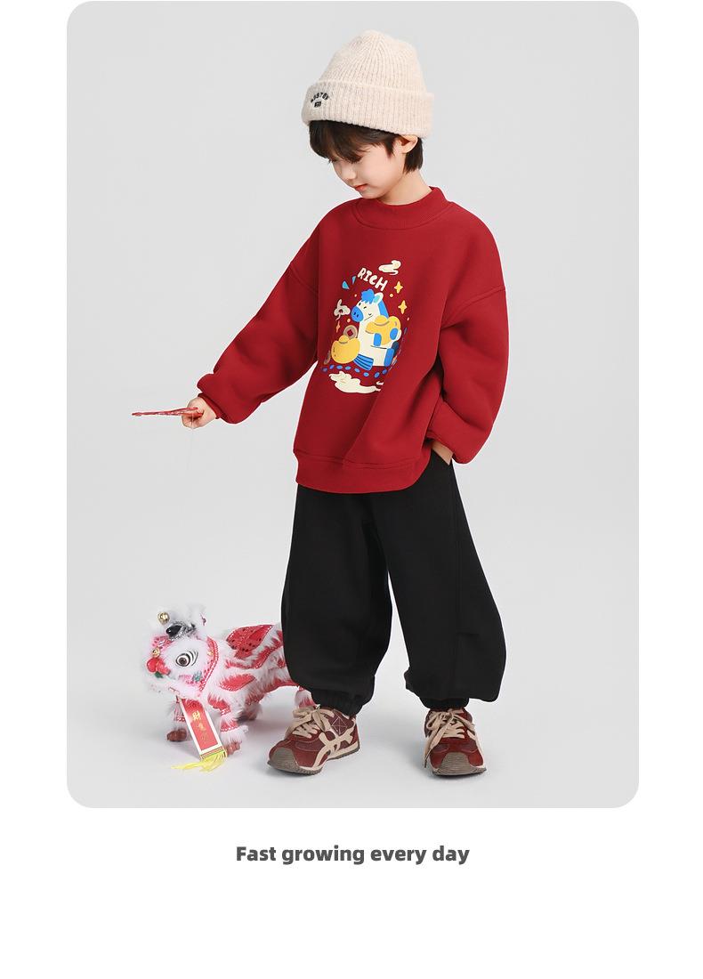 男童加厚卫衣2025冬装新款秋冬款儿童男孩圆领加绒加厚保暖打底衫