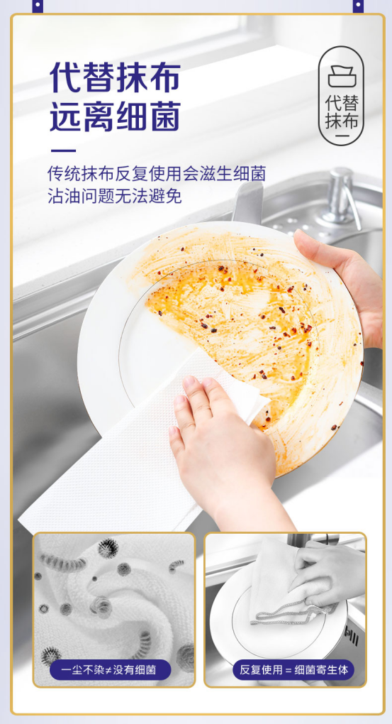 超厚超大超吸水,擦拭一点也不费力,可以替代抹布,减少了细菌的滋生,使厨房更加安全卫生。