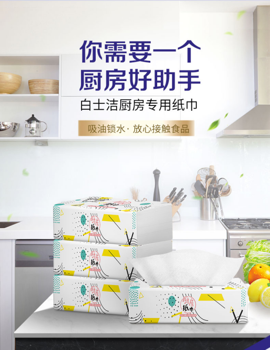 解放厨房抹布的【白士洁原生木浆厨房用纸】