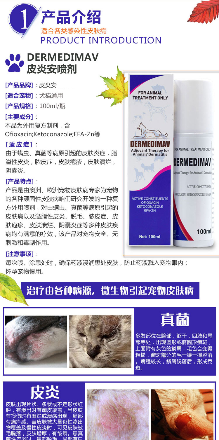 澳洲玛福莱皮炎安皮焱咹喷剂 猫狗皮肤病脓皮症阴囊炎 30ml/100ml