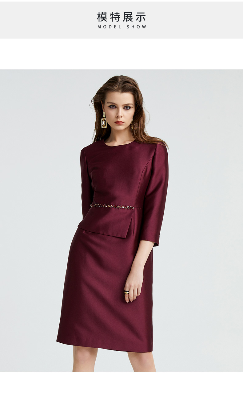 成熟、稳重、高贵典雅、大方得体 融合东方文化的含蓄和法国的浪漫 将创意的艺术性与消费需求相结合 为自信女性塑造高品质场合服装