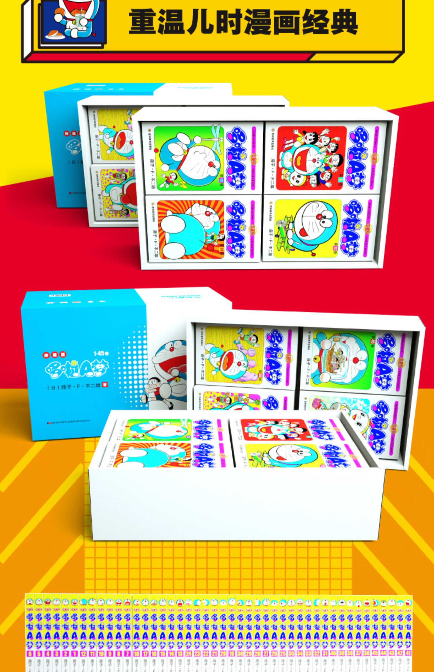 【新版升级】哆啦a梦机器猫漫画珍藏版漫画1-45册全套礼盒装小叮当蓝胖子日本动漫多啦A梦卷吉林美术出版社儿童节礼物收藏