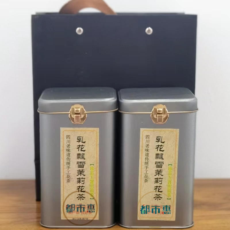 (上图)上图为栏目手提礼盒装,两罐共半斤,属于茉莉花里面的标杆茶,也是每一年非常稀缺的茶叶,数量不多,在大规模茉莉花上市前,仅作都市惠栏目新老会员体验品尝。